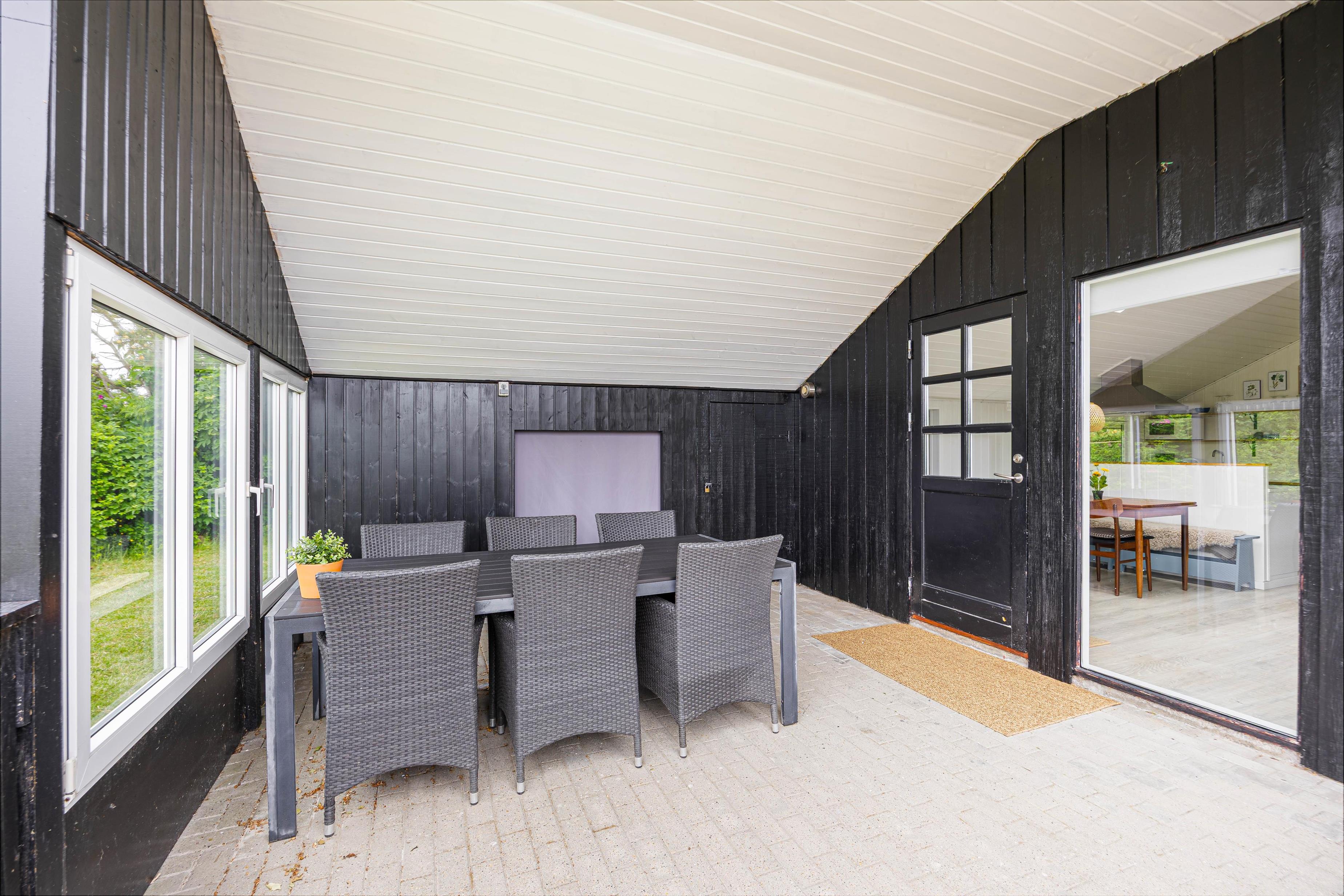 Udenfor venter en stor naturgrund på 1227 kvadratmeter, hvor der er god plads til leg, afslapning og hyggelige stunder i det fri. På den lukkede og delvist overdækkede terrasse står havemøbler og grill klar, så I kan tilberede lækre måltider under åben himmel.