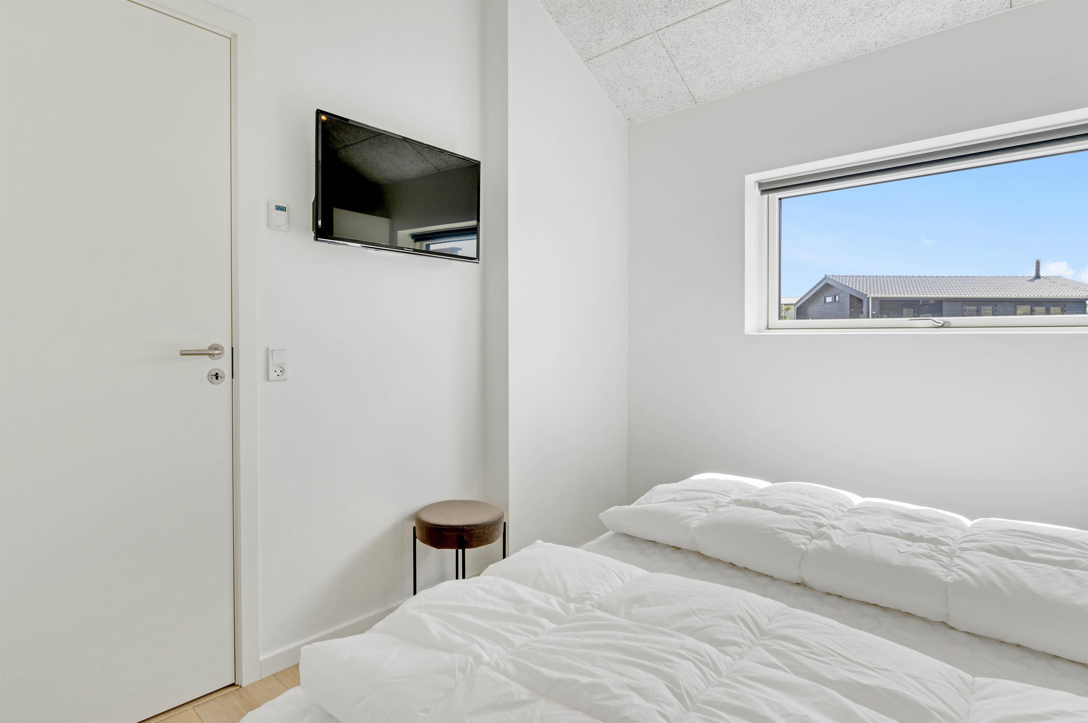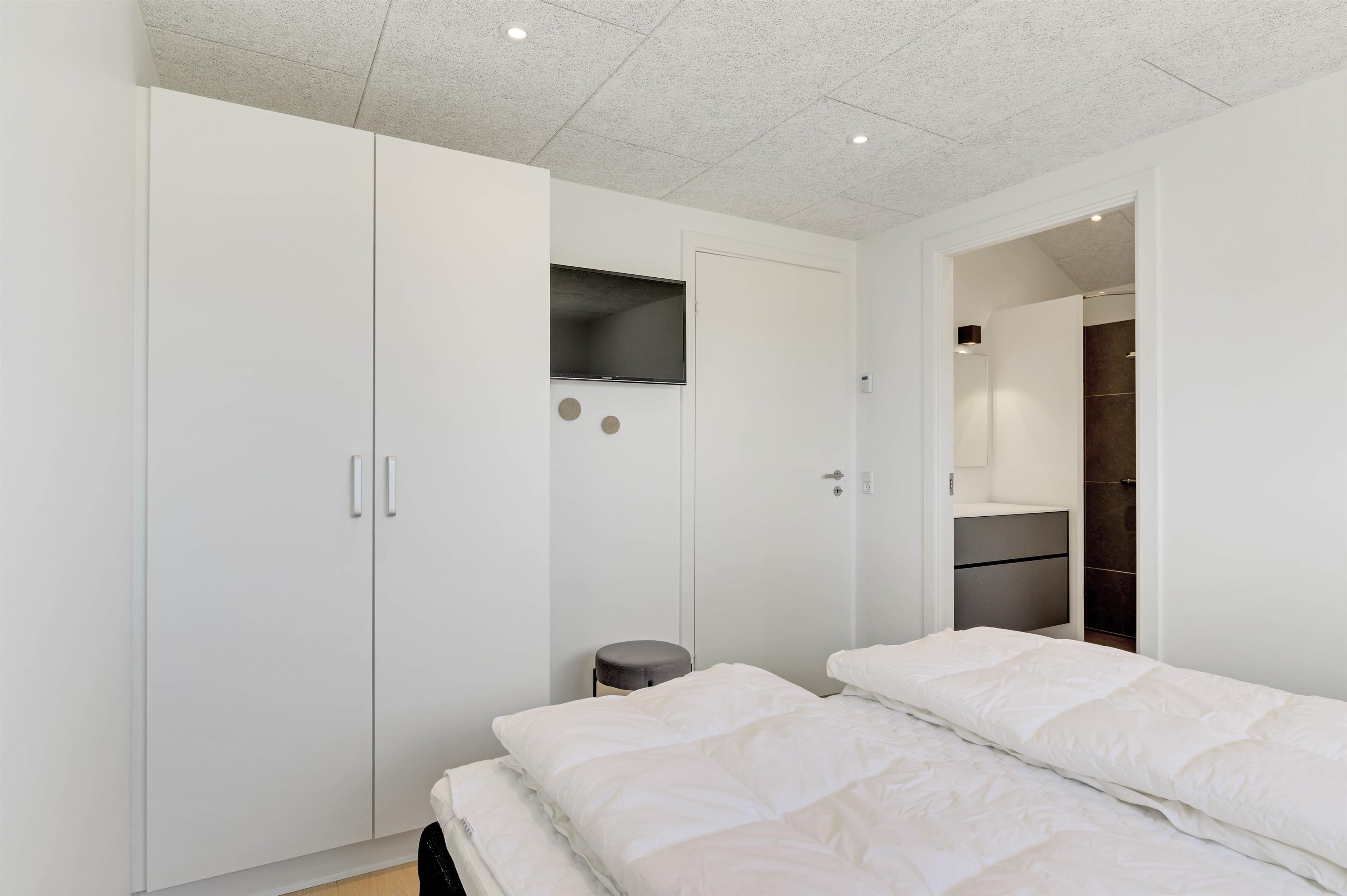 Feriehuset er praktisk indrettet med 3 soverum, hver med en dobbeltseng og hele 2 fine badeværelser, så I undgår ventetid på tandbørstningen. Fra det ene badeværelse er der indgang til en sauna, hvor I rigtig kan blive gennemvarm efter en lang dag ved stranden og i klitterne.