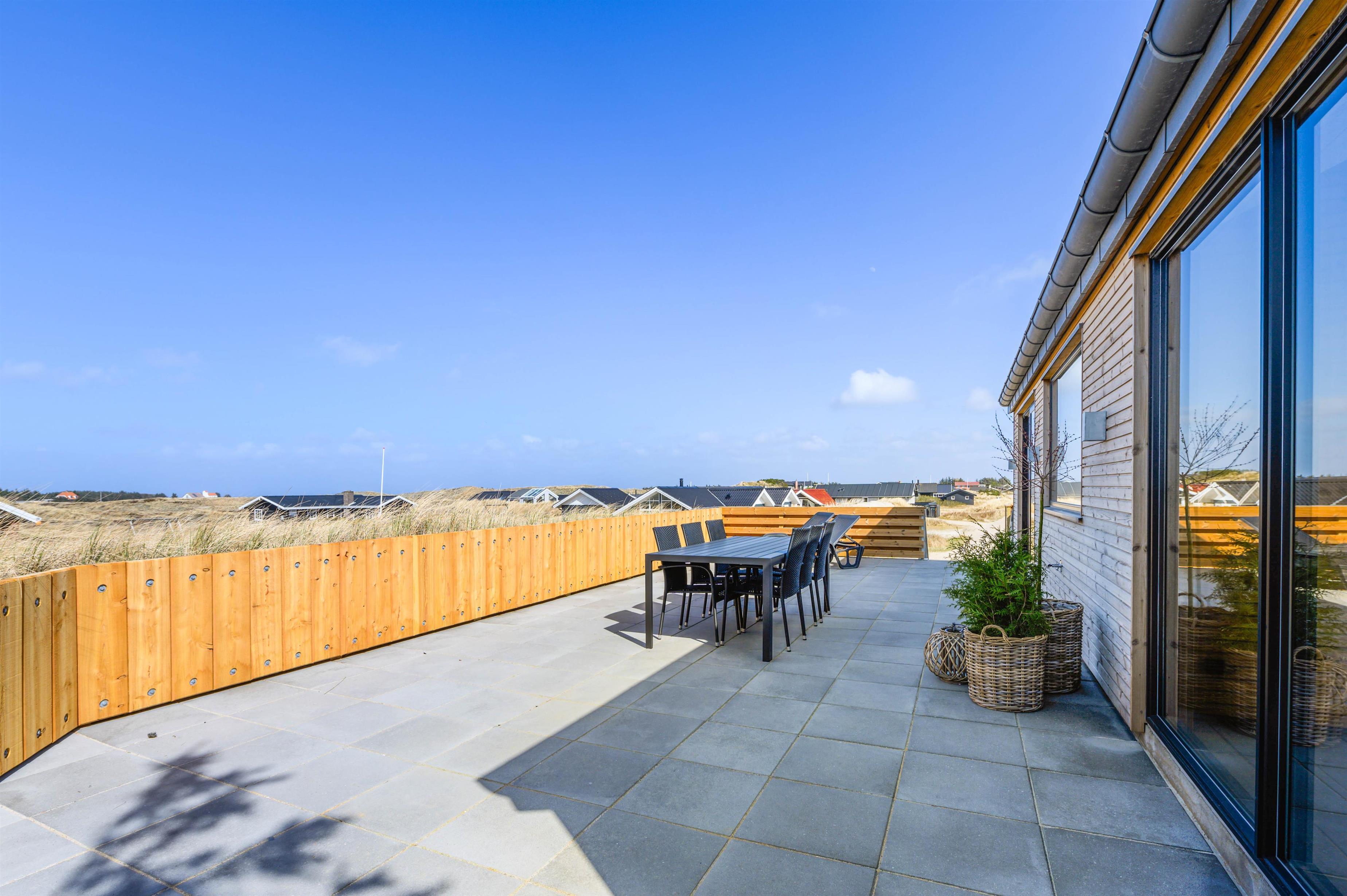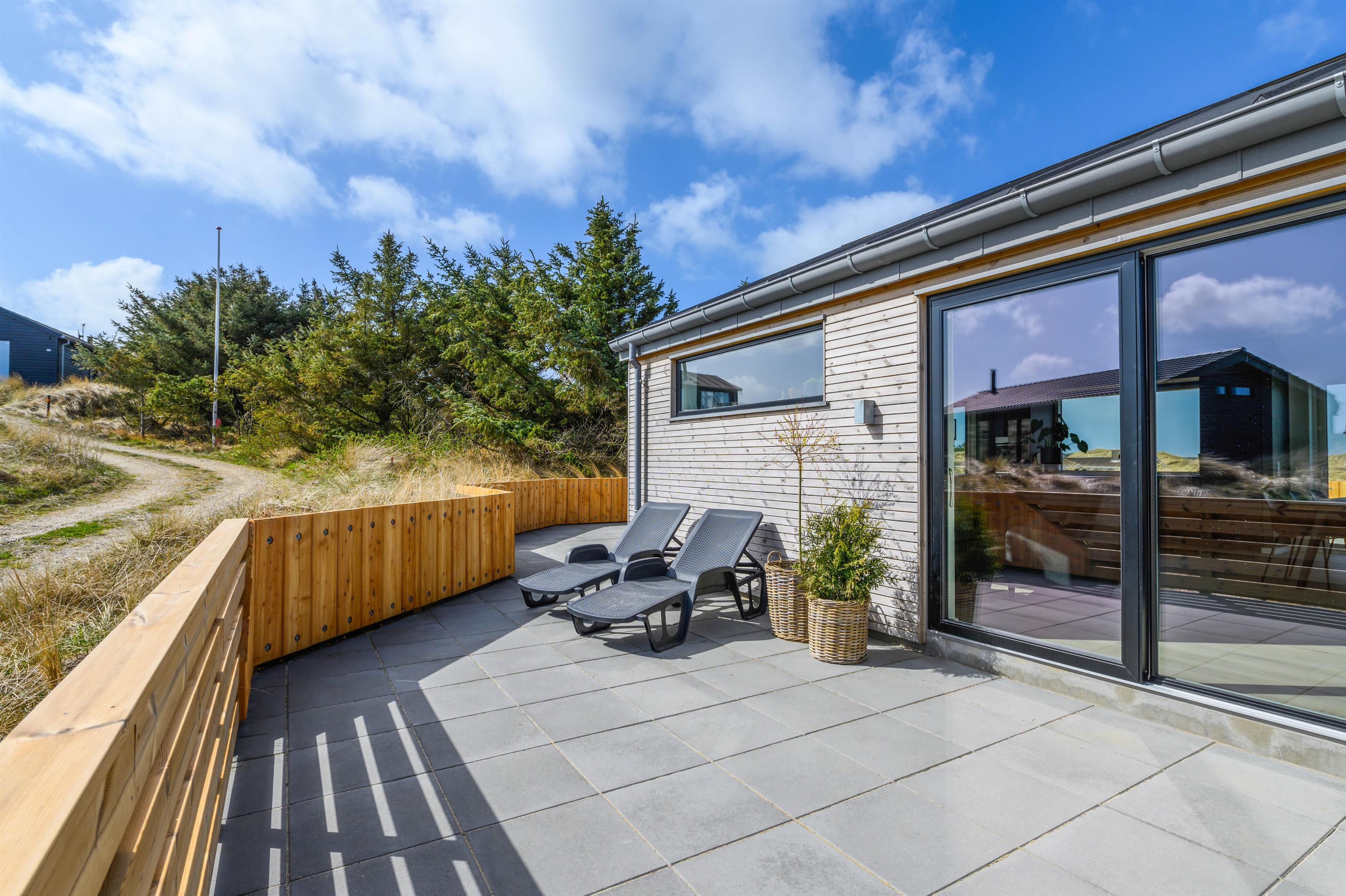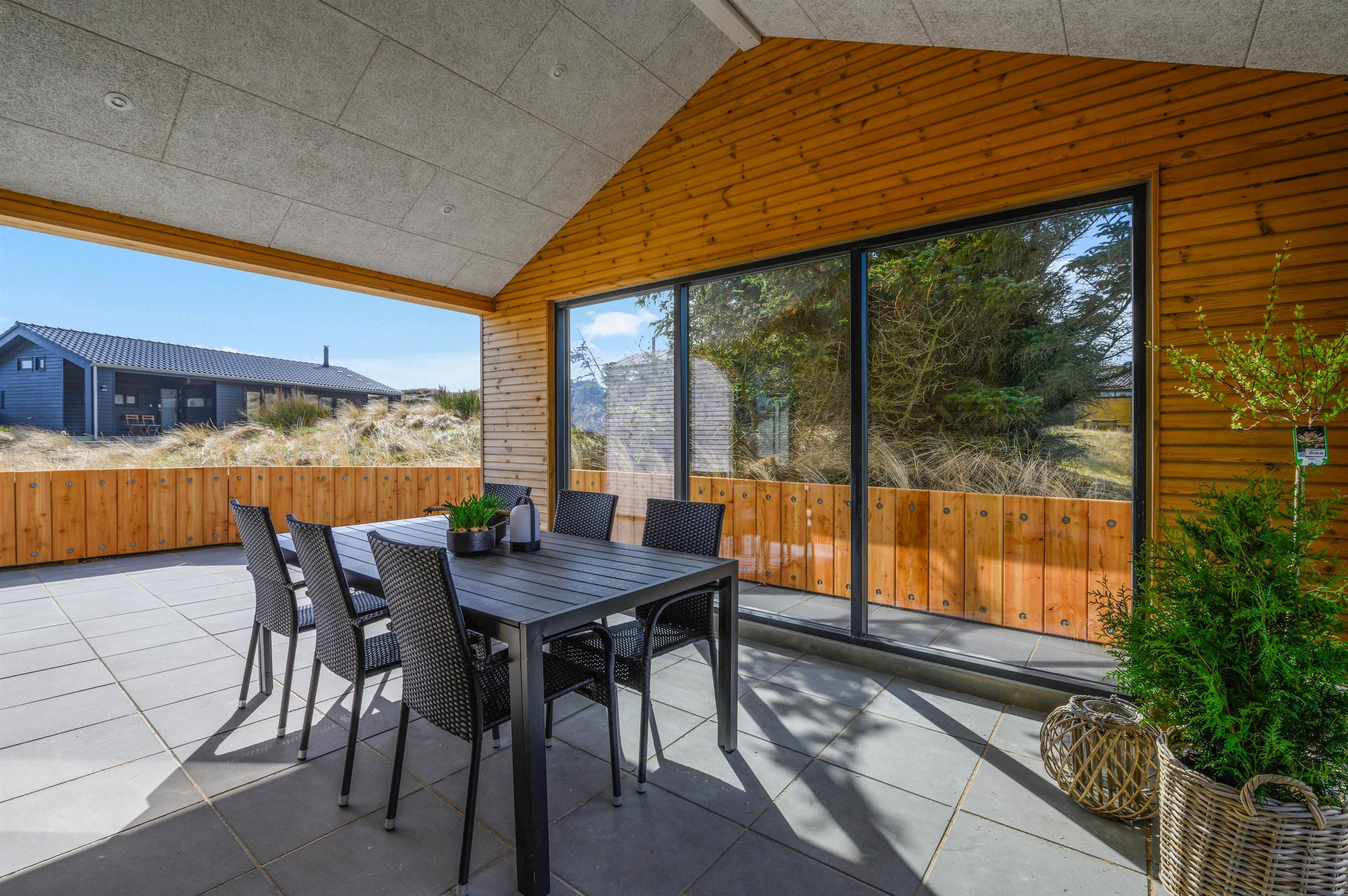 Feriehuset på Baunebjergvej 47 råder over flere skønne terrasser, heraf også overdækket og med læ. Her kan I nyde de skønne sommeraftner med grill-middage, solnedgangen og havets brusen i baggrunden.