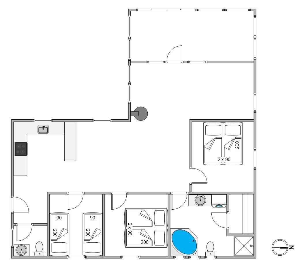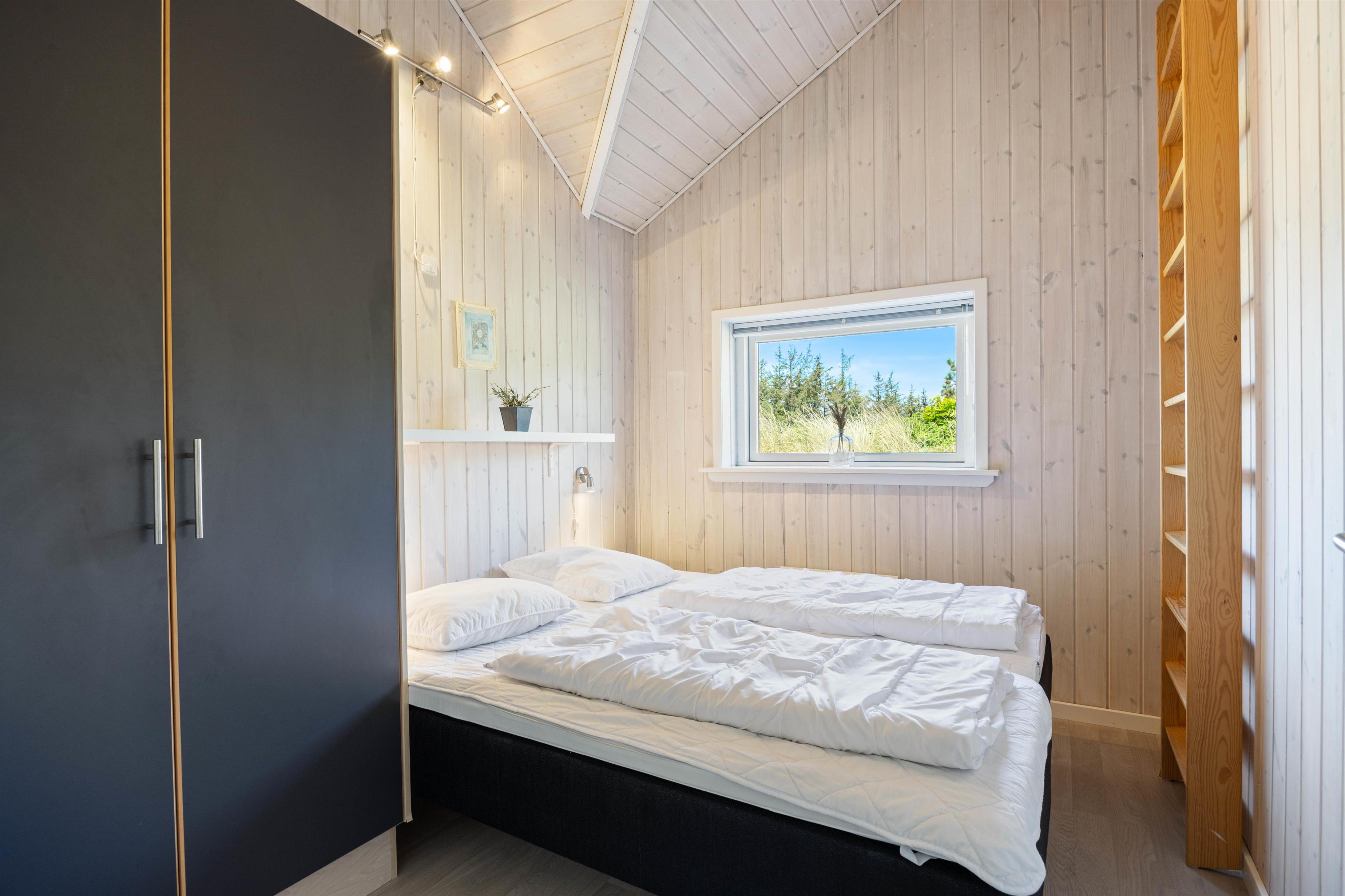 Der er plads til 6 personer fordelt på 3 soverum med i alt 6 enkeltsenge. Et dejligt badeværelse med gulvvarme og tømmespa samt et ekstra gæstetoilet gør det muligt for alle at føle sig hjemme. Arrangér for eksempel jeres egen lille wellnessaften med sauna og spa, så I kan komme helt ned i gear i løbet af ferien. Hvis I kommer med el-bil, kan I benytte ladestikket.