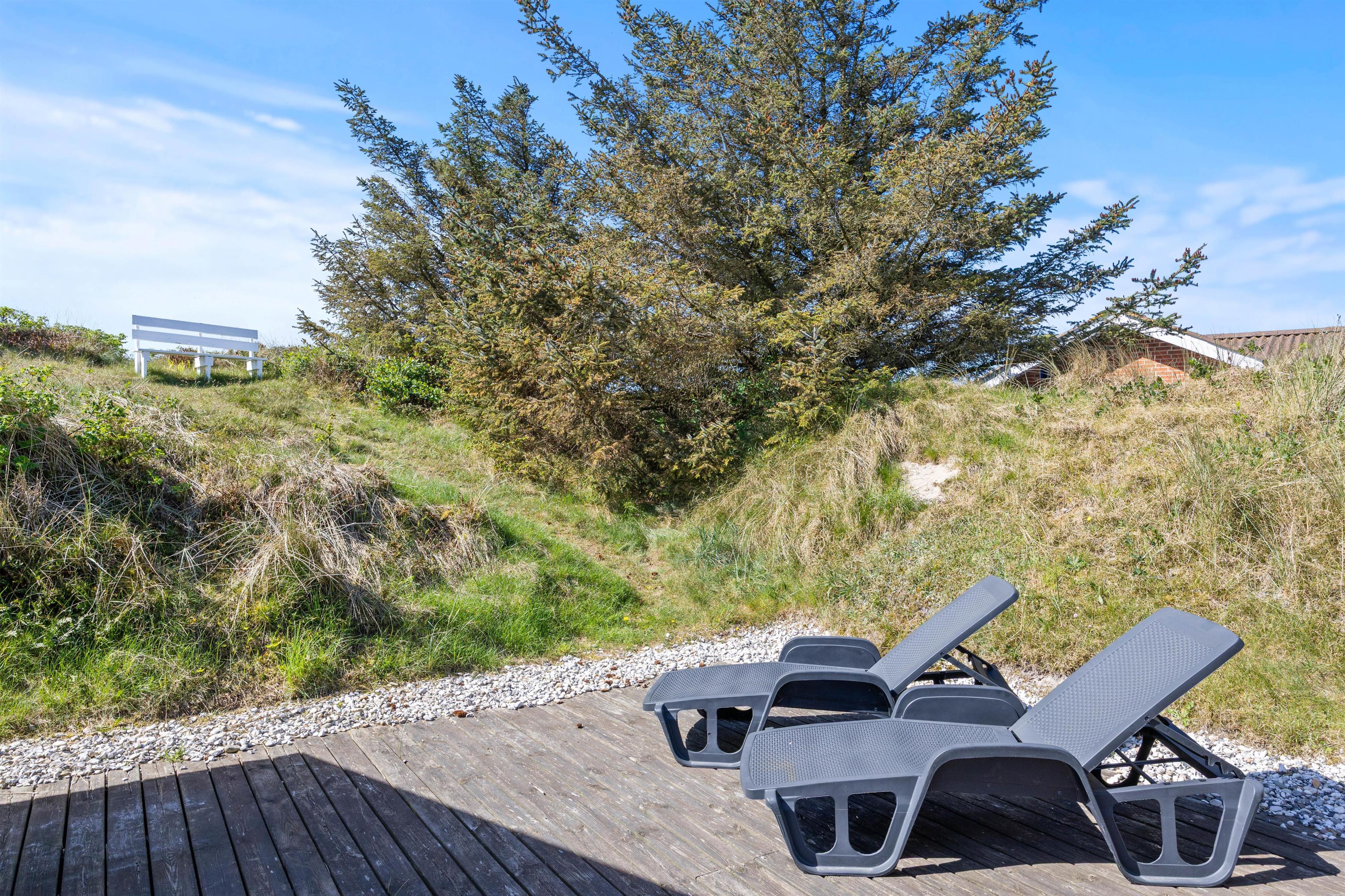 Sommerhuset ligger som det sidste hus på en lille, blind stikvej til Vesterledvej. Sommerhuset ligger dermed i et dejligt, roligt område, som er perfekt til børnene. Foruden terrassen og den omkringliggende natur har sommerhuset et godt legehus og en sandkasse, som børnene kan lege i. Fra sommerhuset er der 500 meter til stranden, som I uden tvivl kommer til at besøge flere gange, hvad enten det er, mens solen står allerhøjest på himlen eller til en smuk solnedgang.