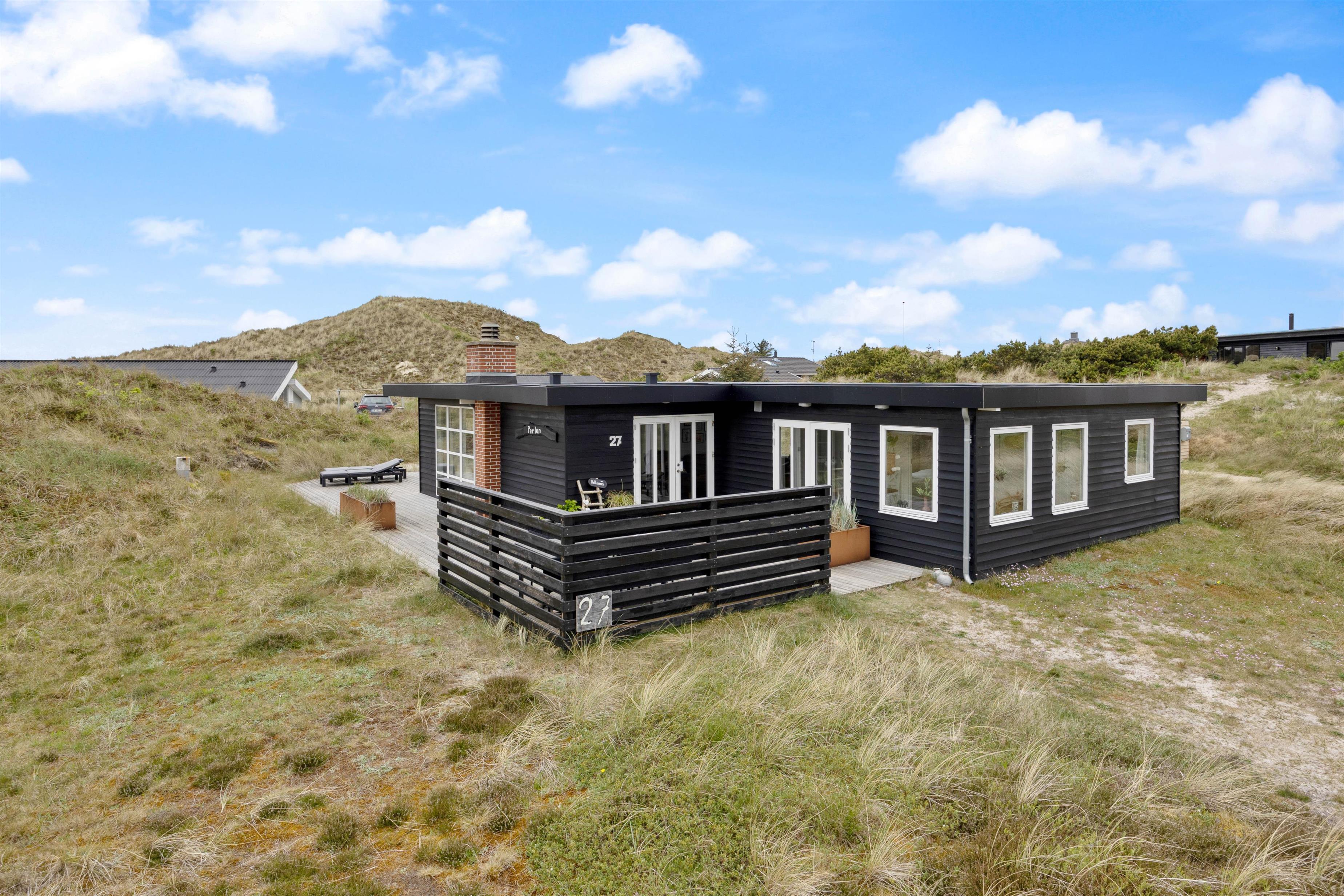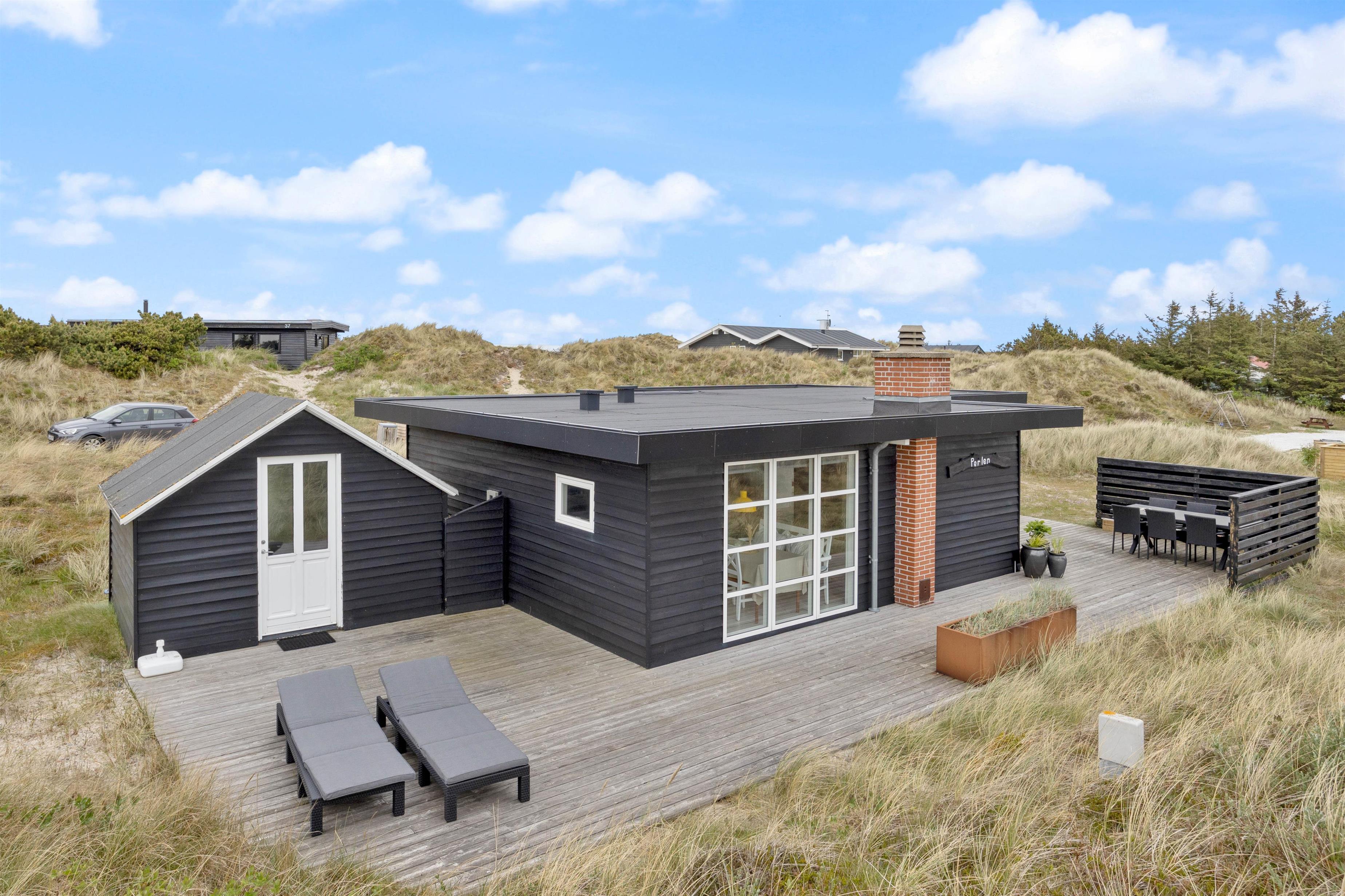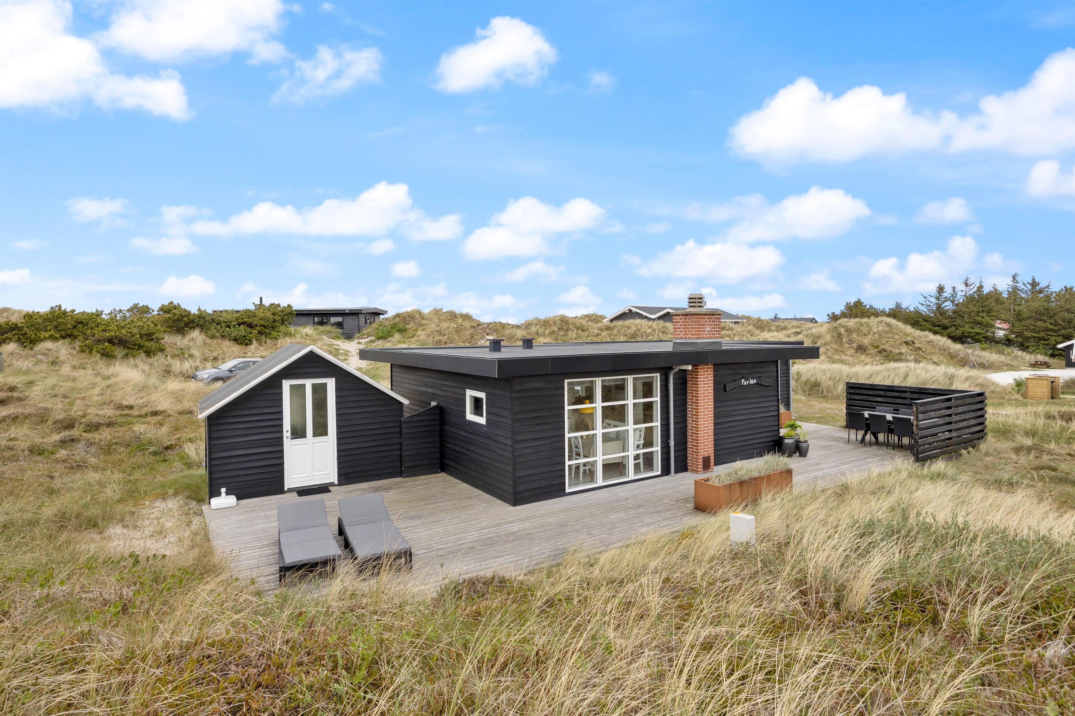 På den sydvestlige side af feriehuset er der en stor træterrasse, hvor I finder komfortable havemøbler. Omgivet af den 2200 kvadratmeter store natur- og klitgrund kan I her læne jer tilbage, nyde udsigten til naturen og læse jeres yndlingsbog.
