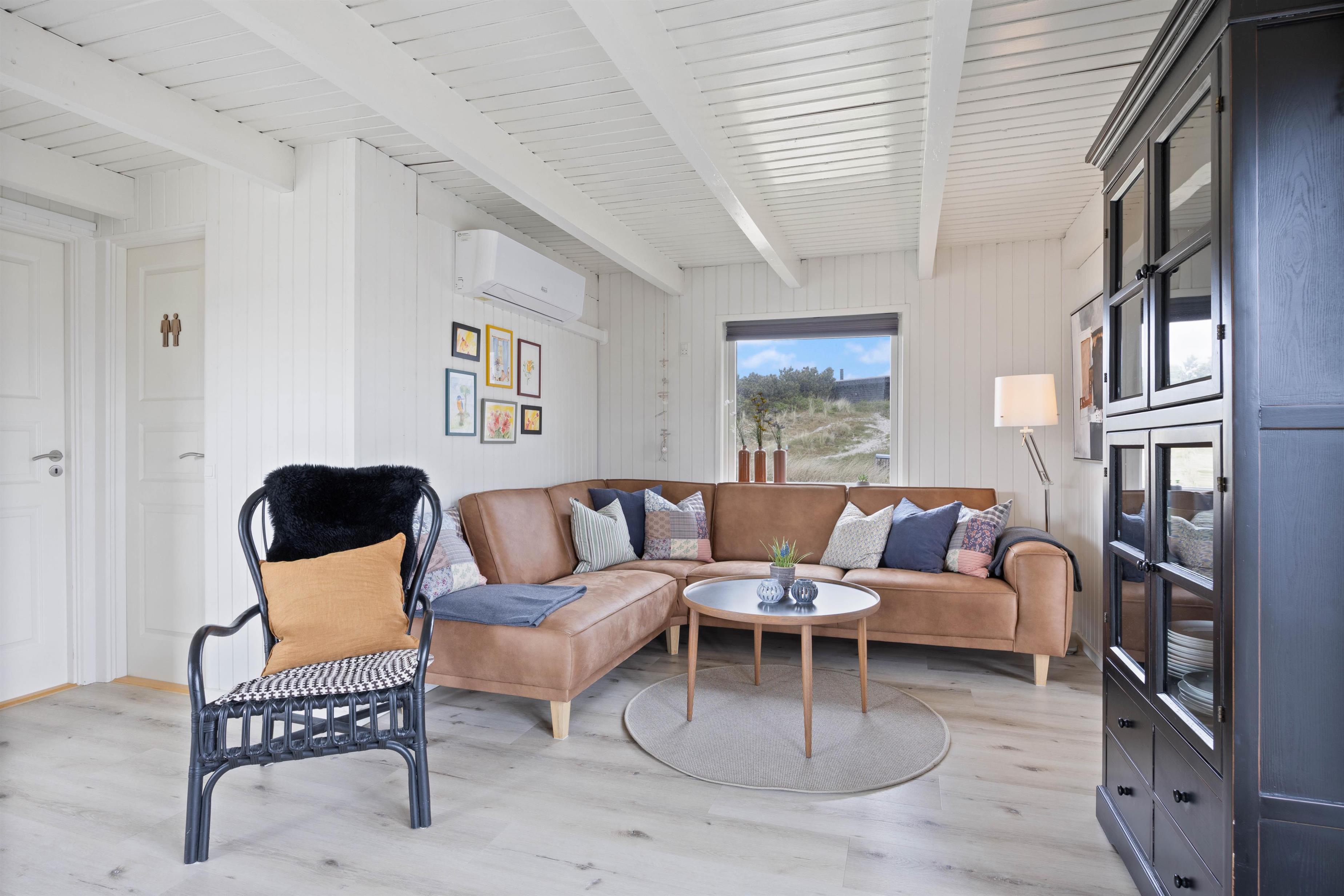 I vil hurtigt føle jer hjemme i dette kærligt indrettede sommerhus med hyggelig atmosfære. Her kan I læne jer tilbage i de komfortable siddepladser og se en god film med en pose bland selv-slik. I kan tænde op i brændeovnen, der kan knitre i baggrunden og sprede varme, hvilket kombineret skaber en ekstra hyggelig feriestemning. Desuden kan I også opvarme sommerhuset med den energibesparende varmepumpe.