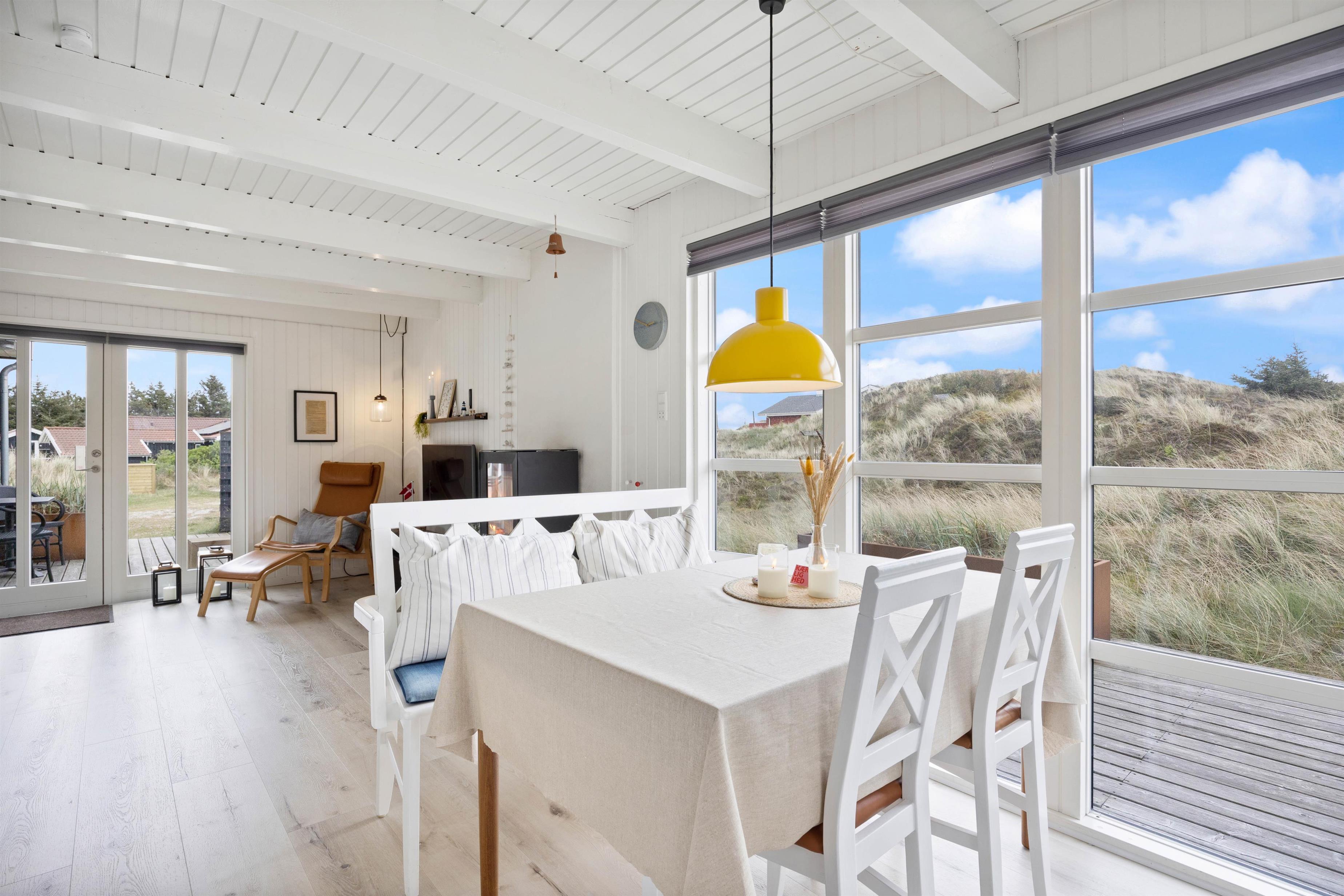 Sommerhuset ligger i det rolige område Haurvig og tæt på Vinterleje Havn - en idyllisk havn ved Ringkøbing Fjord. Der er heller ikke langt til Vesterhavet, der kun ligger 800 meter herfra. Tag en dejlig tur gennem heden og klitterne og nyd den friske havluft. Når I når til sandstranden ved havet, kan I bygge sandslotte, samle skaller og tage en dukkert i vandet.