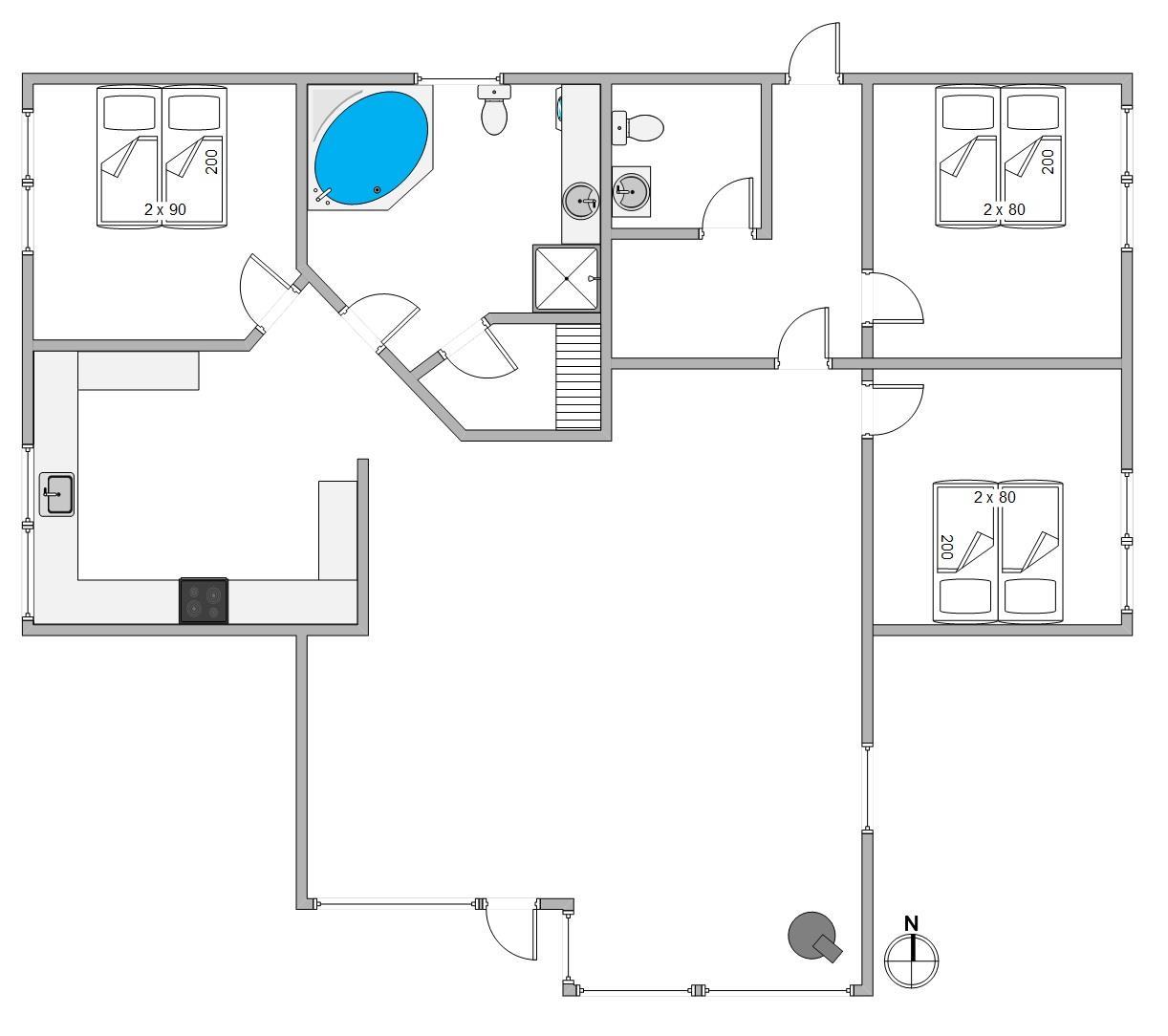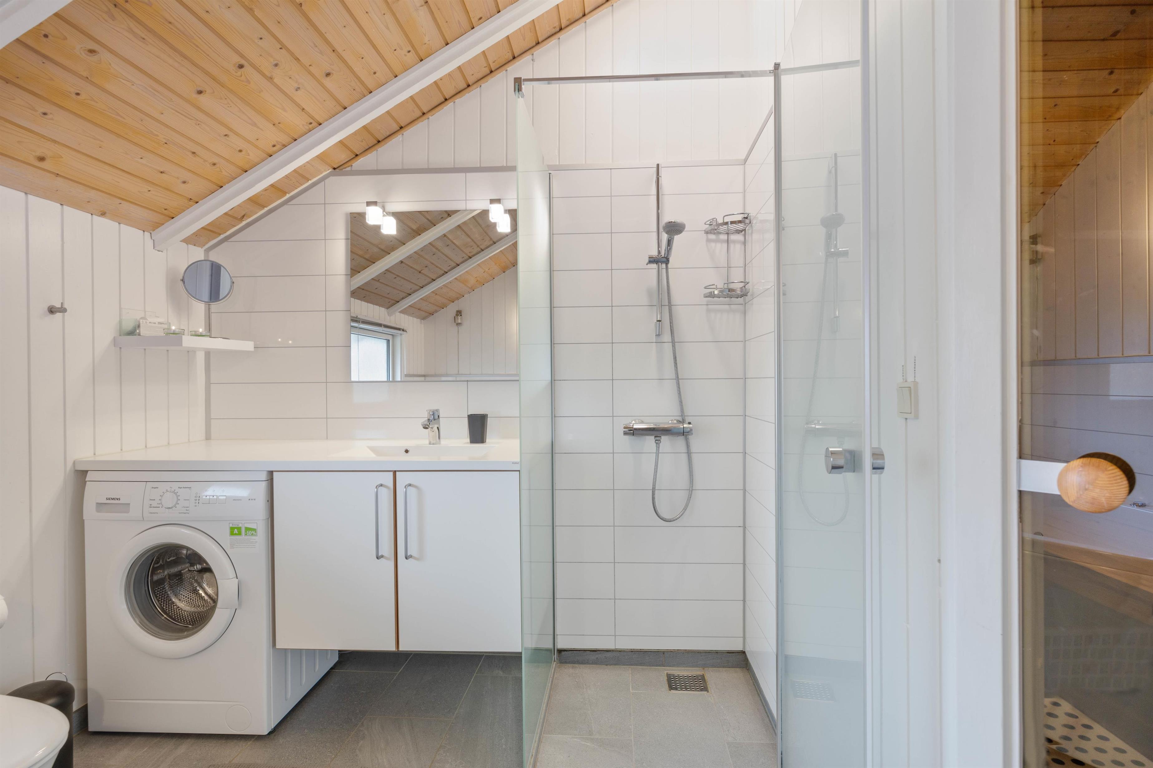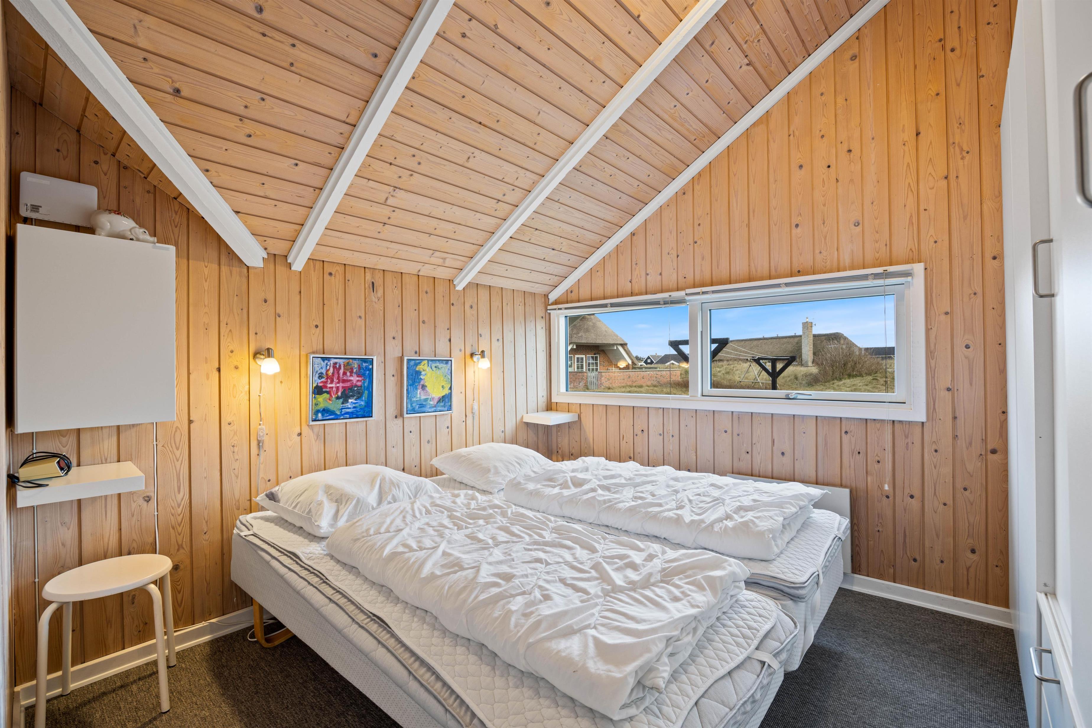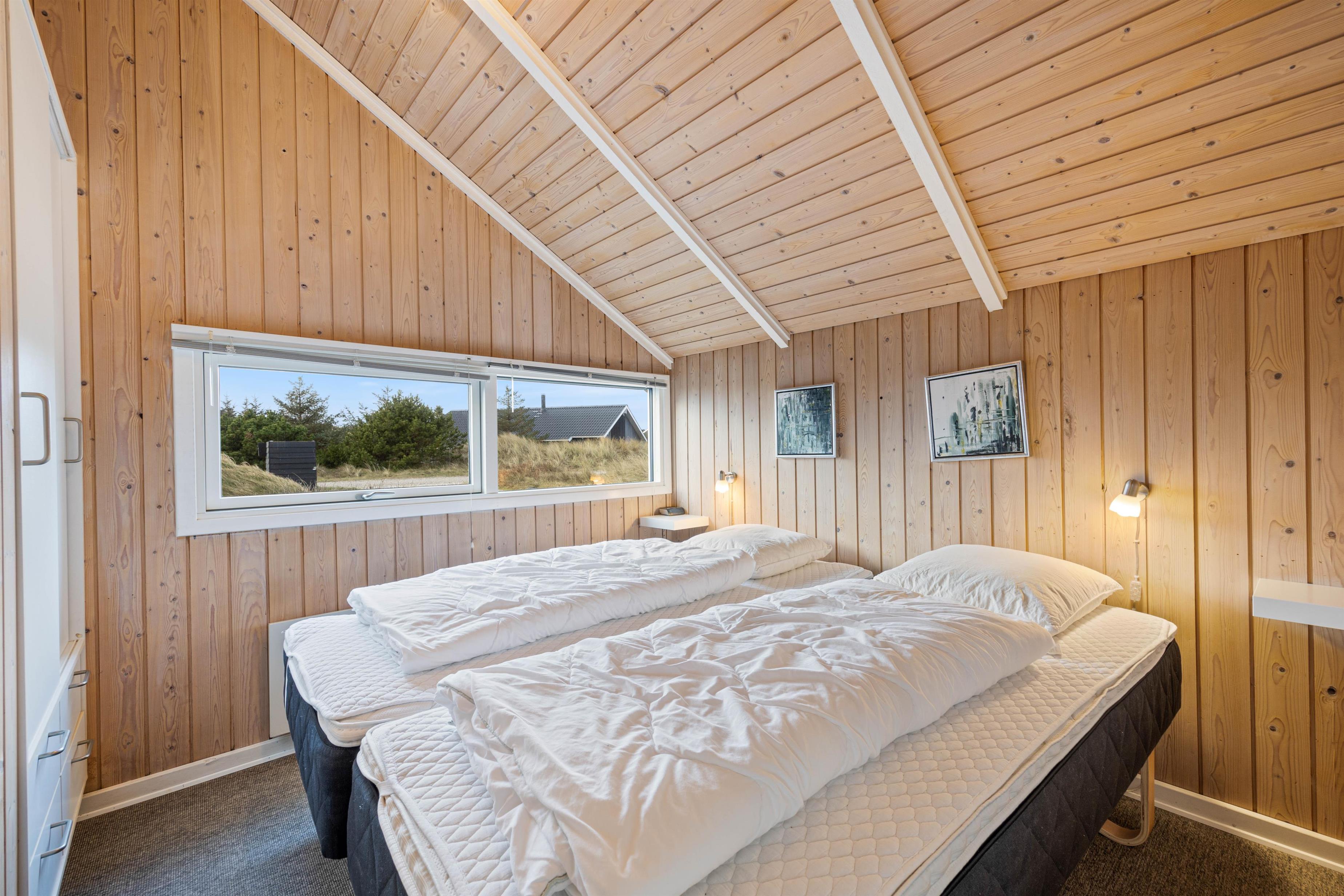 I sommerhuset er der plads til 6 feriegæster, som kan fordele sig på 3 soveværelser. Alle soveværelser er udstyret med dobbelsenge, hvor I kan lade batterierne op med en god nats søvn inden næste dages aktiviteter. Badeværelset indeholder både sauna og spa, hvor I kan varme kroppen igennem efter en gåtur langs stranden, når vinden suser til efteråret. Der er derudover et gæstetoilet i sommerhuset, så der ikke opstår en lang kø om morgnen.