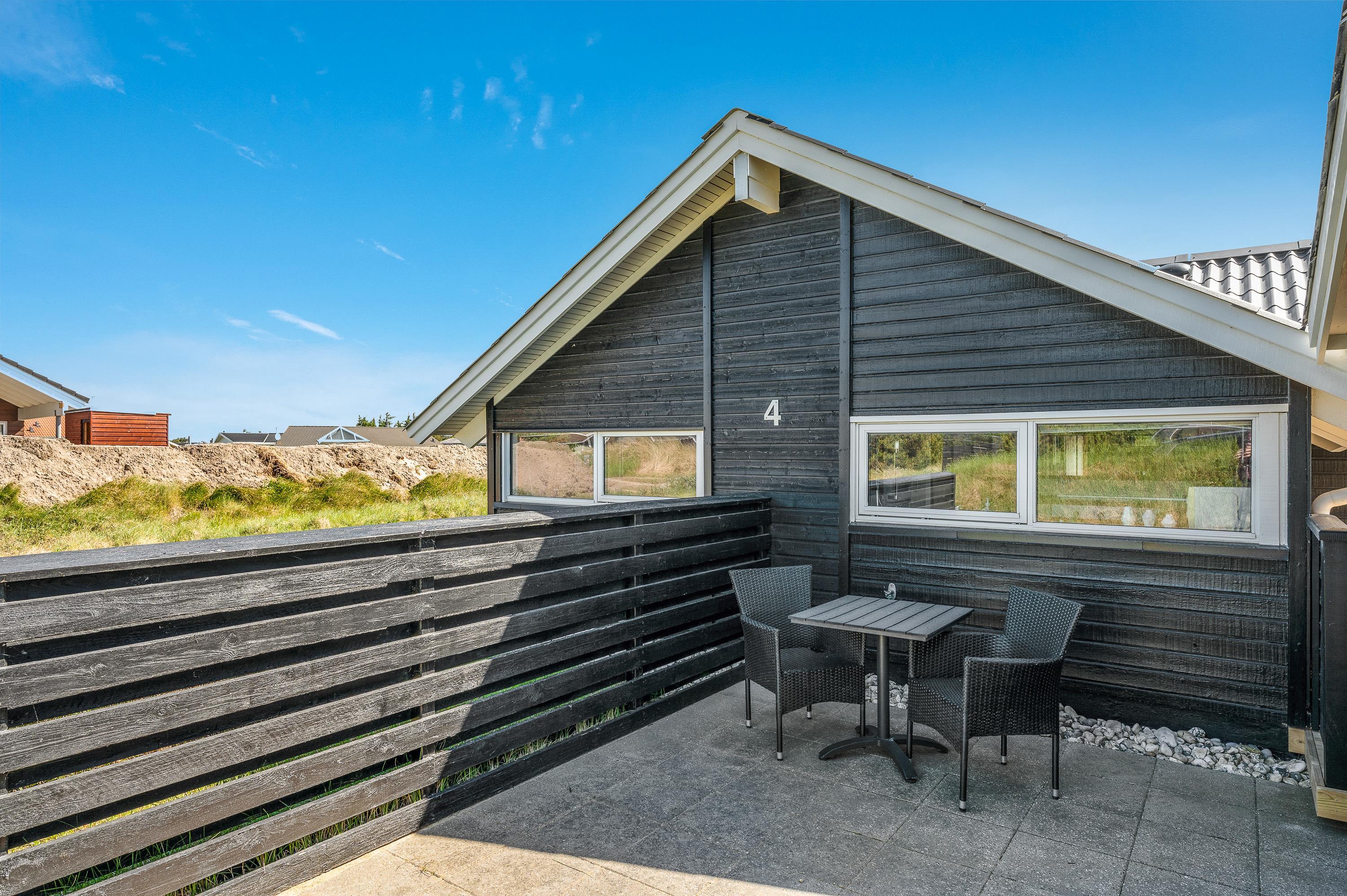Udendørsarealet imponerer med den smukke lukkede træterrasse, hvor børnene kan bevæge sig frit rundt, så du kan nyde en god kop kaffe og læse en god bog. På terrassen er der plads til solbadning og du kan altid finde en plads i læ, hvor du kan nyde eftermiddagskaffen.