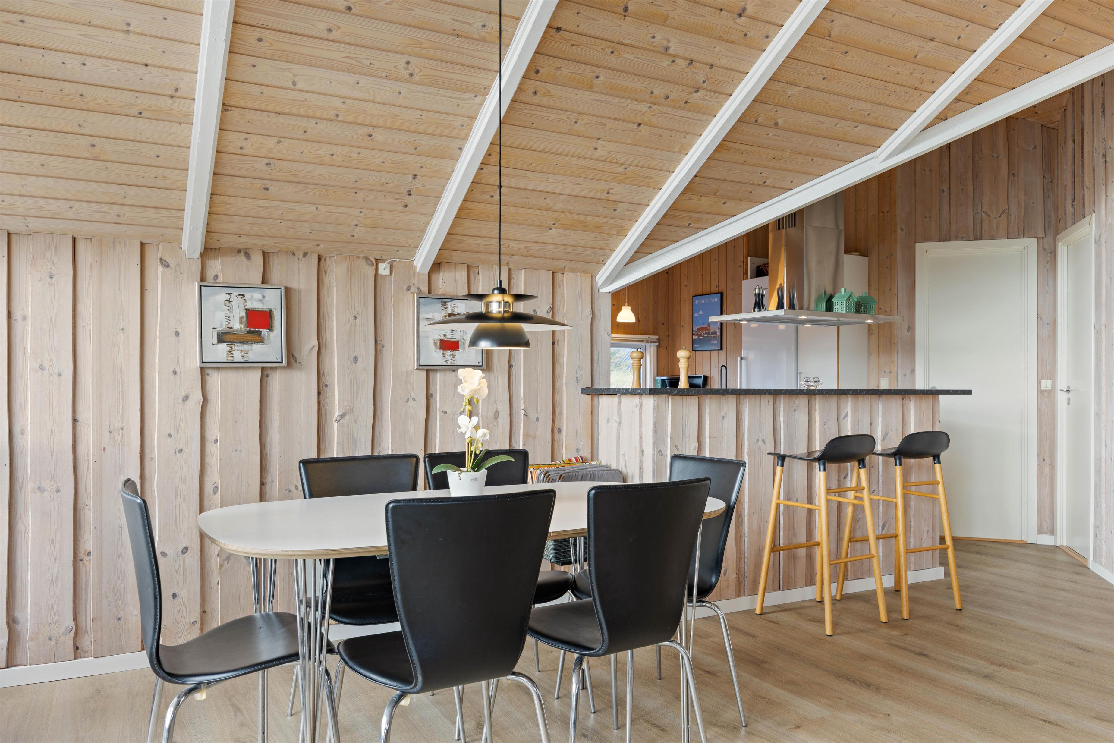Mens brændeovnen knitrer og varmen omfavner jer, kan I spille brætspit ved spisebordet eller tilberede et lækkert måltid i det veludstyrede køkken.