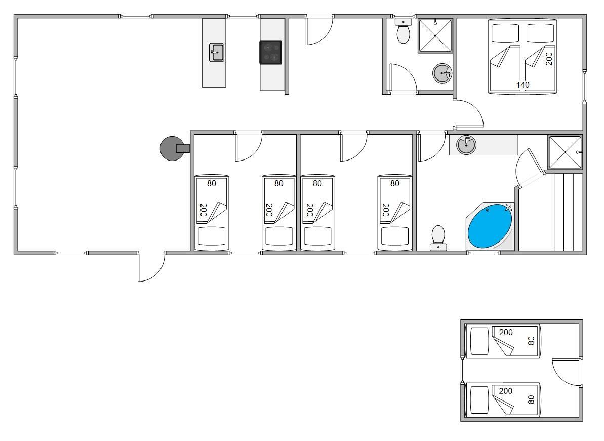 Vinterlejevej 7 kan danne rammerne for en dejlig ferie for op mod 6 gæster. Feriehuset er roligt indrettet og byder på et hyggeligt anneks, 3 fine værelser og 2 badeværelser, hvoraf det største er med både spa og sauna – helt perfekt til at komme ned i gear og glemme hverdagen for en stund. Også her har I mulighed for at blive varmet ordentligt igennem efter en lang tur ved vandet. Efterfølgende kan I alle samles i køkkenalrummet.