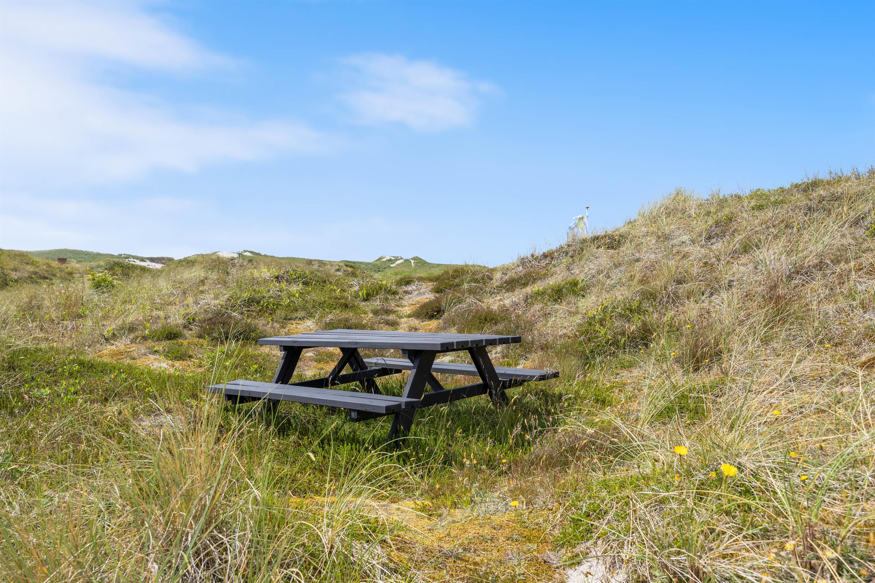 Slap af over en god grillmiddag på terrassen, imens I nyder solnedgangen over klitterne, havets salte duft og brusen i baggrunden. Solnedgangen kan også nydes fra bænken i klitterne - herfra er udsigten over området foremidabel.