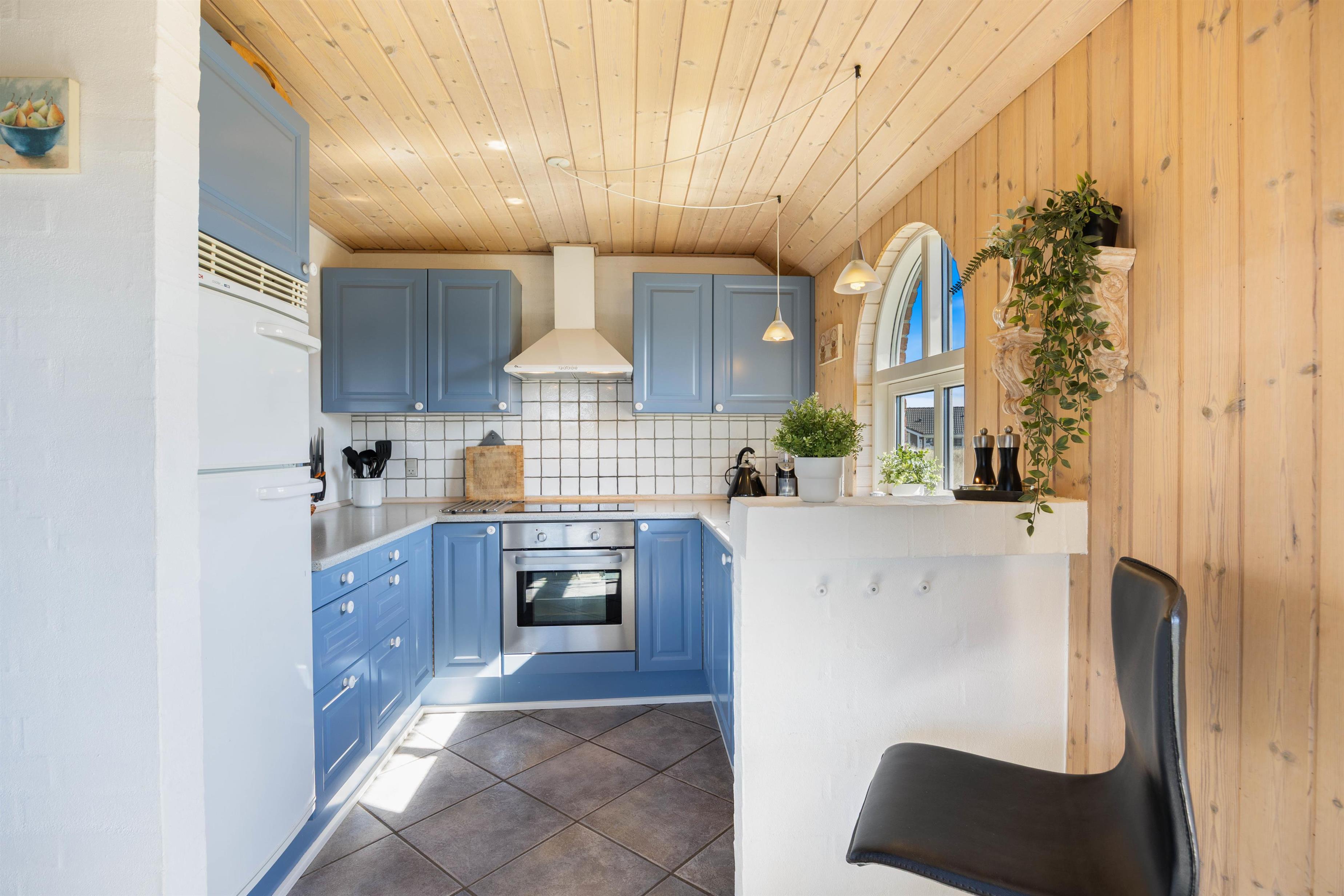 Sommerhuset har en rigtig fin og gennemført stil med en gennemgående blå farve. Her vil I hurtigt føle jer hjemme.
