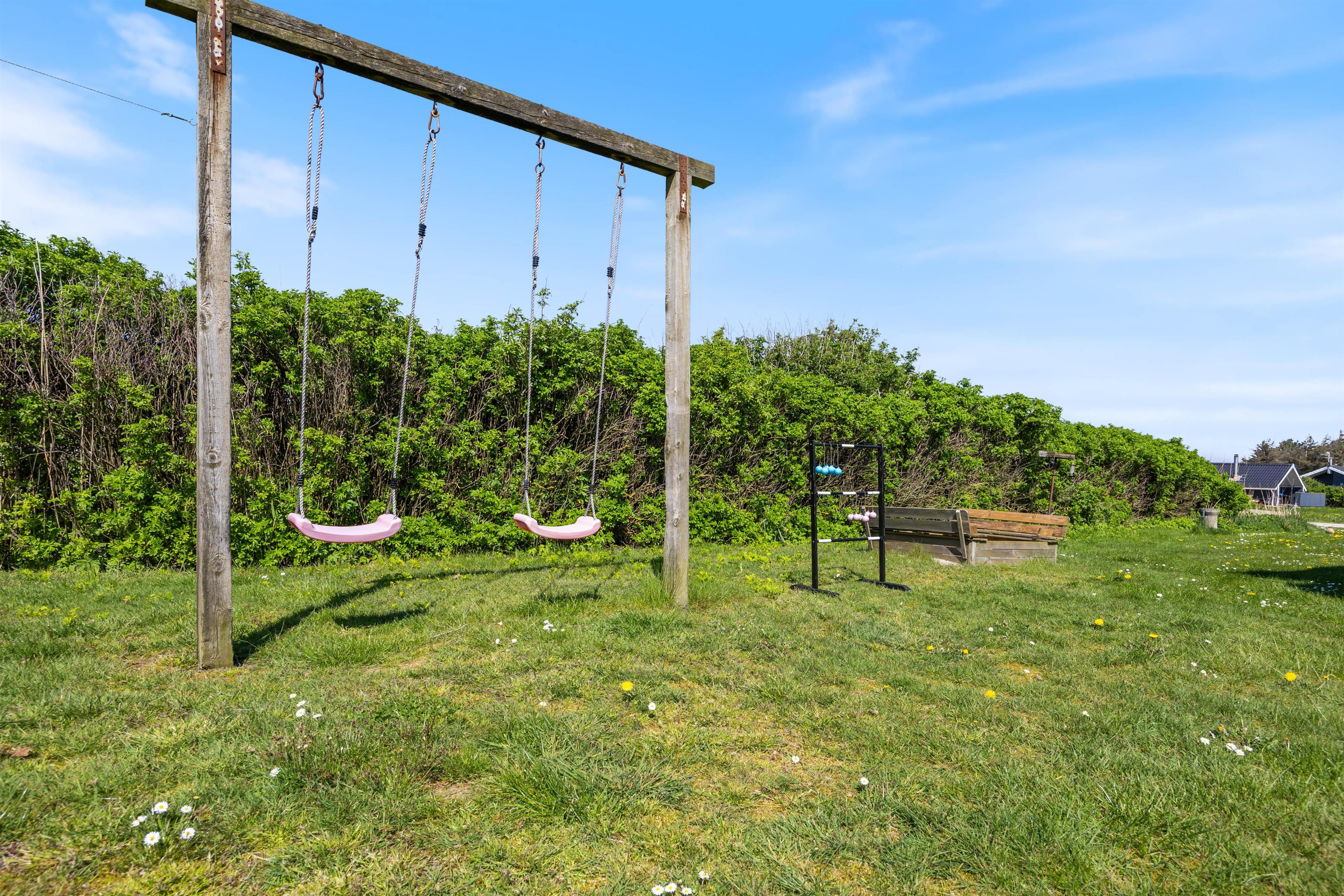 Grunden er på 1.204 m2 og er en plænegrund, som byder på en gynge og en sandkasse til de mindste feriegæster.