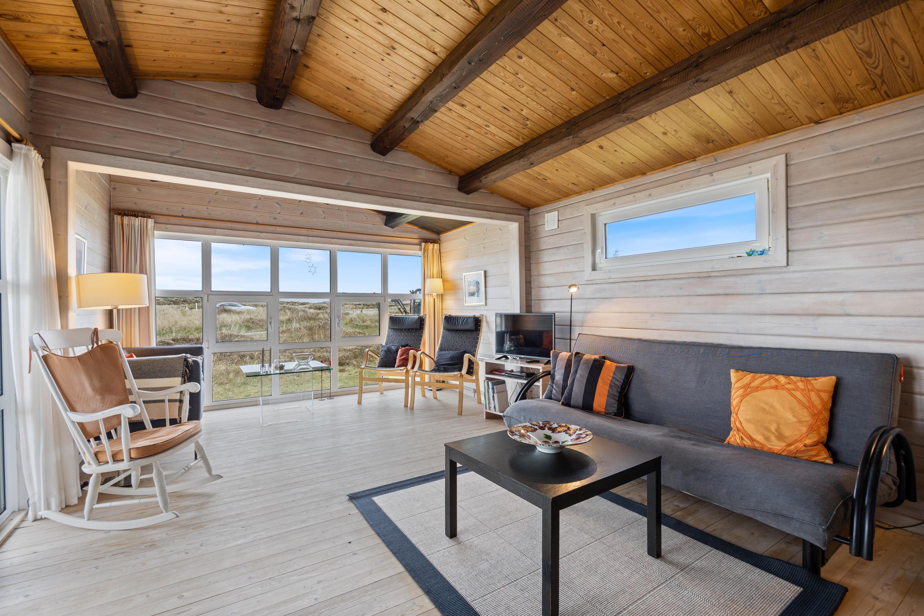 Sommerhuset ligger i det naturskønne Haurvig, og fra sommerhuset har I 850 meter til Vesterhavet. En kort gåtur mod øst bringer jer til Ringkøbing Fjord, der, med sit rolige vand, er en kontrast til det brusende Vesterhav. Indkøb kan klares i den nærliggende havneby Hvide Sande, der udover supermarkeder også byder på et bredt udvalg af restauranter og shoppingmuligheder i de lokale butikker.
