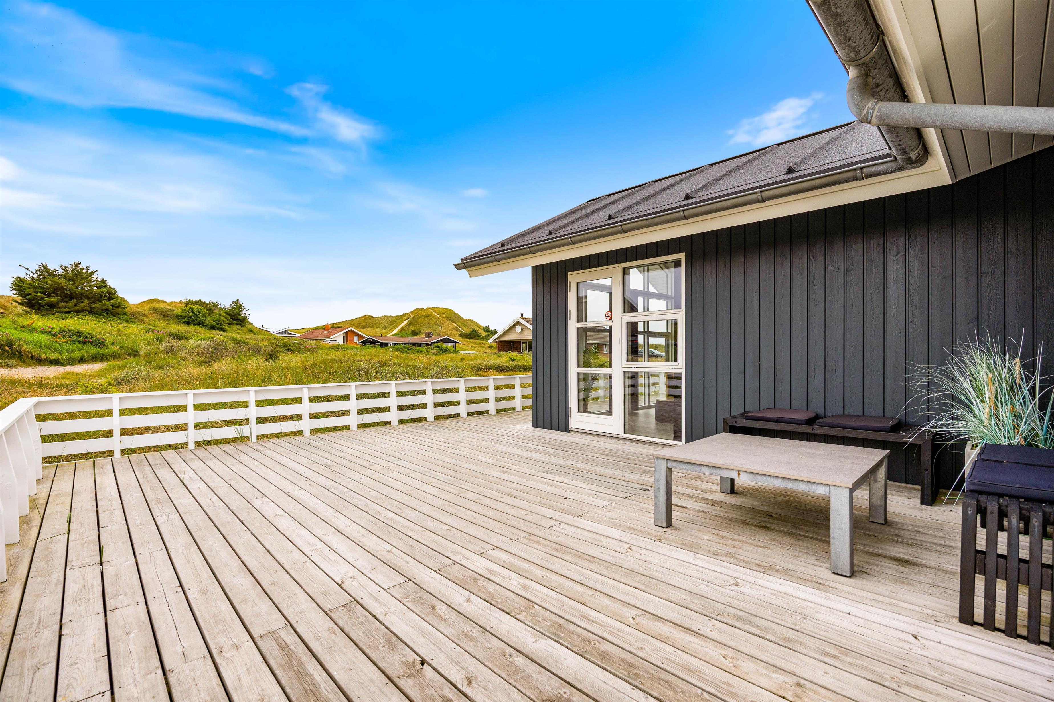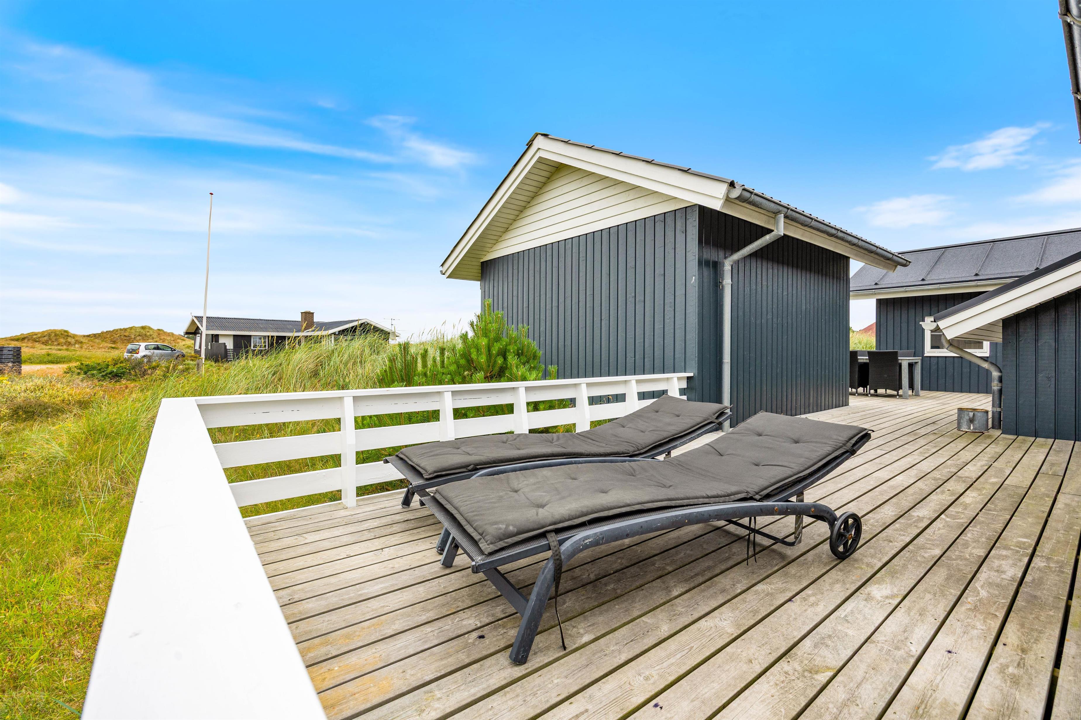 Den store terrasse strækker sig rundt om sommerhuset og giver jer rig mulighed for at finde en solplet eller lækrog hele dagen igennem. Her kan I nyde morgenkaffen i ro og mag, læse en god bog i solvognen eller samles til aftensmad, når dagens oplevelser skal rundes af. På sommerhusets grill kan I tilberede et lækkert måltid, som nydes med udsigt til solnedgangen og det brusende hav i baggrunden – det er ægte feriestemning.