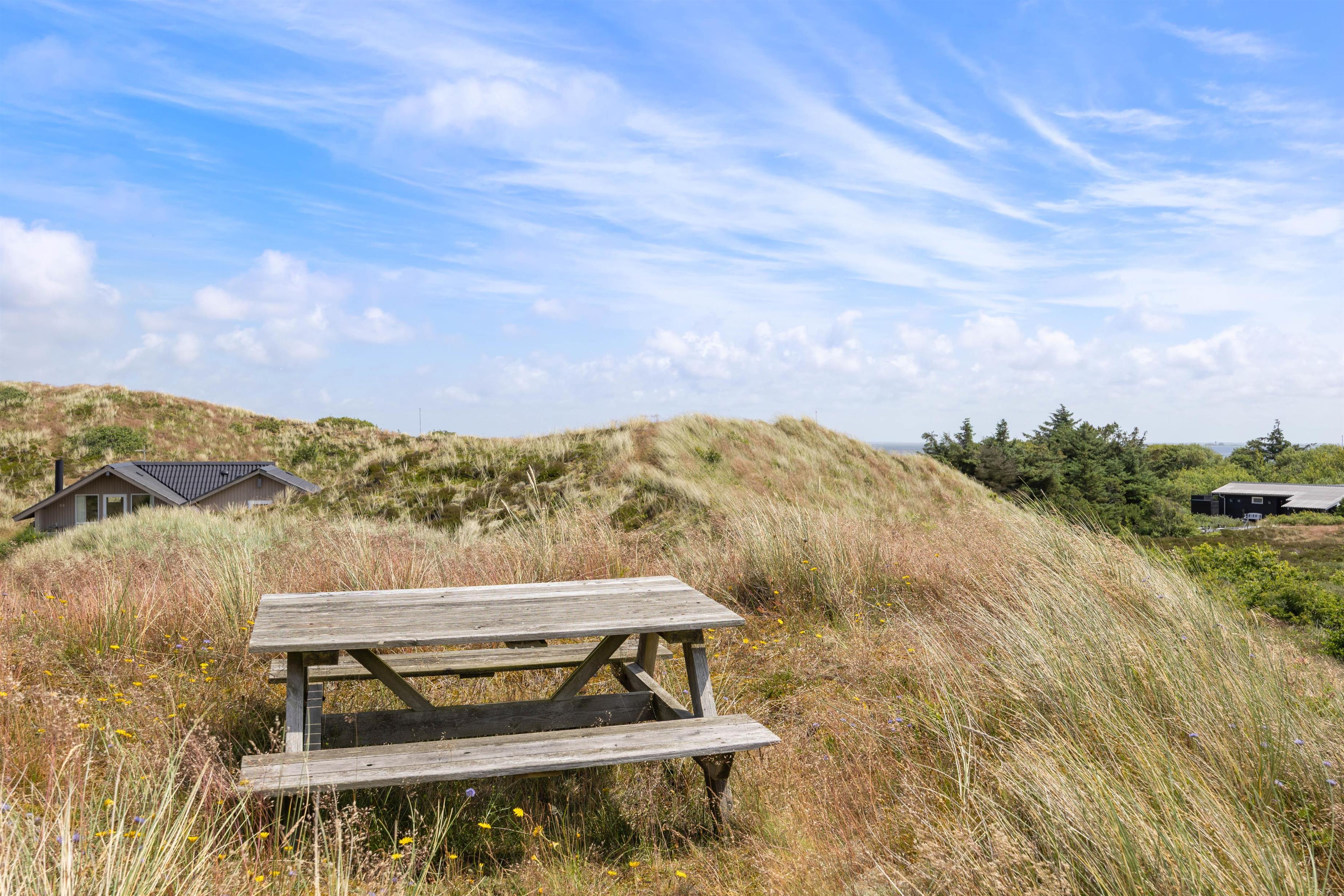 Sommerhuset på Vinterlejevej 53 ligger idyllisk mellem klitter og hede på en 2500 m² stor naturgrund. På den sydvendte terrasse, som er delvist overdækket, finder I hyggelige havemøbler, som indbyder til afslapning i den friske luft. Der er også en grill til rådighed, så I kan nyde et lækkert grillmåltid sammen imens skyggerne bliver lange. En aftentur til Ringkøbing Fjord vil være en dejlig afslutning på feriedagen.