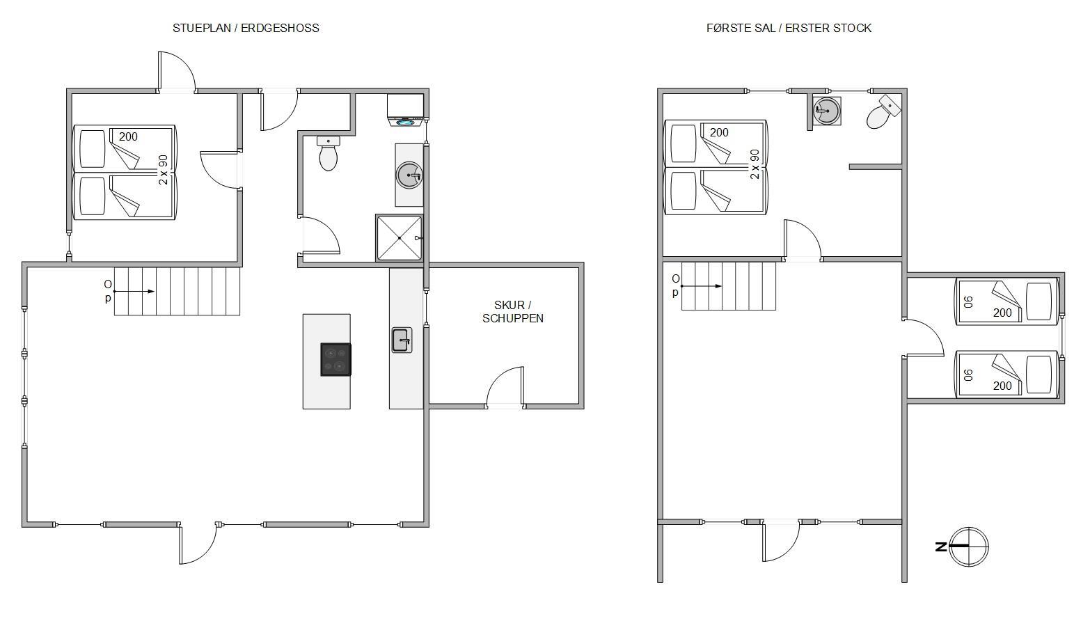 Efter middagen er det tid til at slappe af, f.eks. med din yndlingsbog foran den knitrende ild i brændeovnen. Ud over brændeovnen kan I også opvarme stueetagen med gulvvarmen, som drives af en energibesparende luft-til-luft varmepumpe. Her er også et fint badeværelse med dagslys og 1 af de hyggelige soveværelser med 2 enkeltsenge. Bemærk, at der på dette værelse er meget lavt til loftet. Med vaskemaskine og tørretumbler til rådighed kan I regelmæssigt opfriske badehåndklæderne.