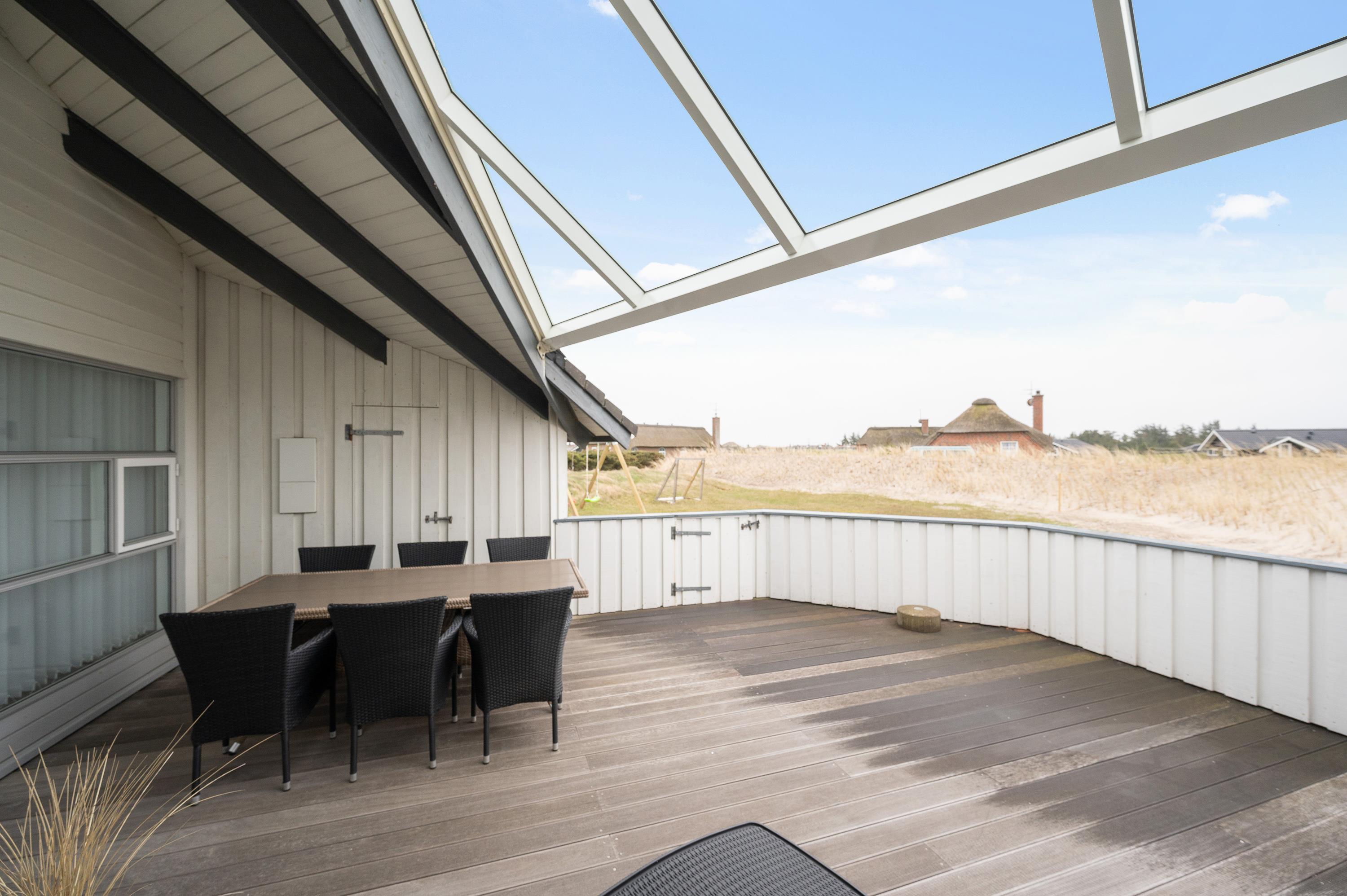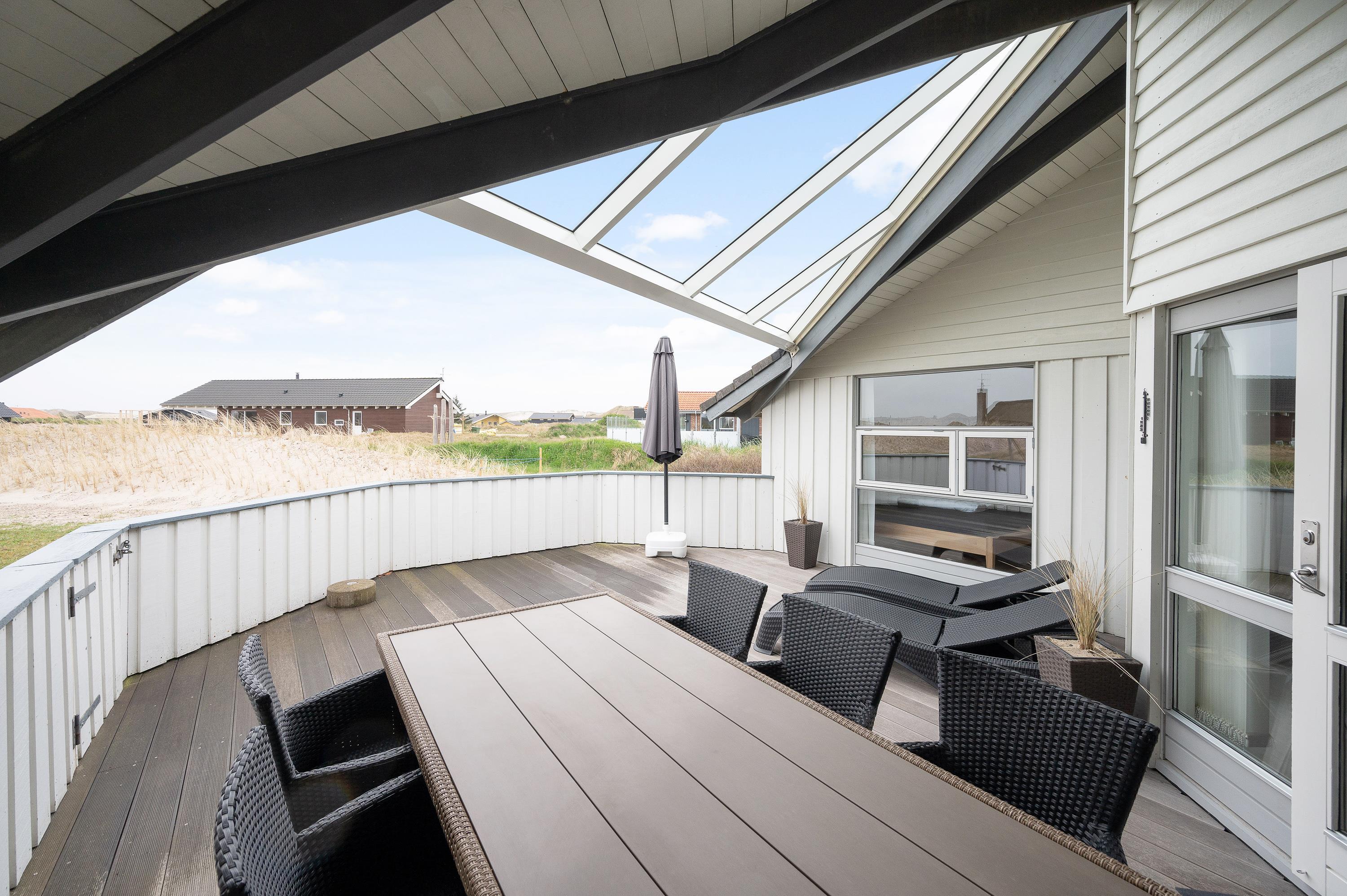 Fra stuen kan I gå direkte ud på den store, lukkede terrasse. Her kan hele familien samles til en lækker grillmiddag på en lun sommeraften. Skulle der komme en smule regn, kan I sidde i ly - terrassen er nemlig delvist overdækket.