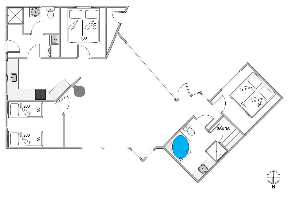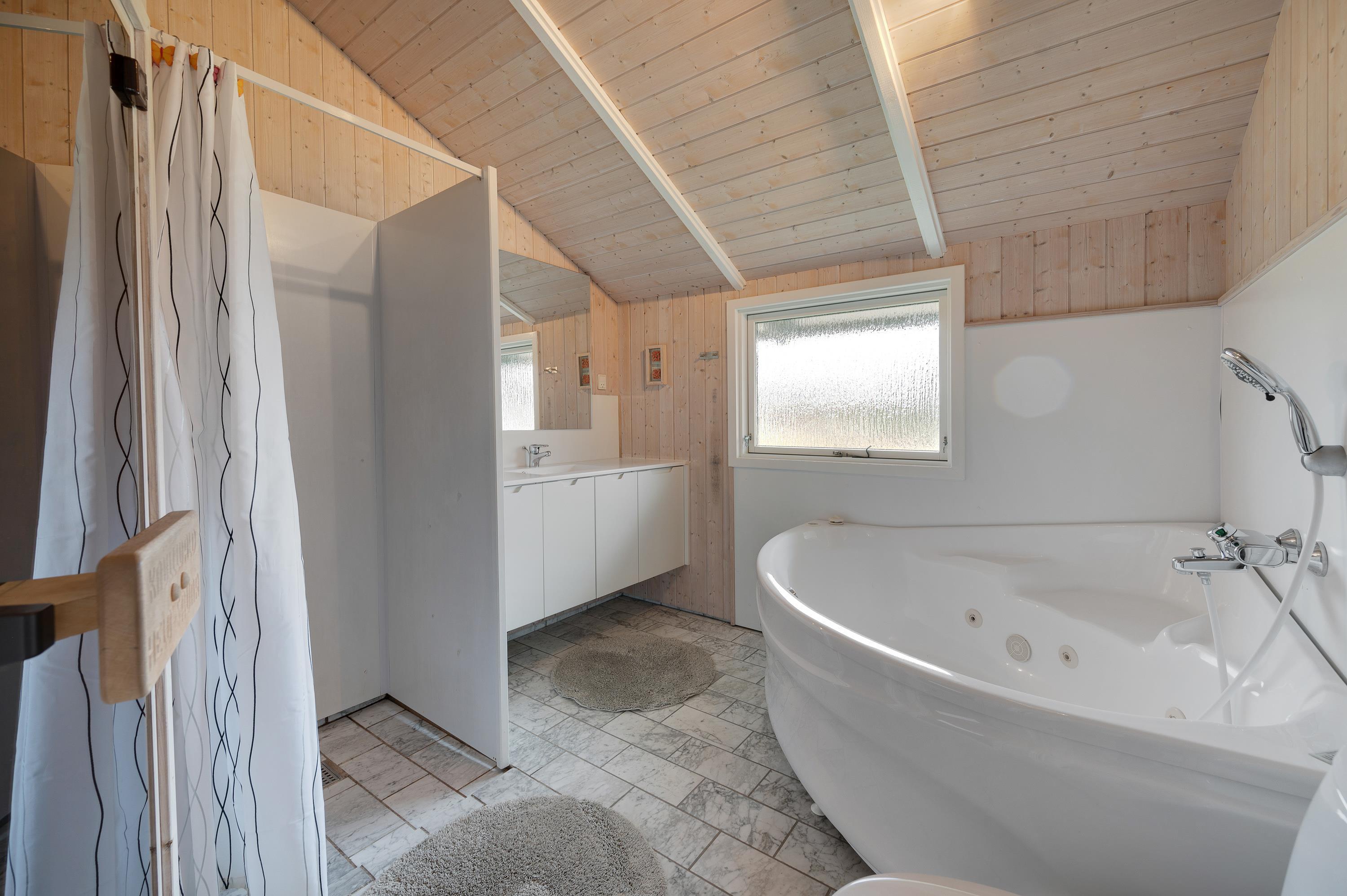 Desuden er der hele 2 badeværelser, så der ikke opstår kø om morgenen – begge er med gulvvarme. Som et ekstra plus er der både sauna og spa på det ene af badeværelserne, så I rigtig kan få slappet af.