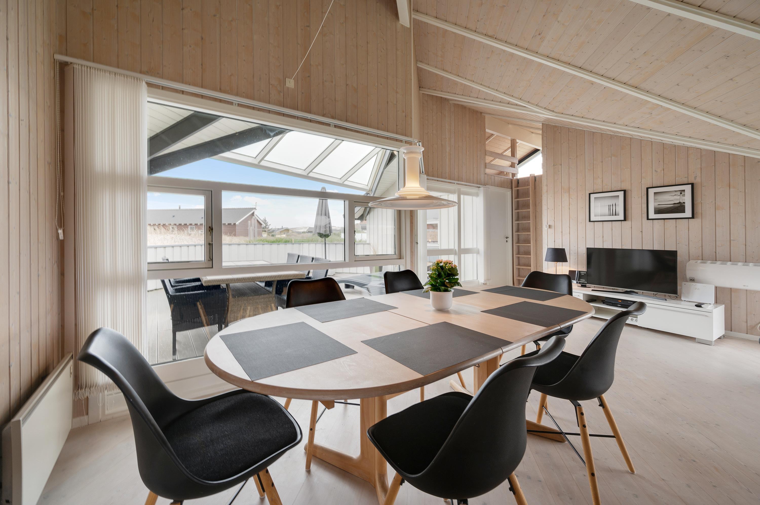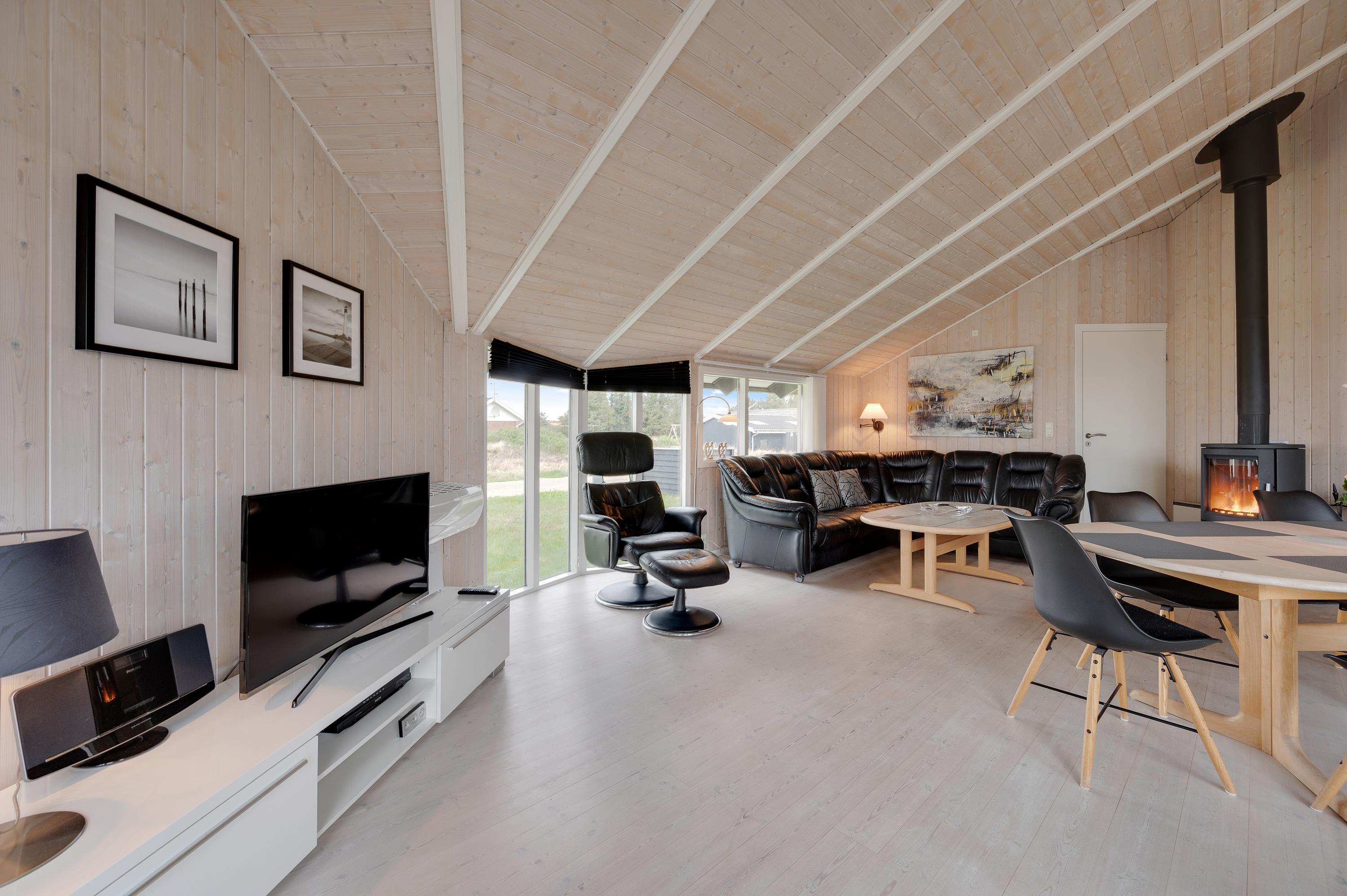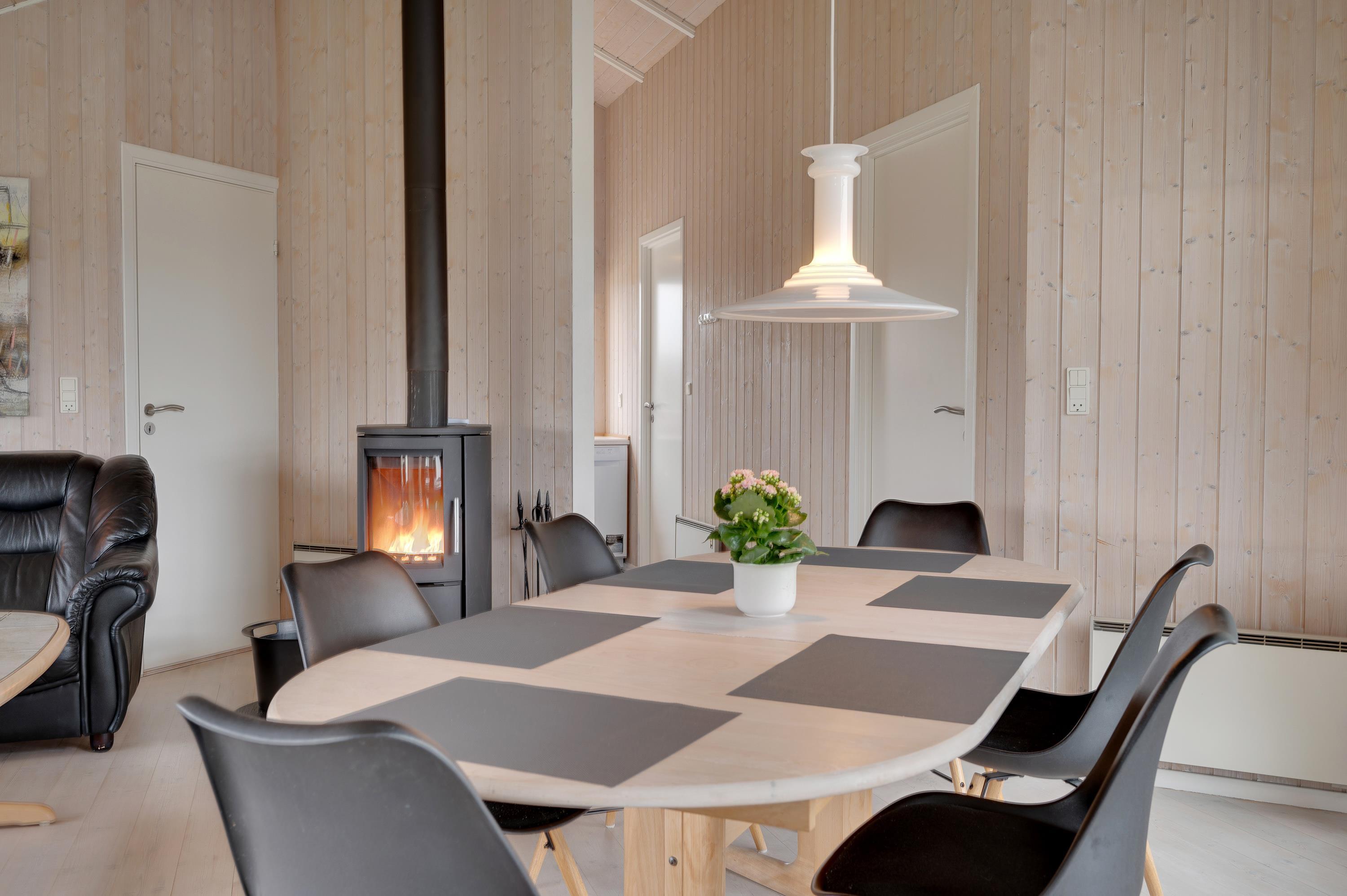 I det lyse og indbydende opholdsrum er der plads til hele familien, som kan samles til en hyggelig film- eller spilleaften. Vil I have ekstra god stemning, kan I tænde op i brændeovnen, som giver en varm og hyggelig følelse på ferien.