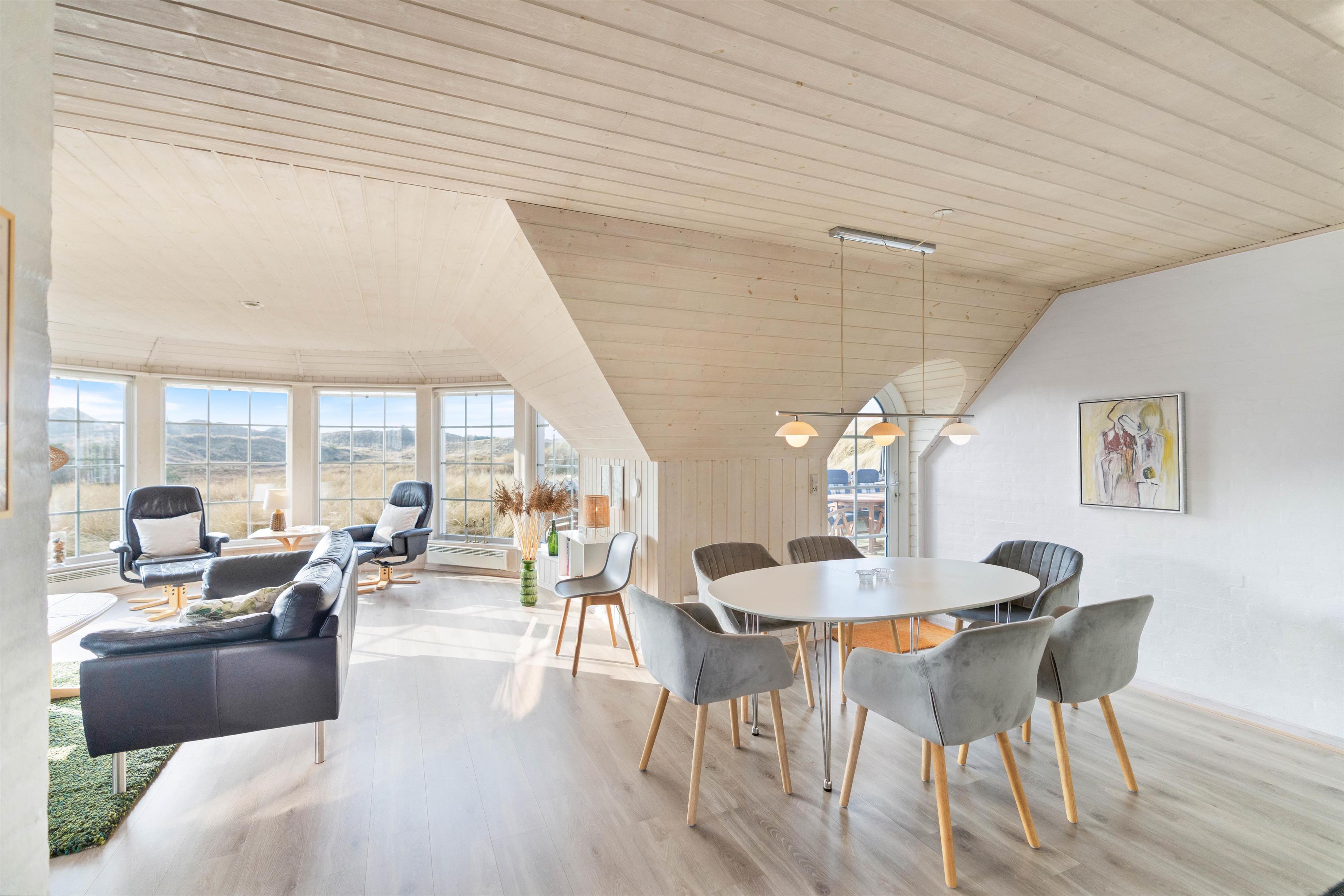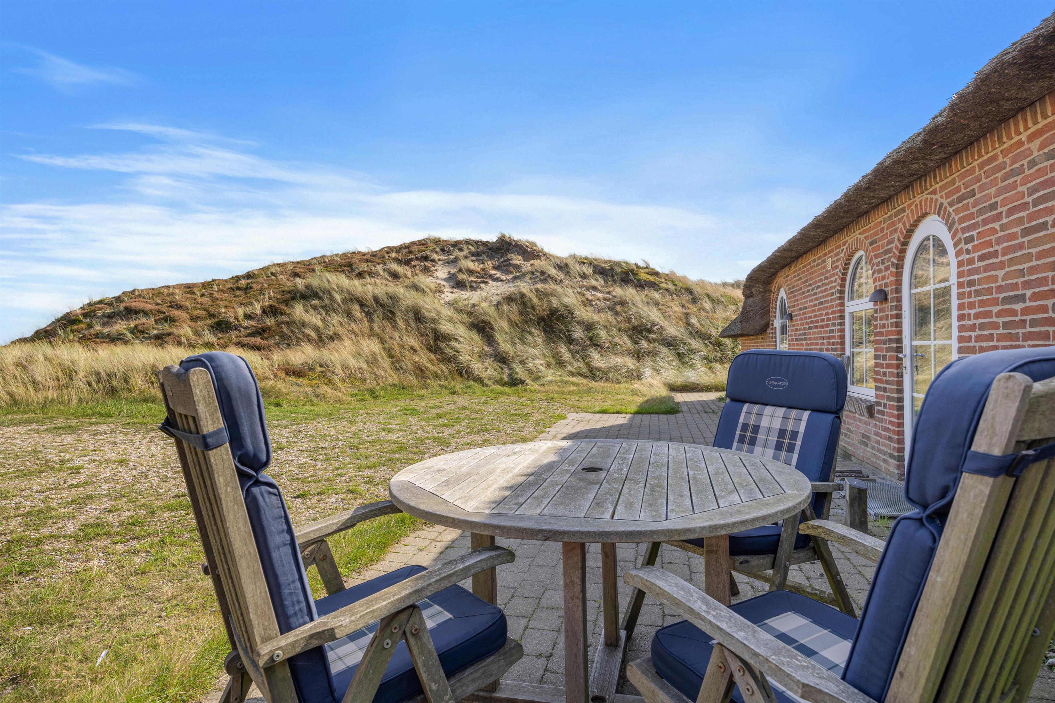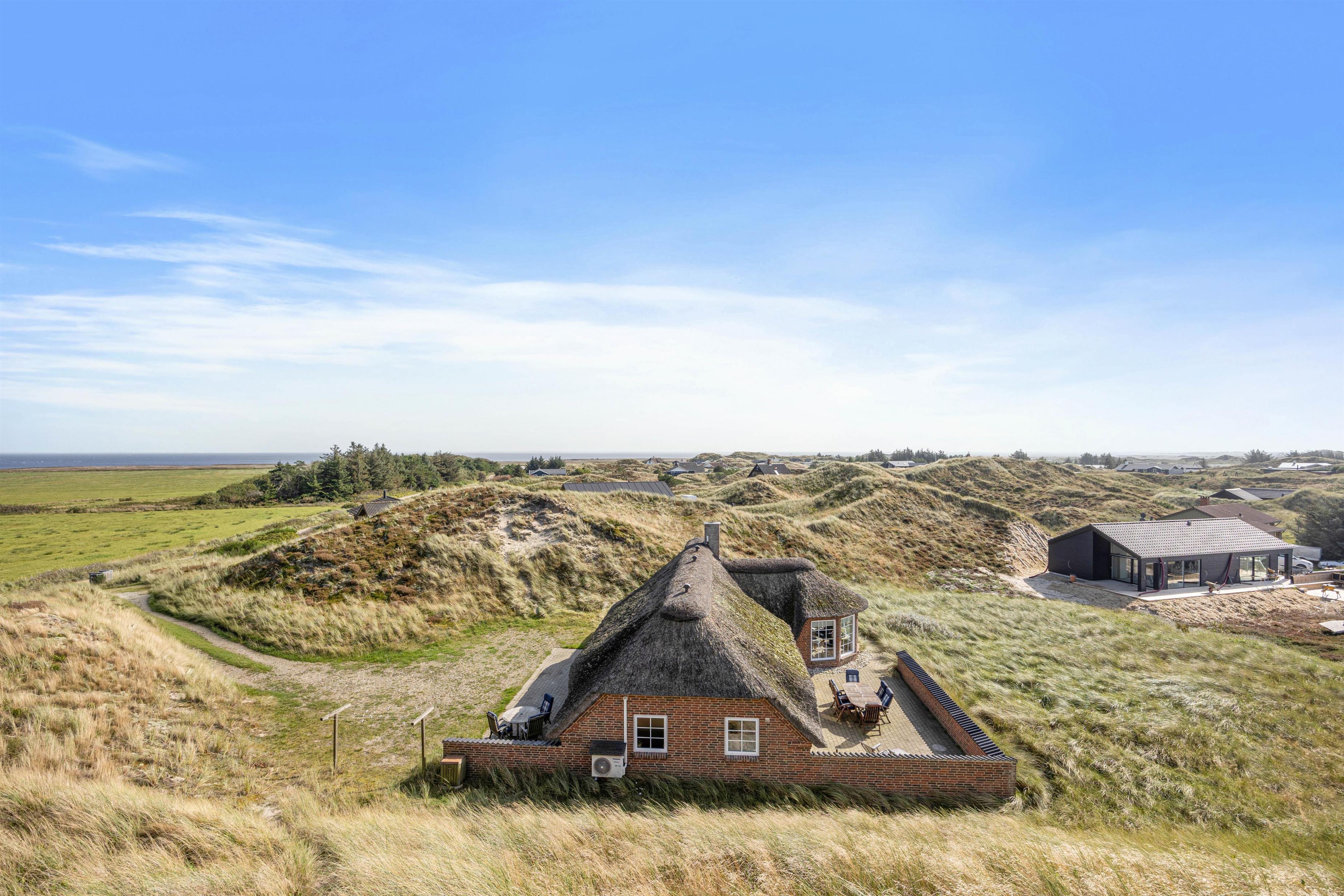 Feriehuset ligger på en stor naturgrund med omkringliggende klitter, der sørger for både læ og privatliv. På den måde kan I uforstyrret nyde jeres ferie og dejlige gåture i området ved Ringkøbing Fjord.