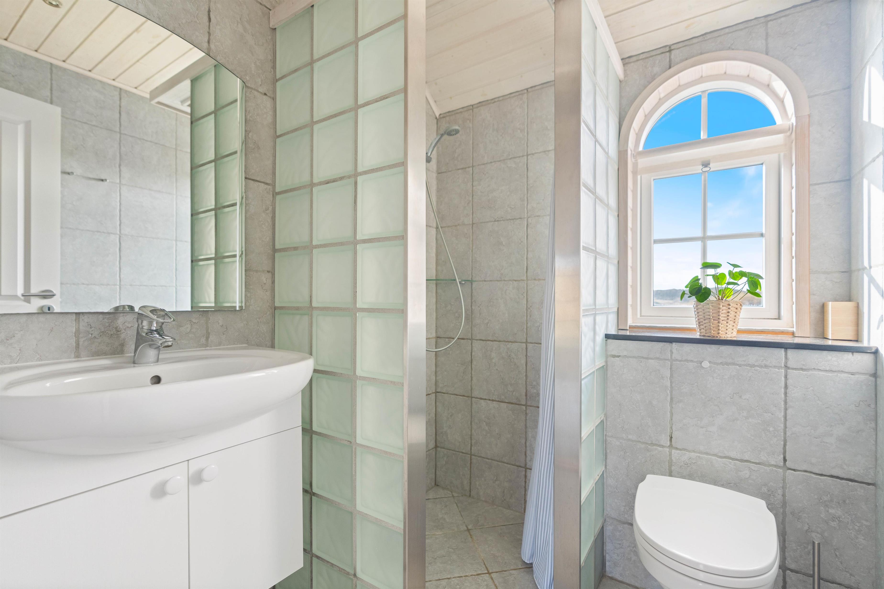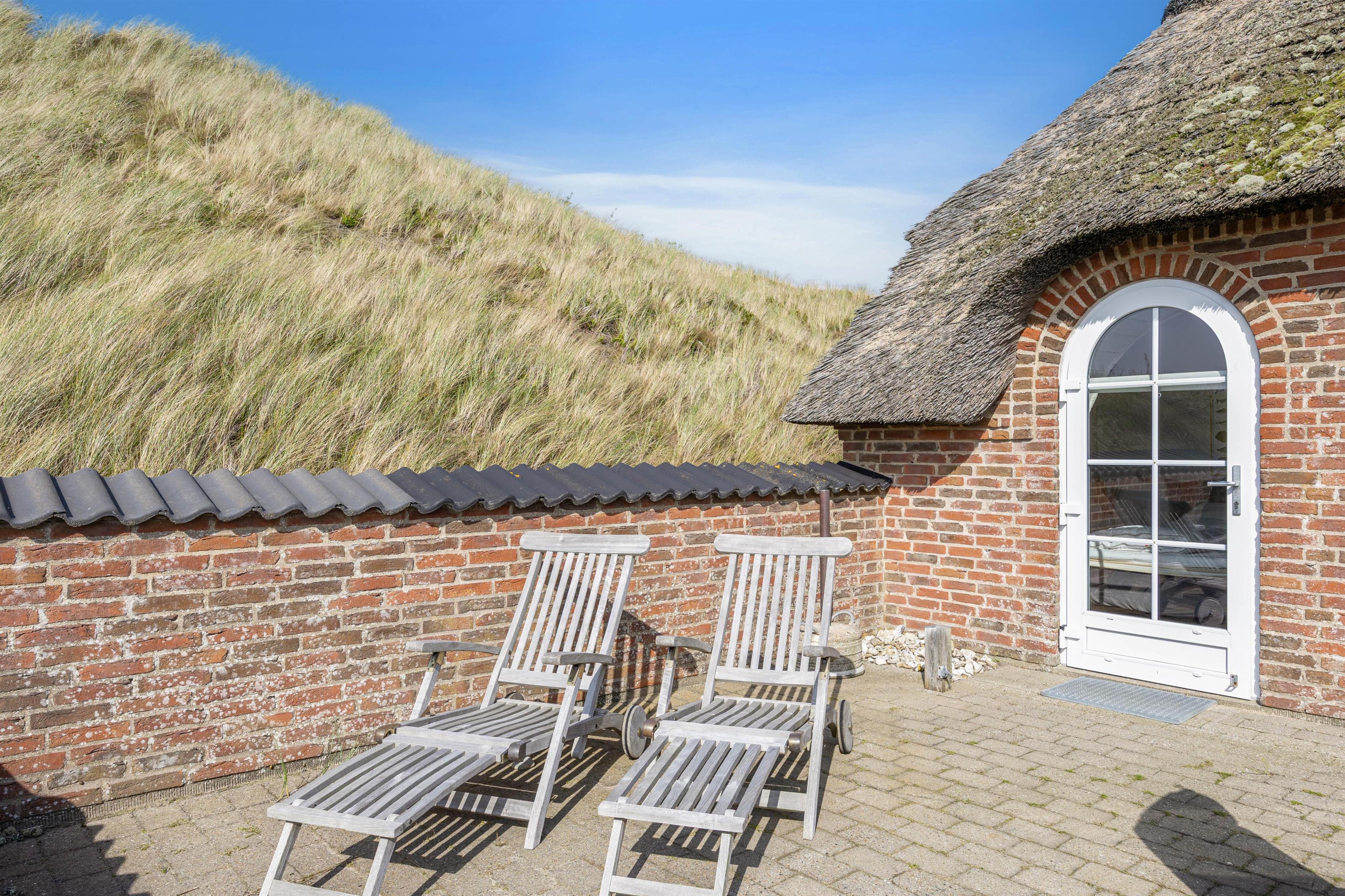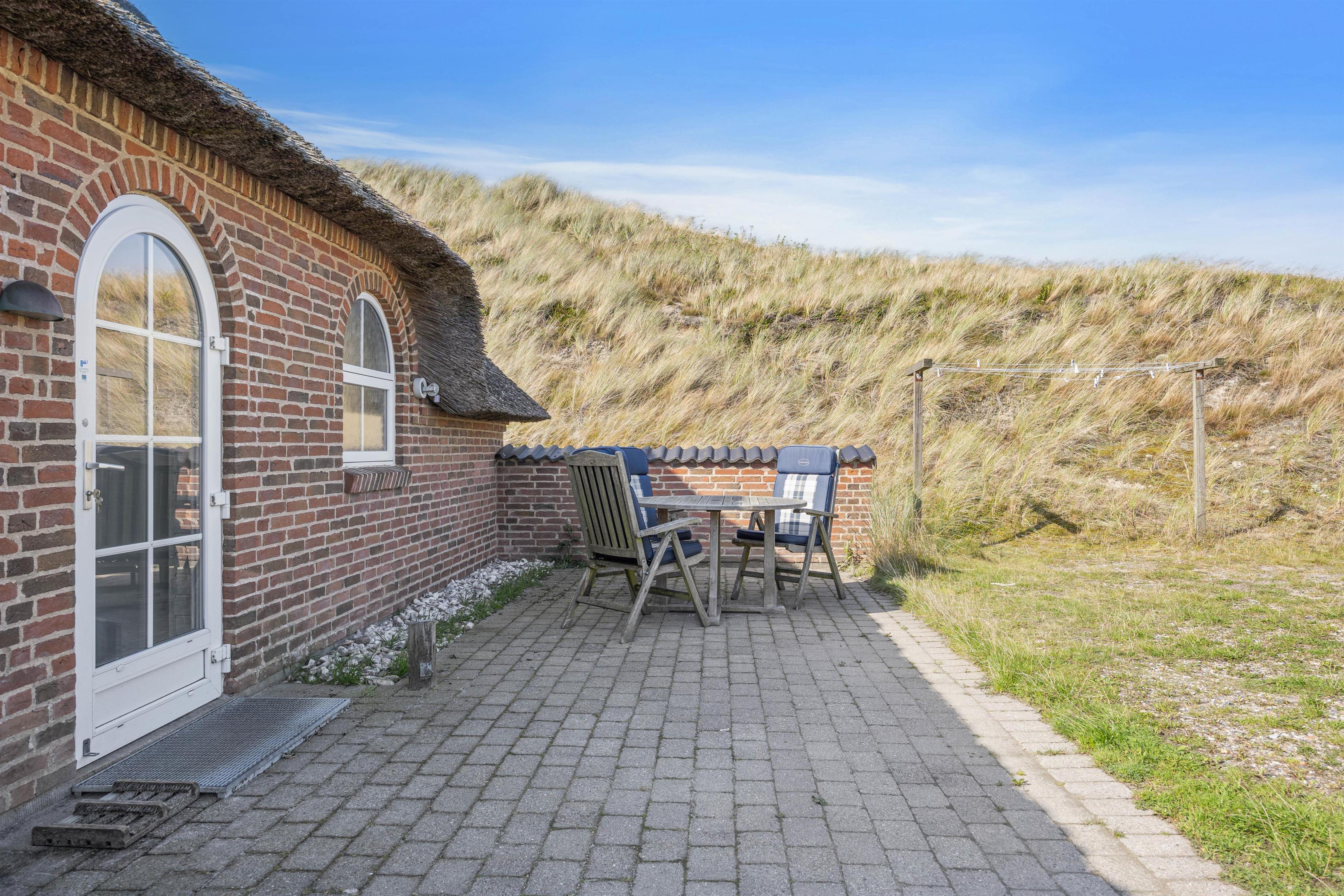 Omkring feriehuset er der anlagt fliser, så I altid har mulighed for at finde en plads med læ. Og mod sydvest er der anlagt en dejlig afskærmet terrasse, som er helt ideelt til eftermiddage i liggestolen og hyggelige grillaftener.