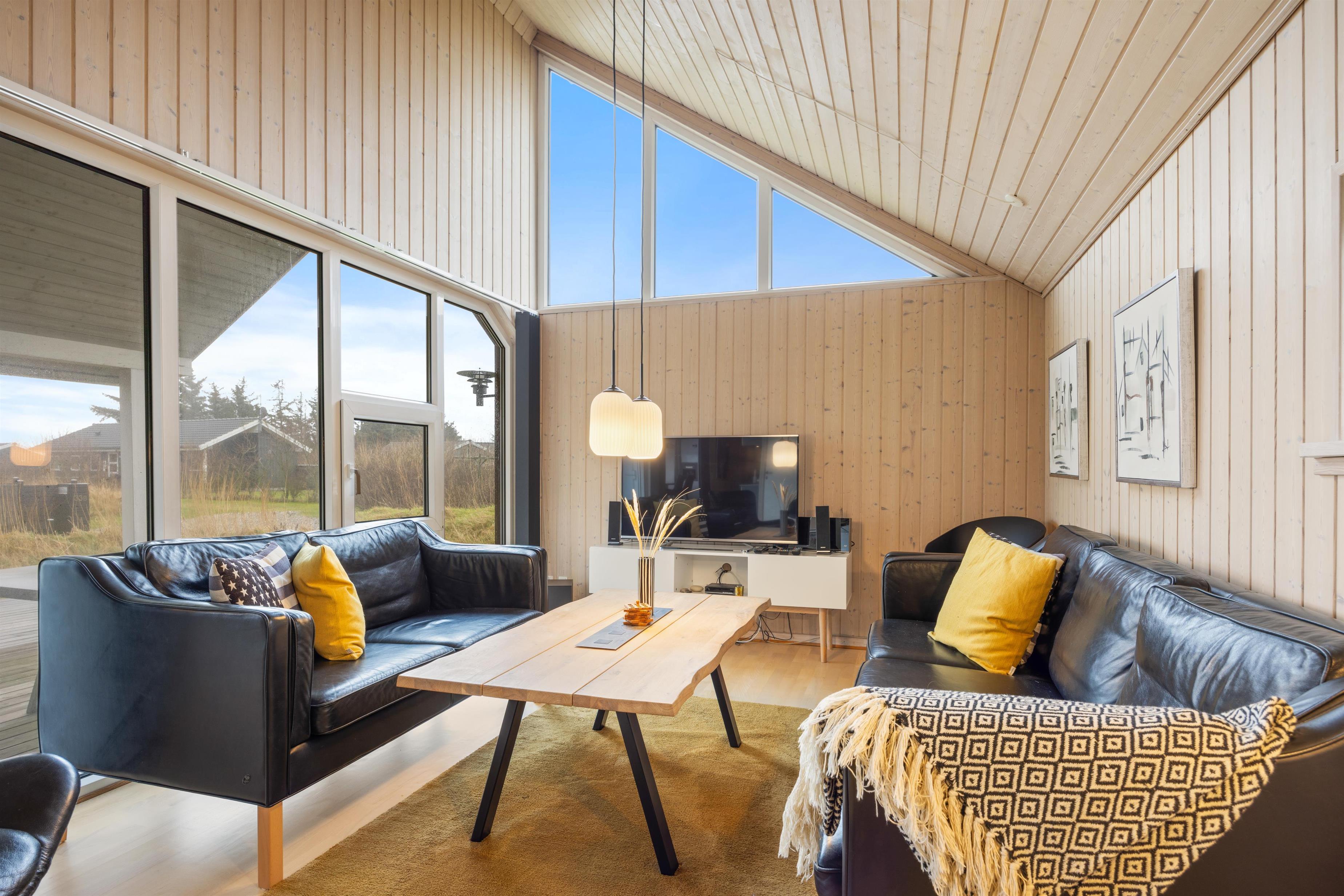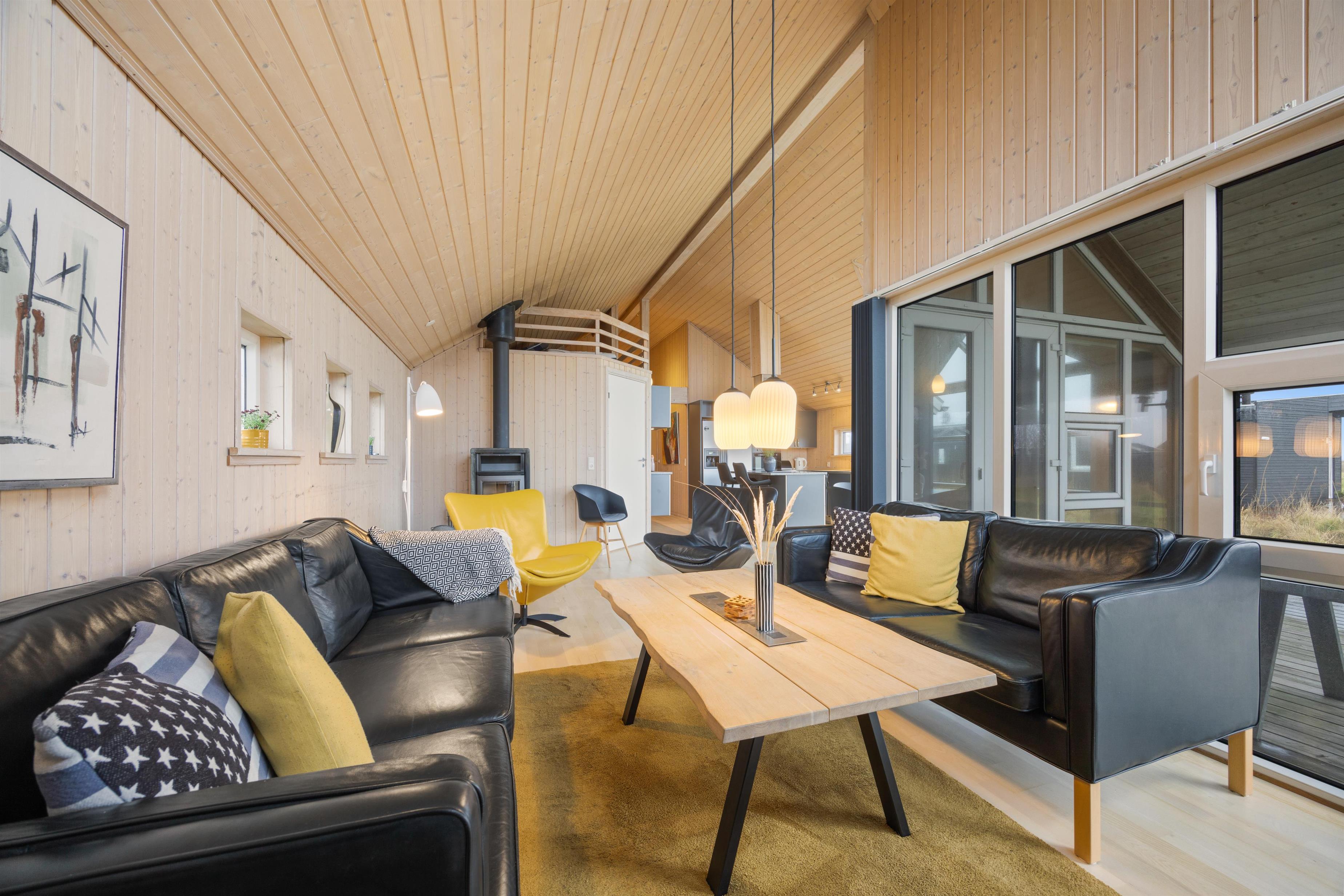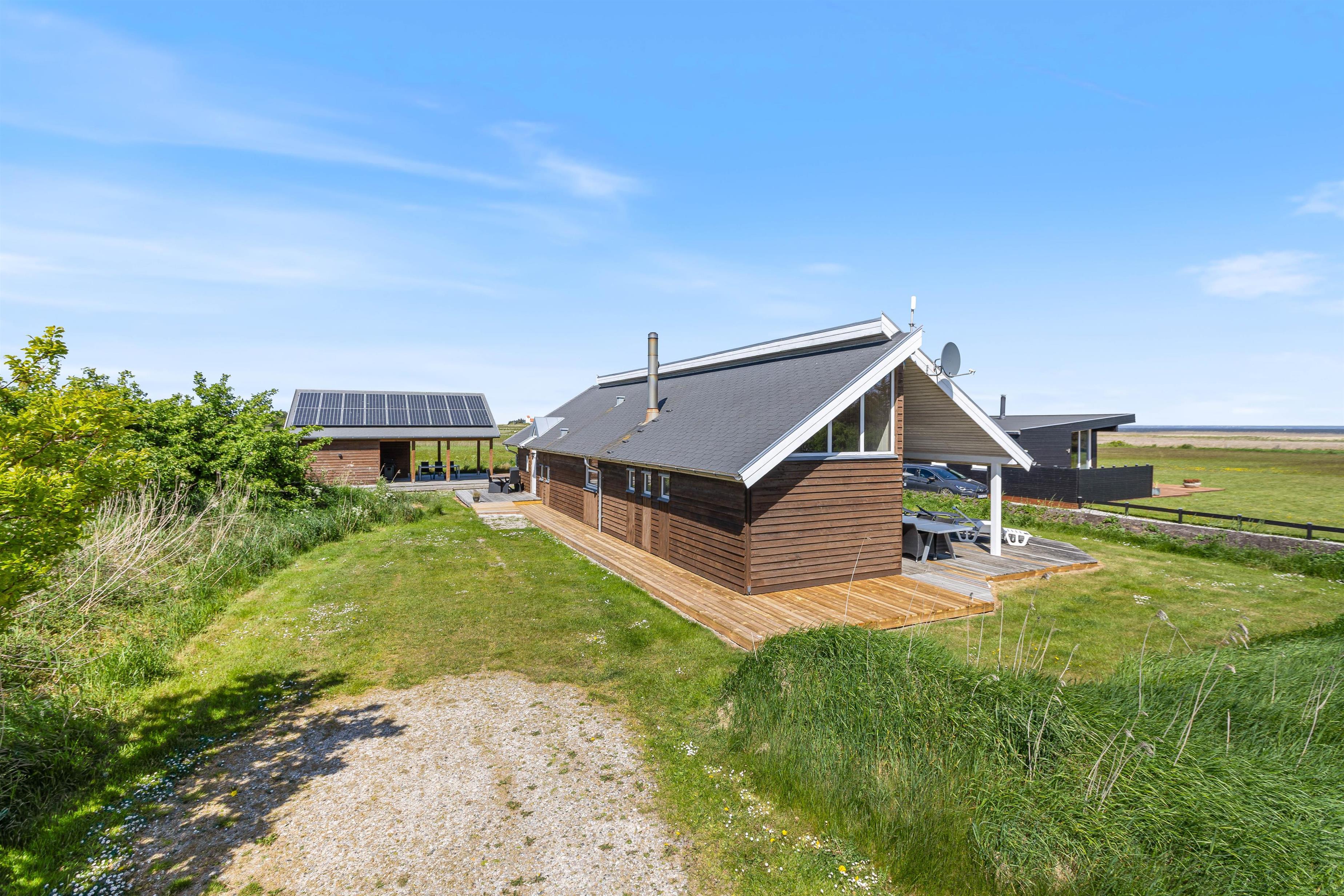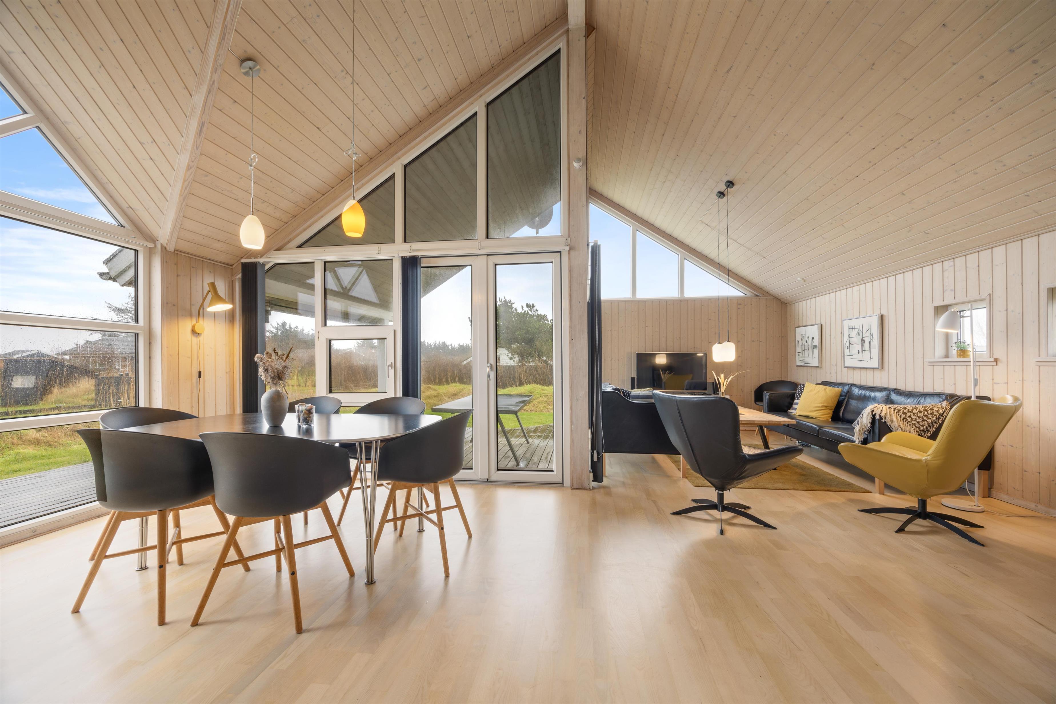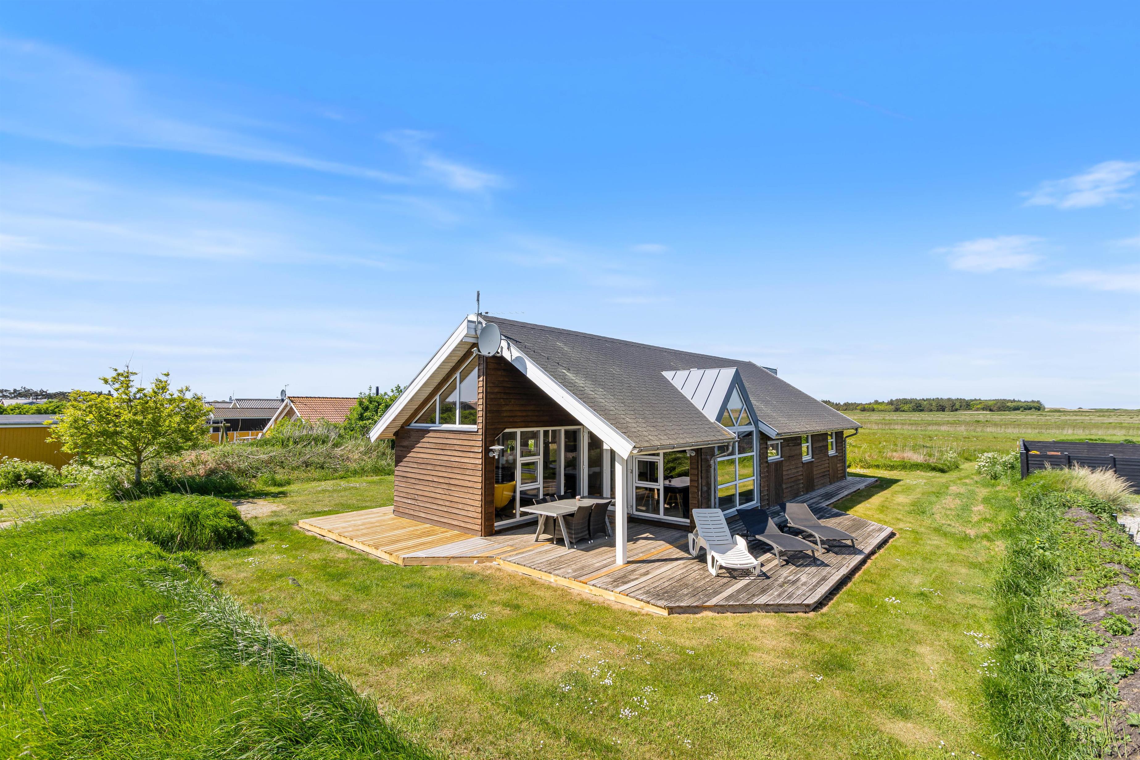 På den åbne terrasse kan I slappe af i de komfortable havemøbler og liggestole i den friske vesterhavsluft. Bliver solen for stærk, kan I trække ind på den afskærmede- eller overdækkede del af terrassen. Nyd panoramaudsigten og den vestjyske natur, gå på opdagelse på den 1.350 m2 store naturgrund eller gå en frisk tur til Vesterhavet og tag en dukkert, hvis vejret tillader det. Tænd op i grillen til aften og nyd et lækkert grillmåltid sammen, imens skyggerne bliver lange. I kan nå en tur til Vesterhavet, hvor I kan betragte solnedgangen – det er en oplevelse i alle slags vejr.