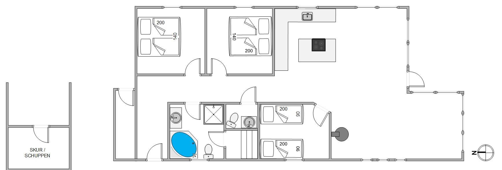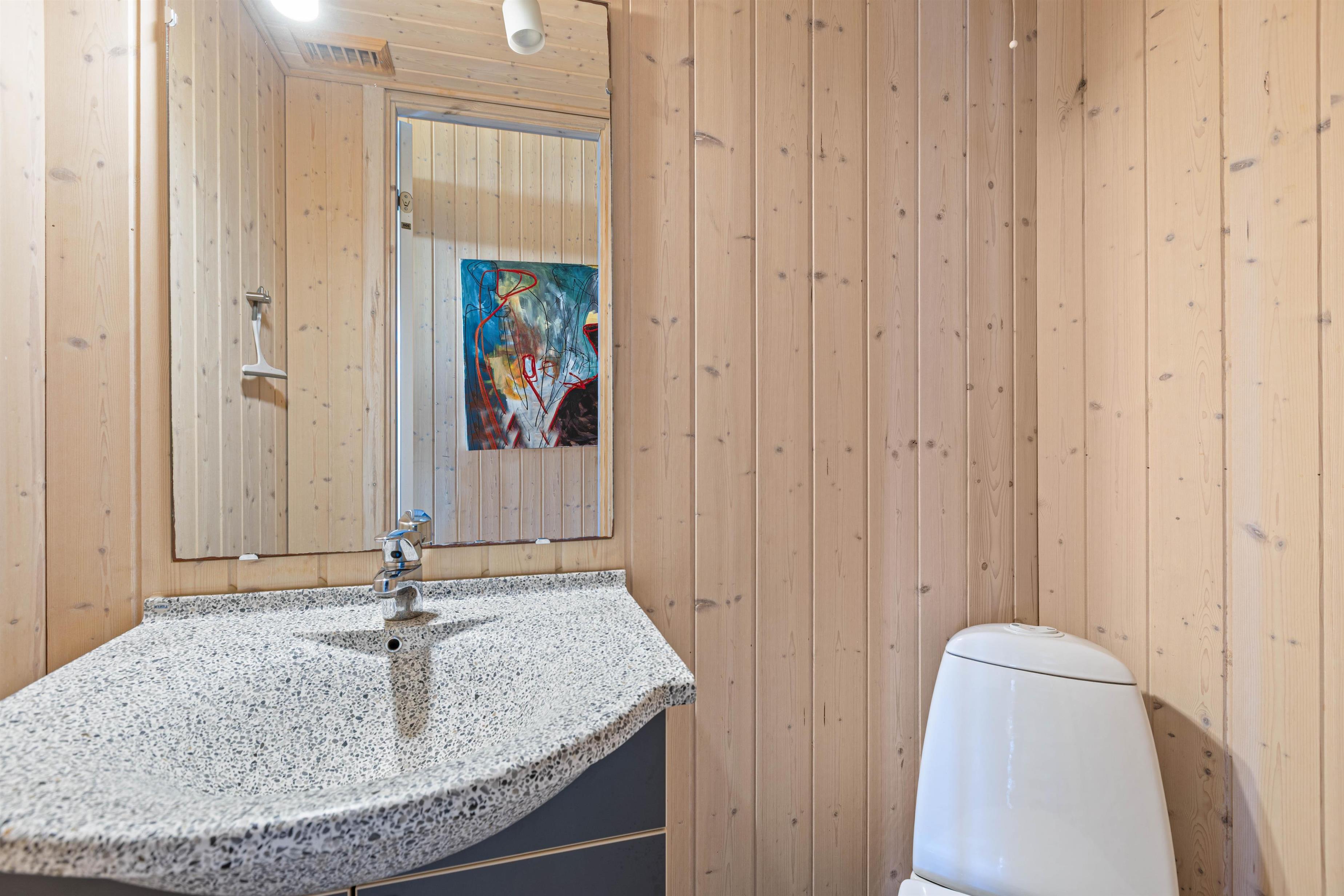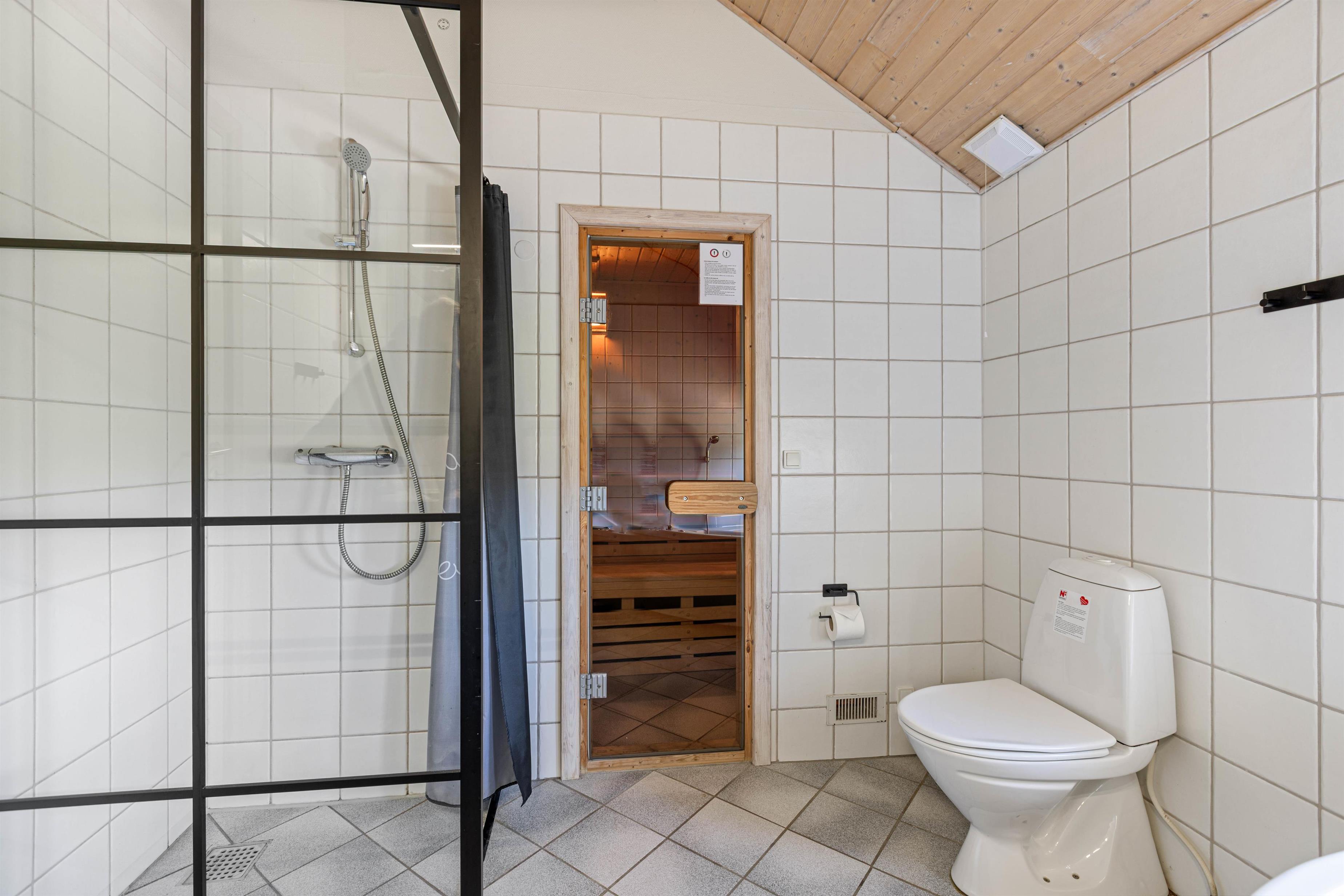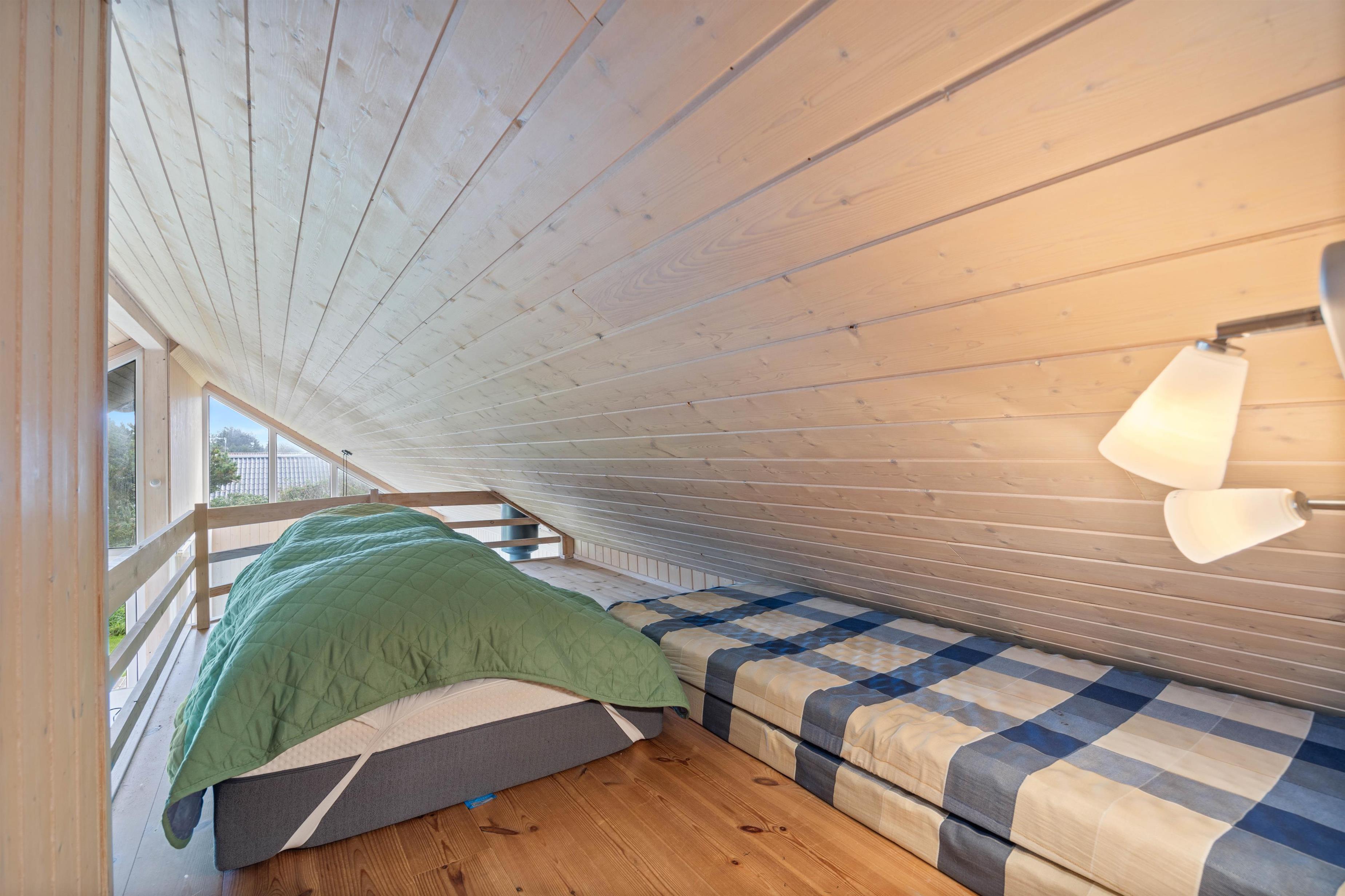 De 3 soveværelser indeholder 2 komfortable dobbeltsenge med en bredde på 140 cm og 2 enkeltsenge på 90 cm. Placeringen af gæstetoilettet og det store badeværelse med spa og adgang til sauna betyder, at man roligt kan tage en wellness-session uden at forstyrre resten af selskabet. Der er vaskemaskine, tørretumbler og en energibesparende varmepumpe til rådighed for jer under jeres ophold. Solcellerne bidrager til at holde forbruget nede.