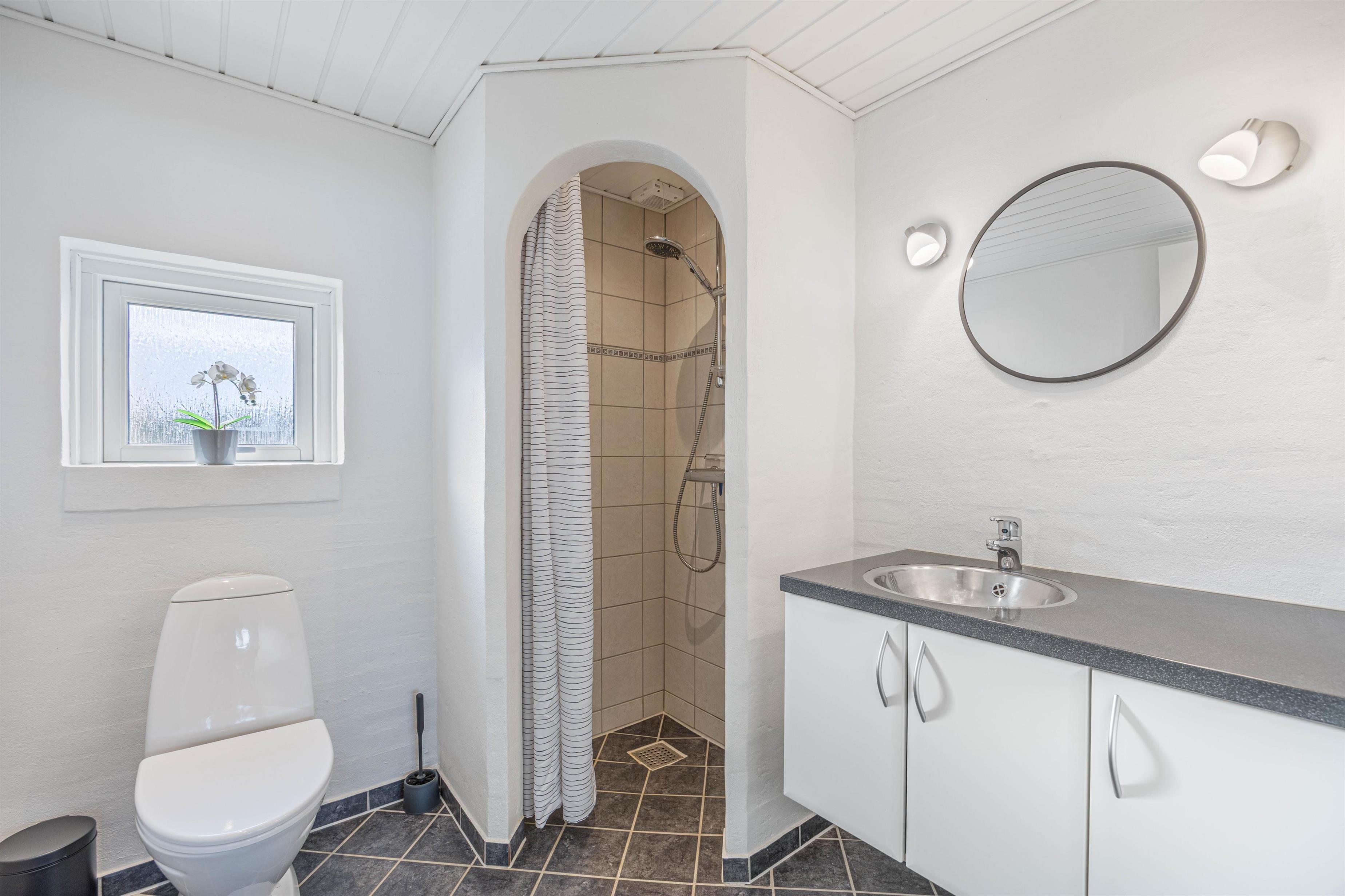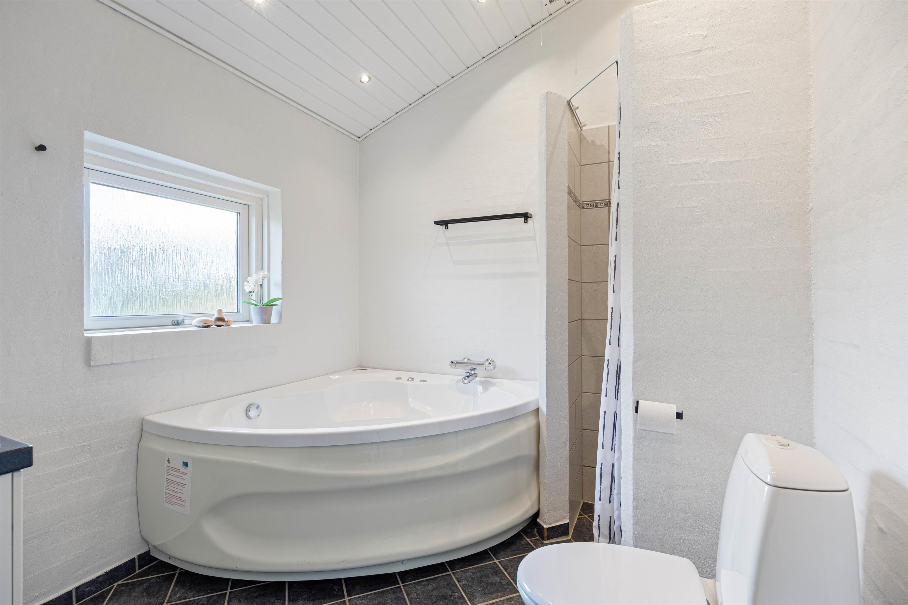 Sommerhuset er udstyret med to badeværelser, som bestemt er praktisk, hvis I er 6 personer af sted. I det store badeværelse finder I saunaen og spabadet, her kan familien slappe af og nyde det sammen, efter en dejlig dag på stranden. Rene håndklæder er garanteret gennem den kombinerede vaskemaskine og tørretumbler.