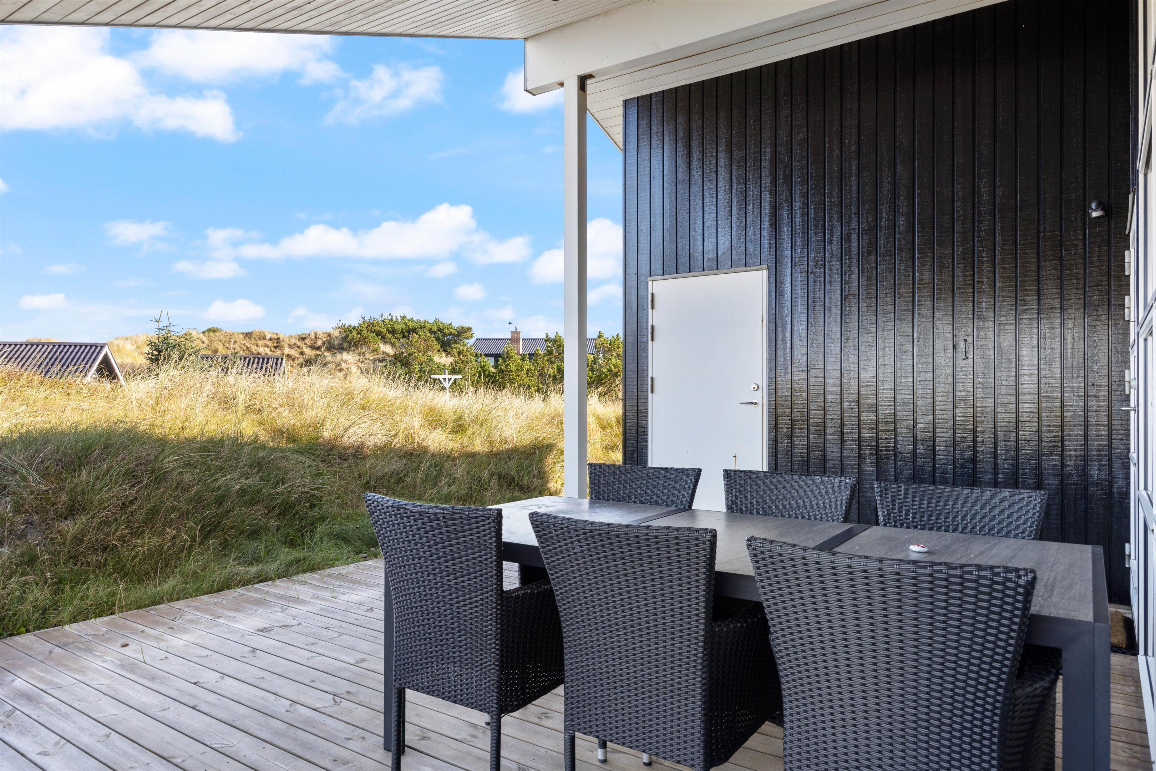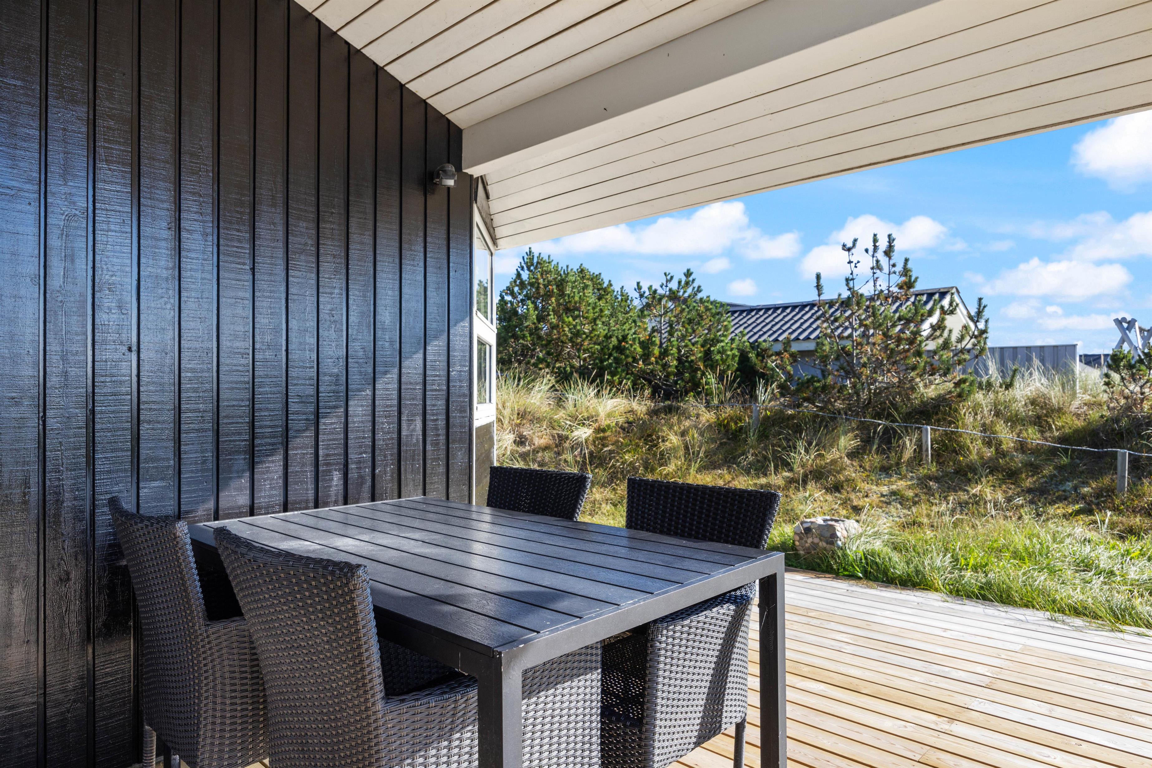 Sommerhuset har overdækket og delvist afskærmet terrasse, hvor I har god mulighed for at nyde de dejlige solskinsdage. I det gode vejr kan I også planlægge en udflugt til stranden, som kun ligger 500 meter væk fra huset og hurtigt kan nås til fods. Her kan børnene få lov at lege i sandet, mens I nyder de flotte omgivelser og vejret.