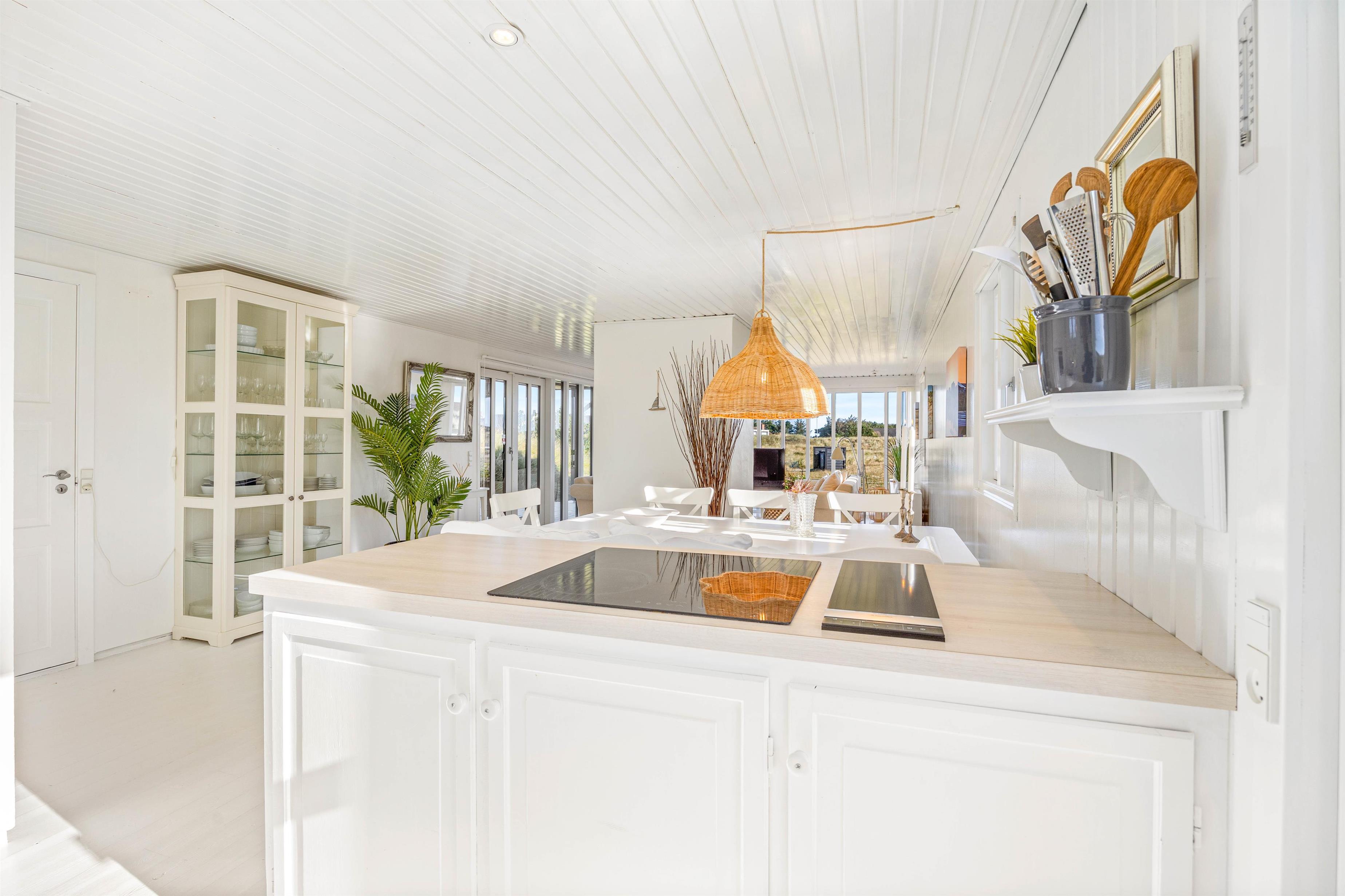 Sommerhuset er renoveret i 2025 og strækker sig over 90m2, så der er god plads til at nyde jeres ferie. Køkkenet er fuldt udstyret til den ivrige madentusiast, med bl.a. induktionskomfur, opvaskemaskine og en 60 l separat fryser, der gør madlavning til en leg. Efter en lækker middag kan I sætte jer til rette foran den knitrende brændeovn i stuen, eller I kan nyde den friske luft og arrangere en grillaften på den overdækkede terrasse. Sommerhuset er udstyret med en luft til luft varmepumpe, der sikrer en behagelig temperatur året rundt.