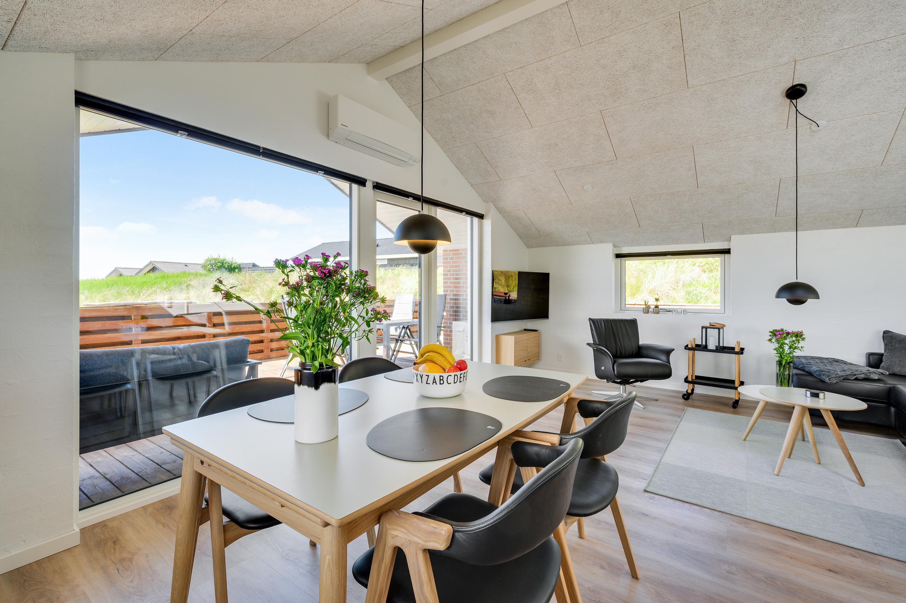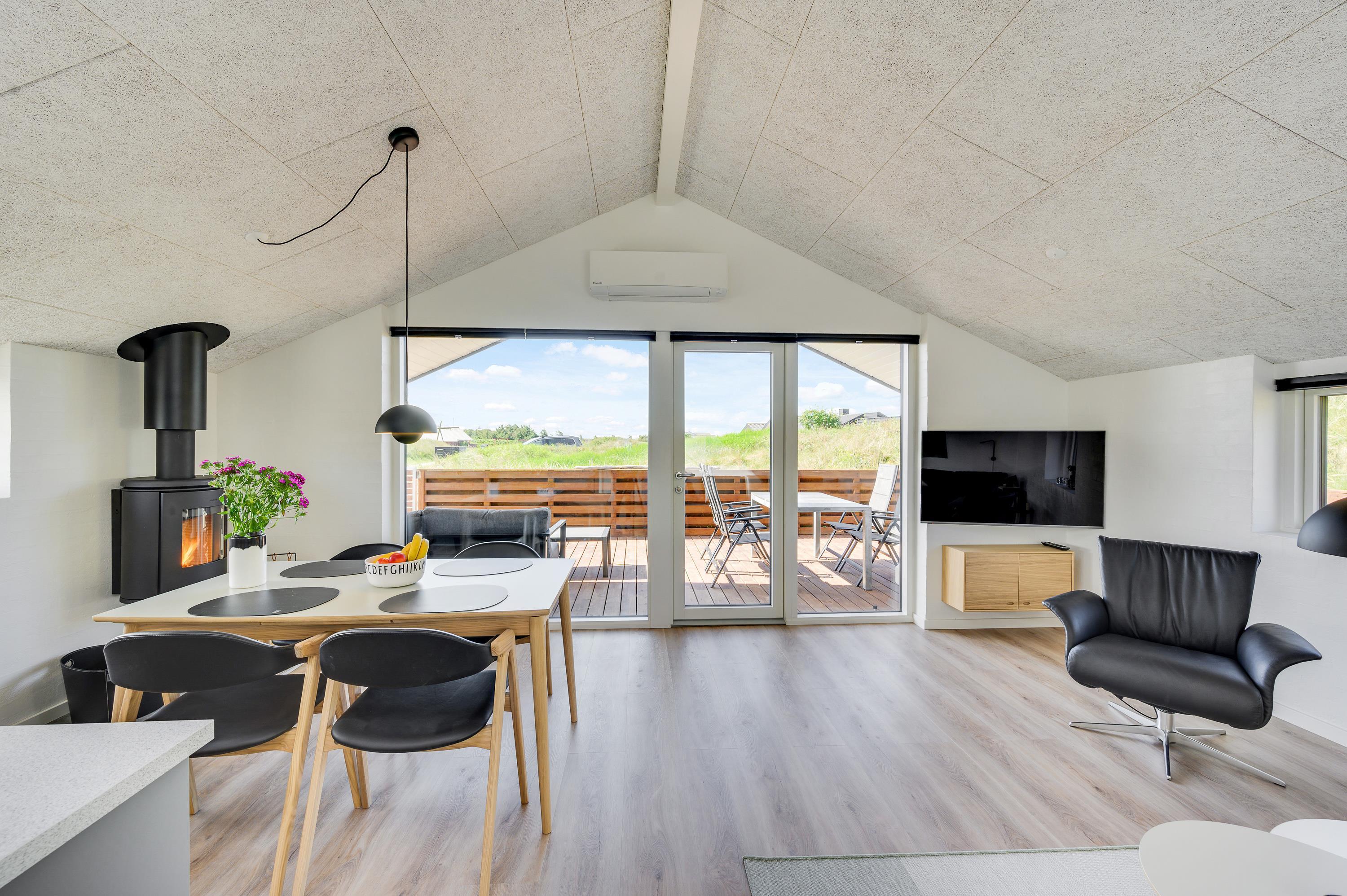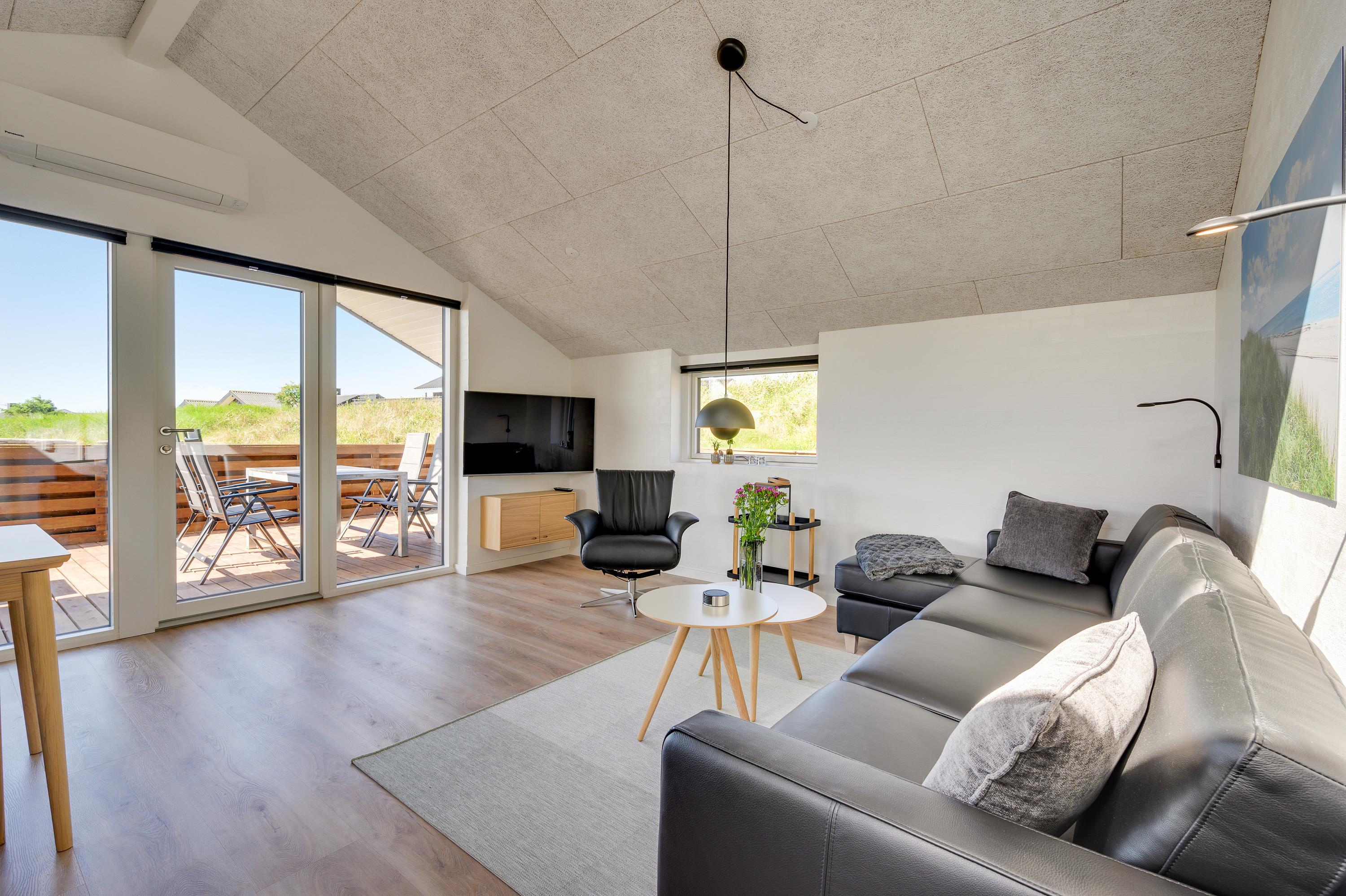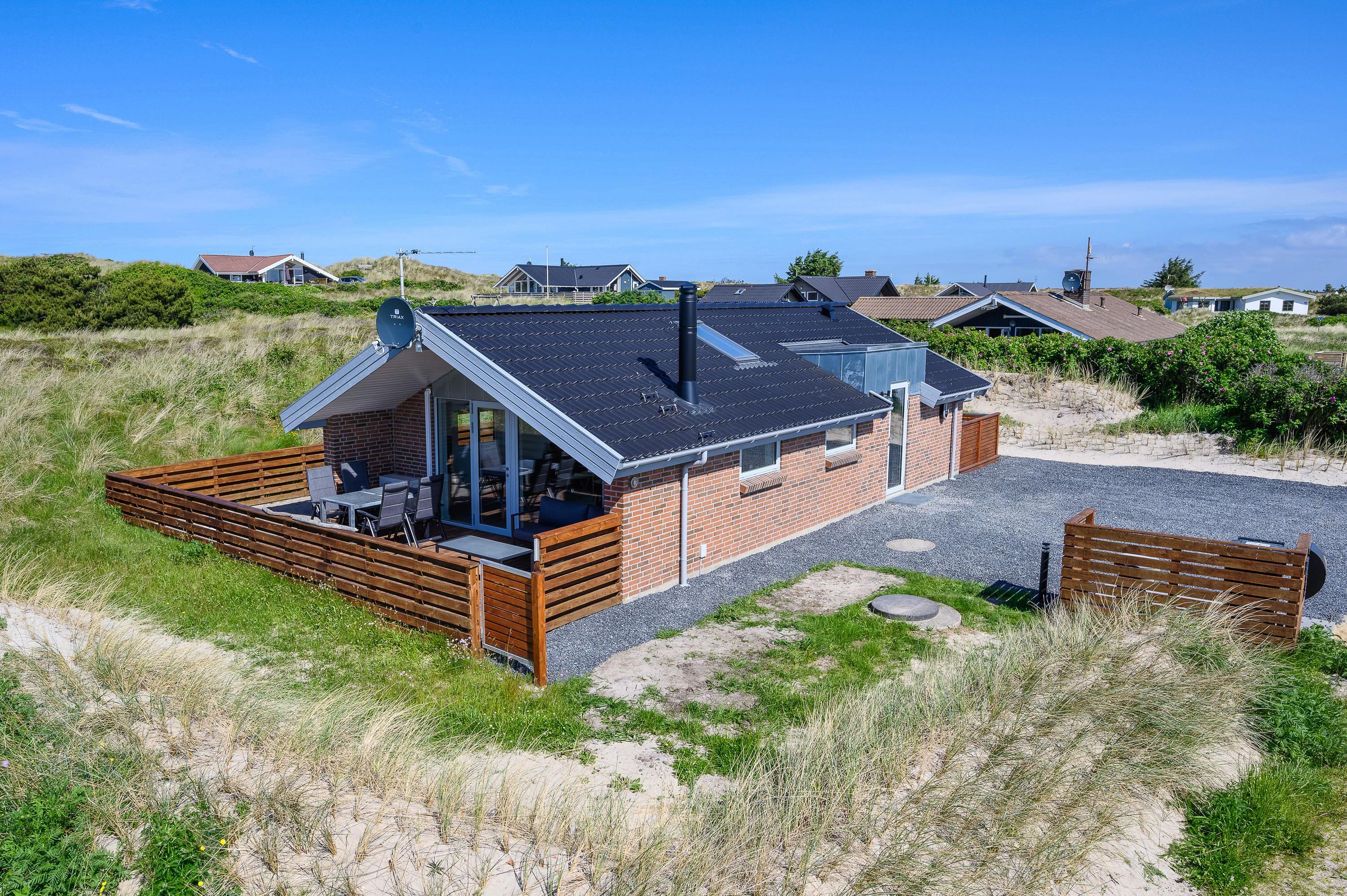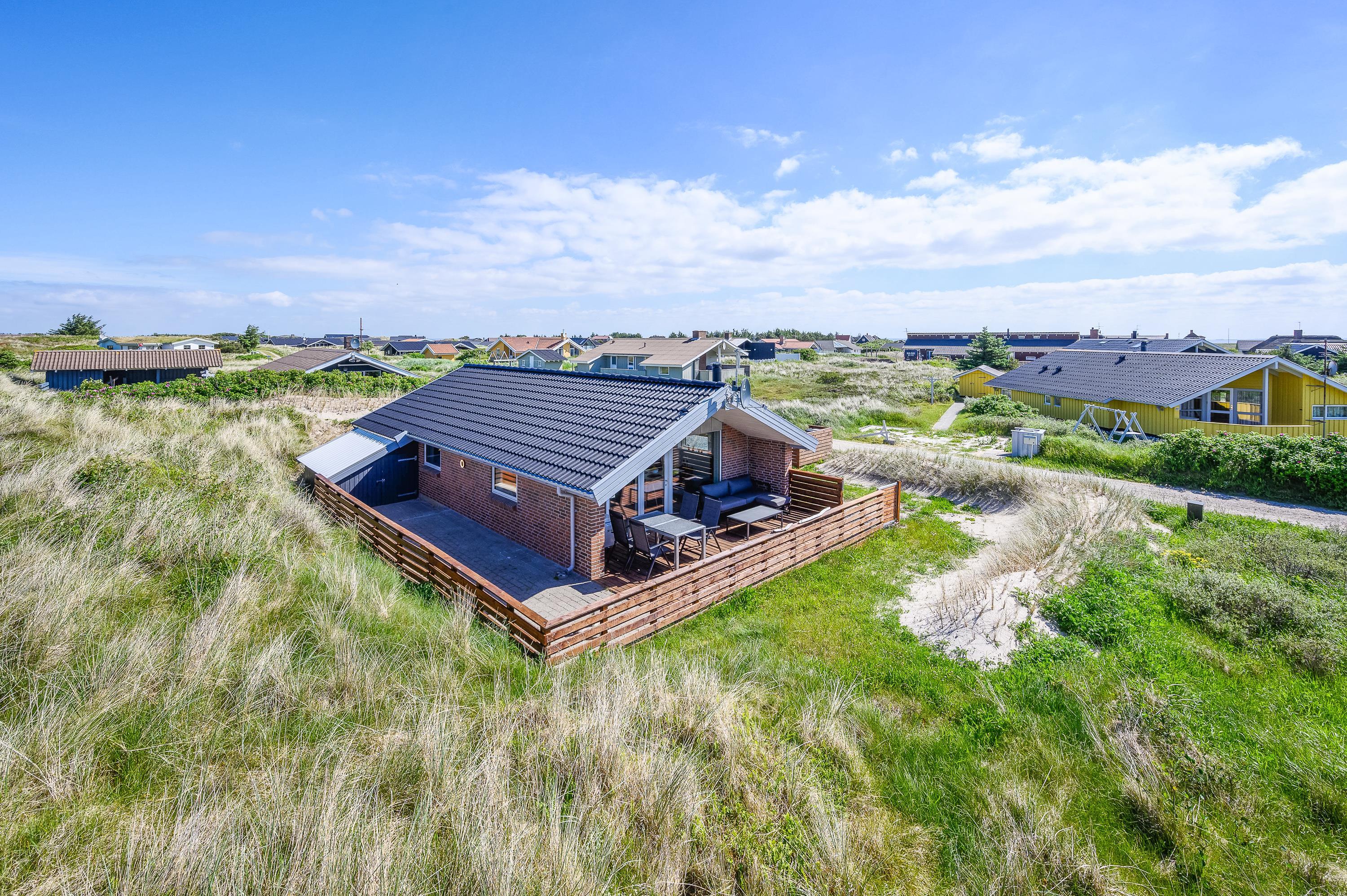 Sommerhuset på Vesterledvej 52 har en god beliggenhed i rolige omgivelser nær stranden, så I kan nyde en afslappende ferie med gåture langs vandkanten og grillaftener på terrassen. Den hyggelige havneby, Hvide Sande, hvor I både kan shoppe, fiske og dyrke forskellige former for vandsport, ligger ikke langt derfra.