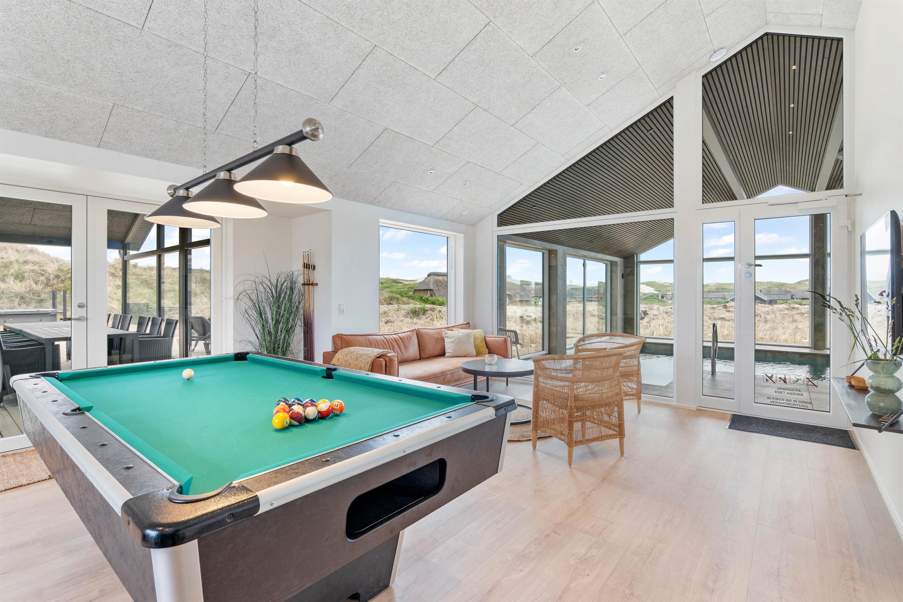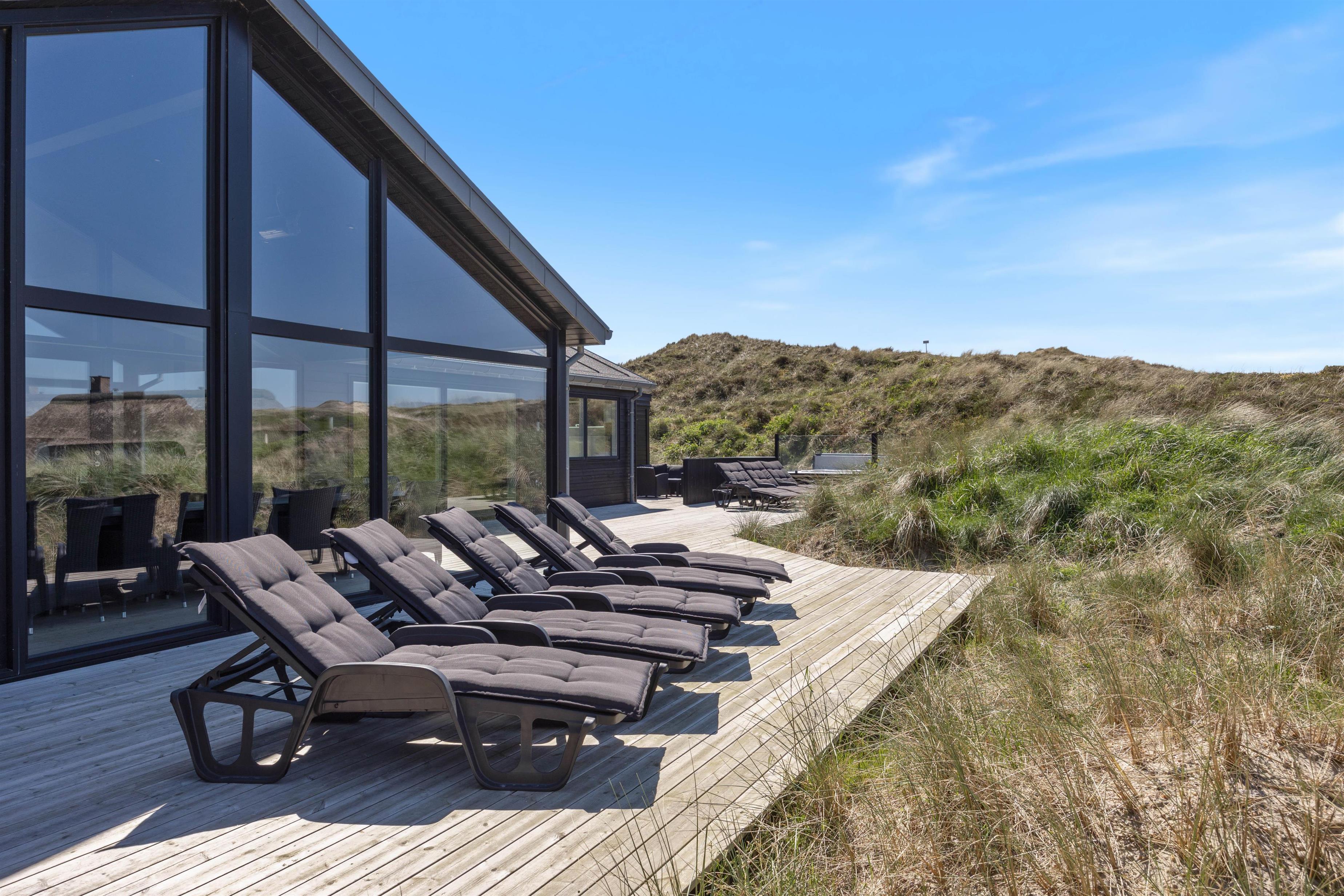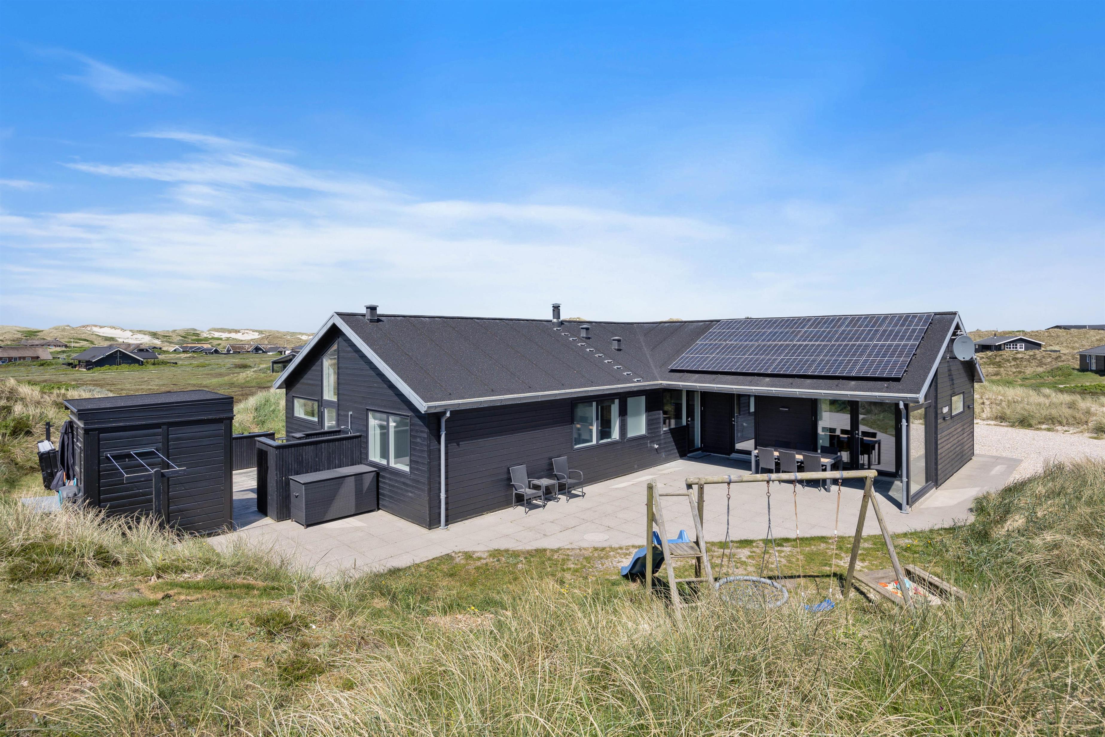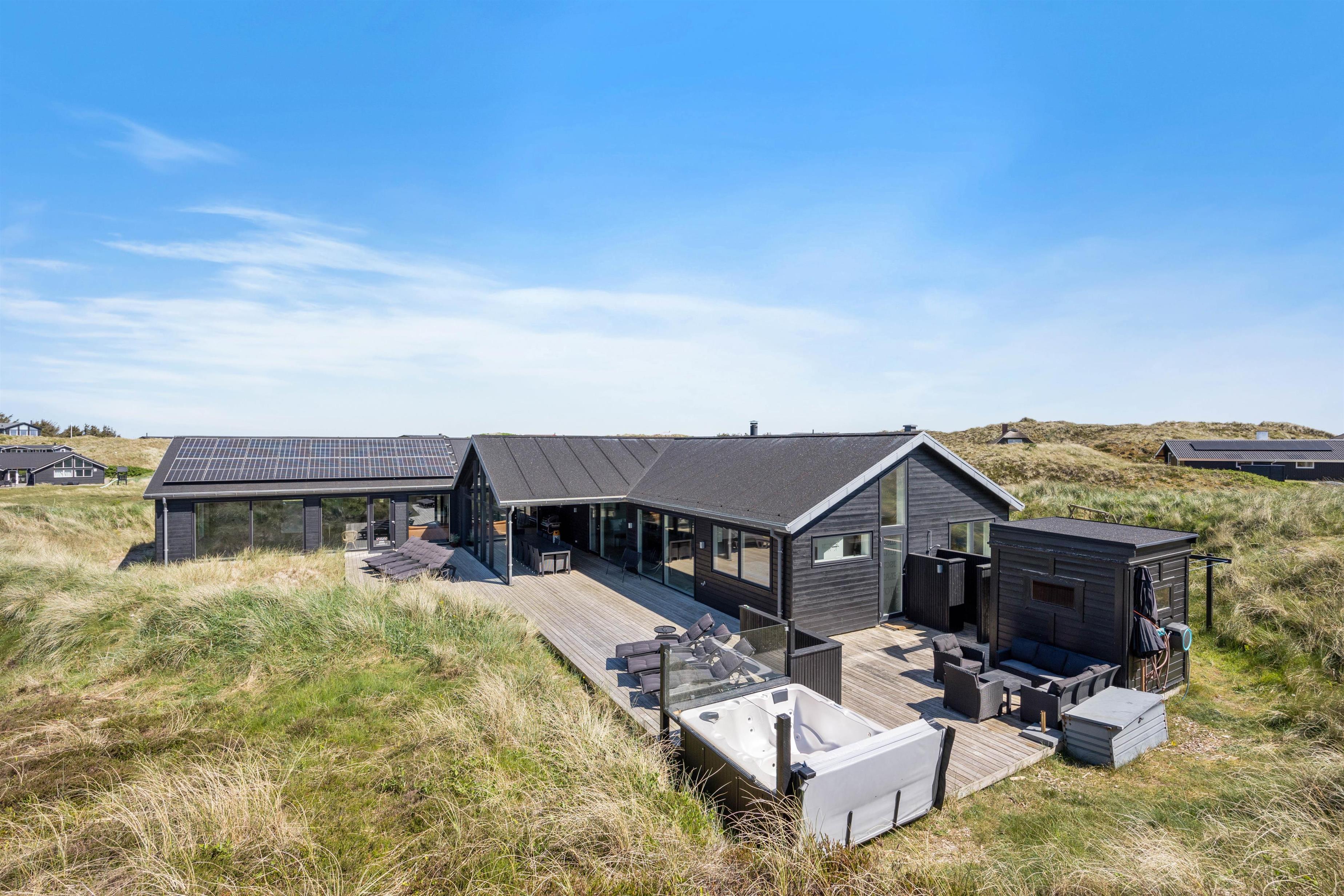 Dette feriehus er med i den absolutte topklasse af luksushuse – og det er med god grund! Her er bl.a. en stor pool, hvor børn og barnlige sjæle kan slå sig løs. Og er du mere til ro og afslapning, kan du nyde udsigten til klitterne på terrasserne - eller tage et skyl under feriehusets udendørs bruser efterfulgt af en tur i udespaen. Alt imens din el bil bliver ladet ved husets ladestander.