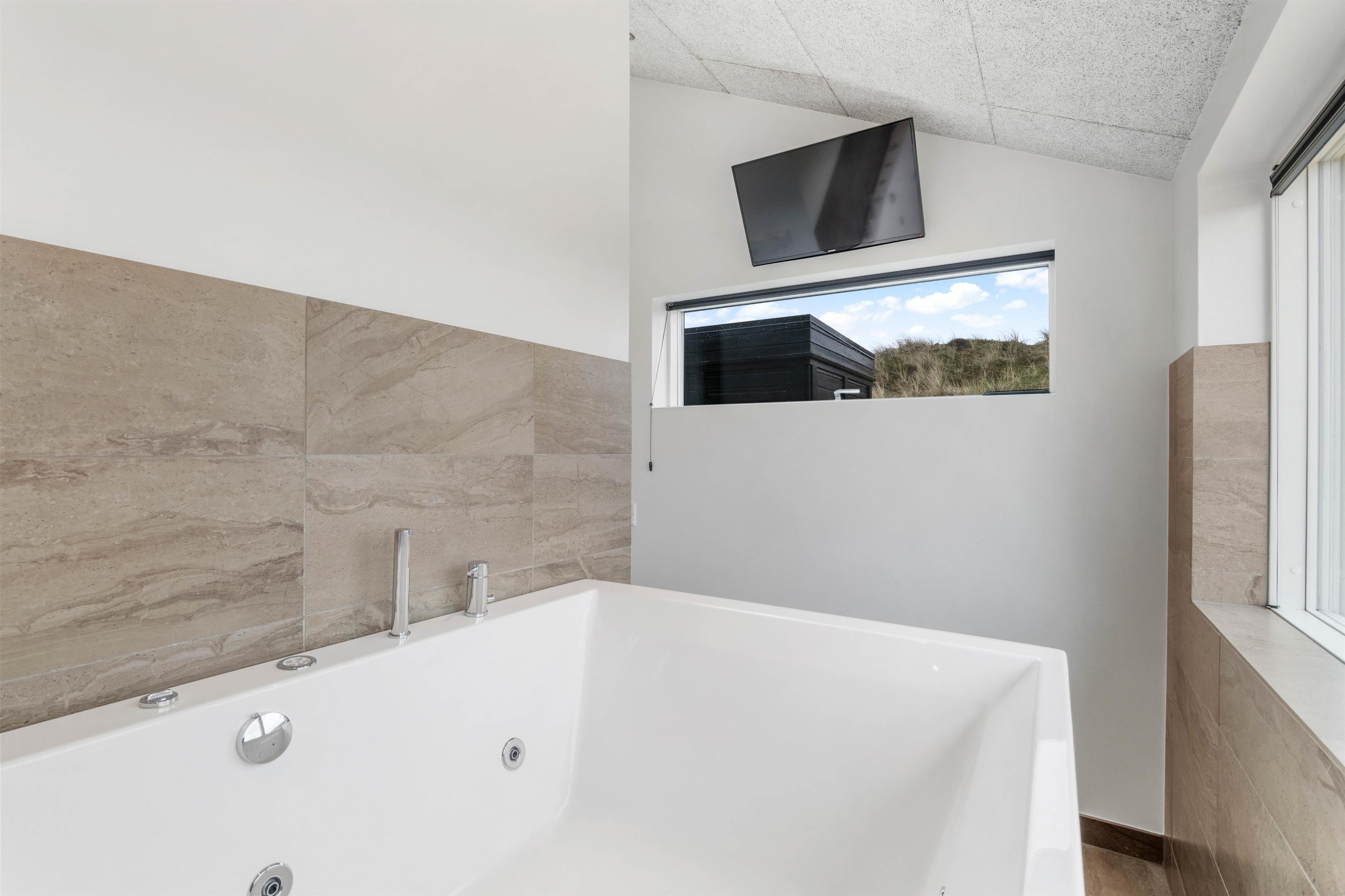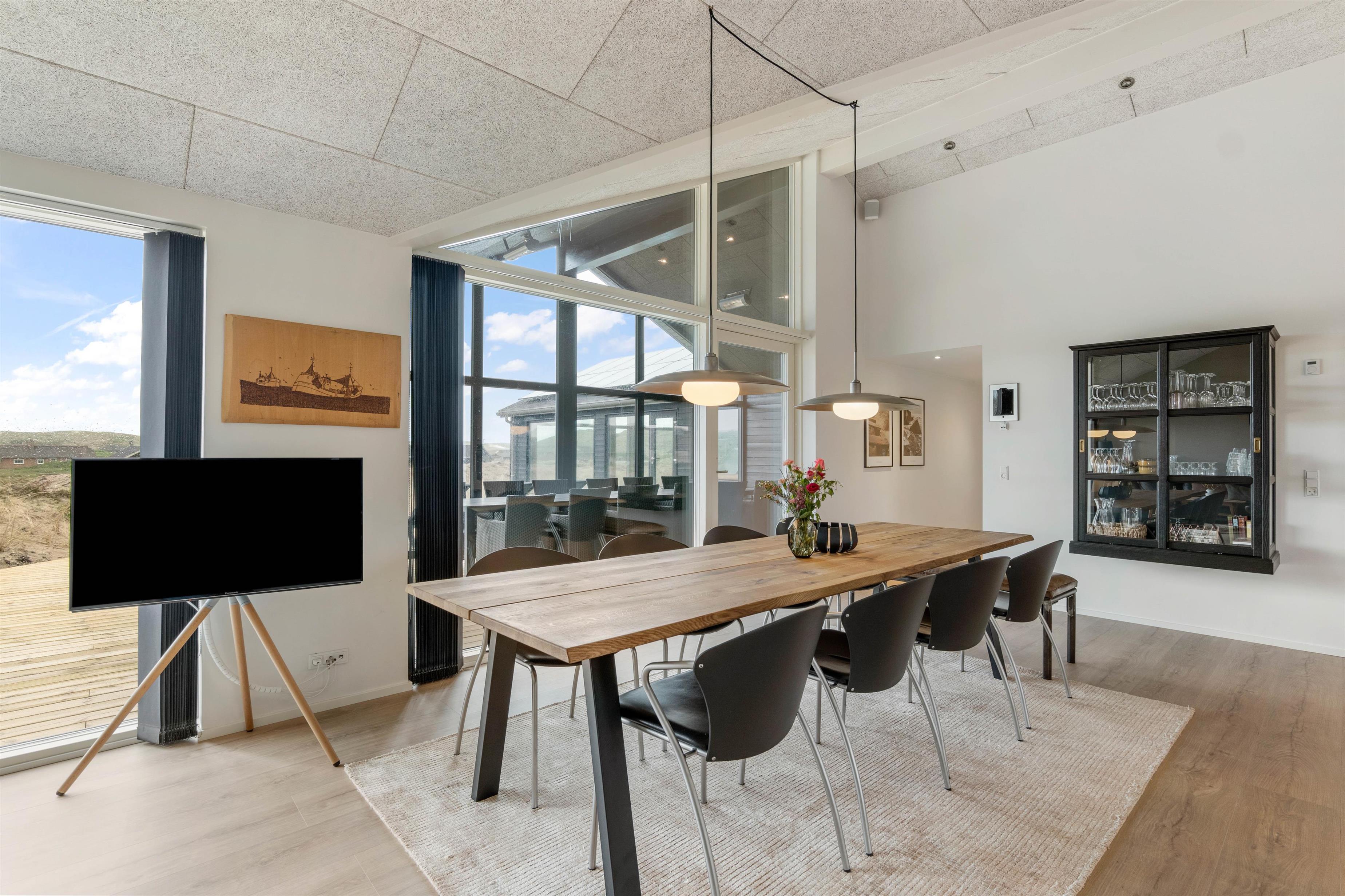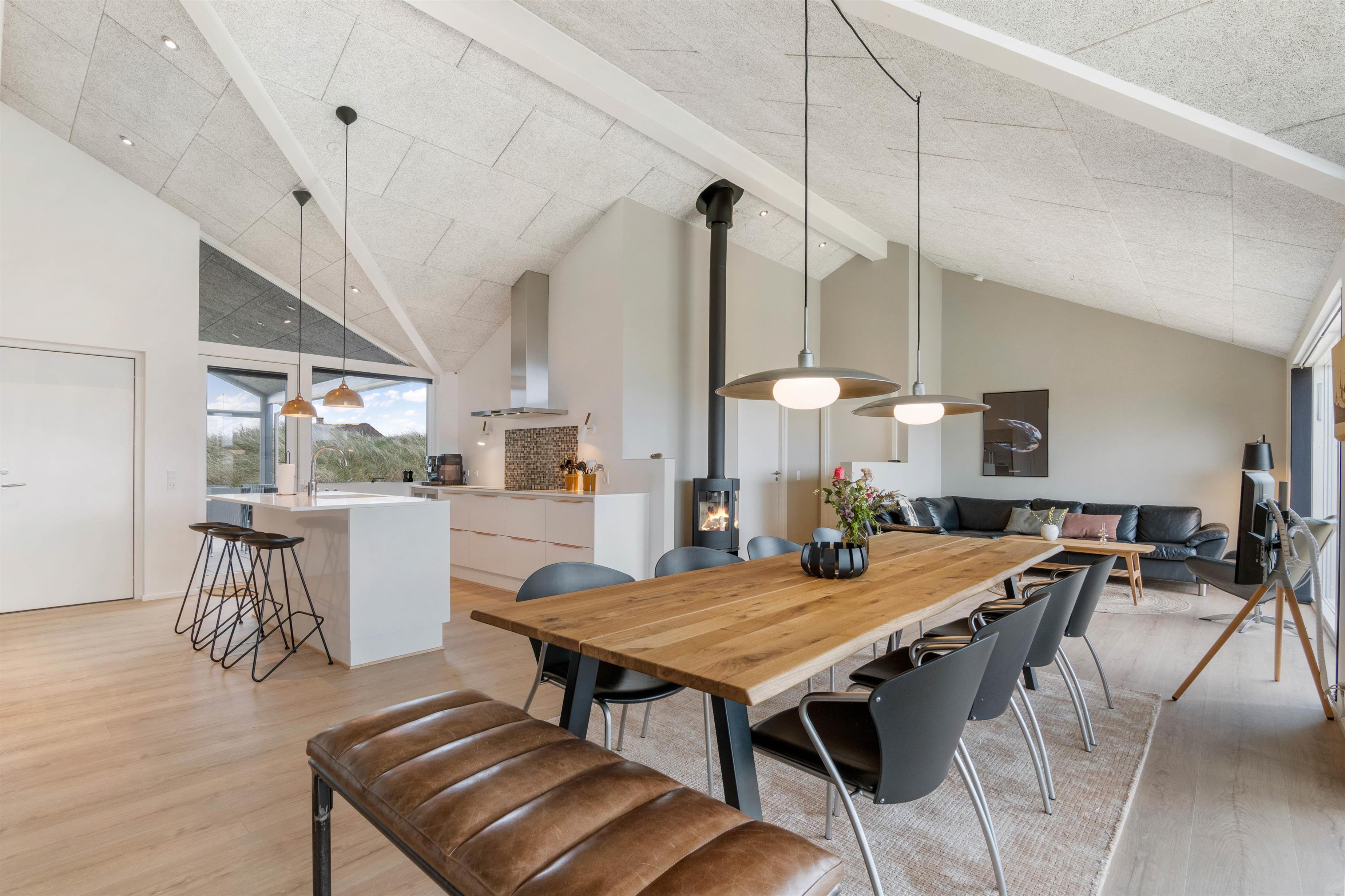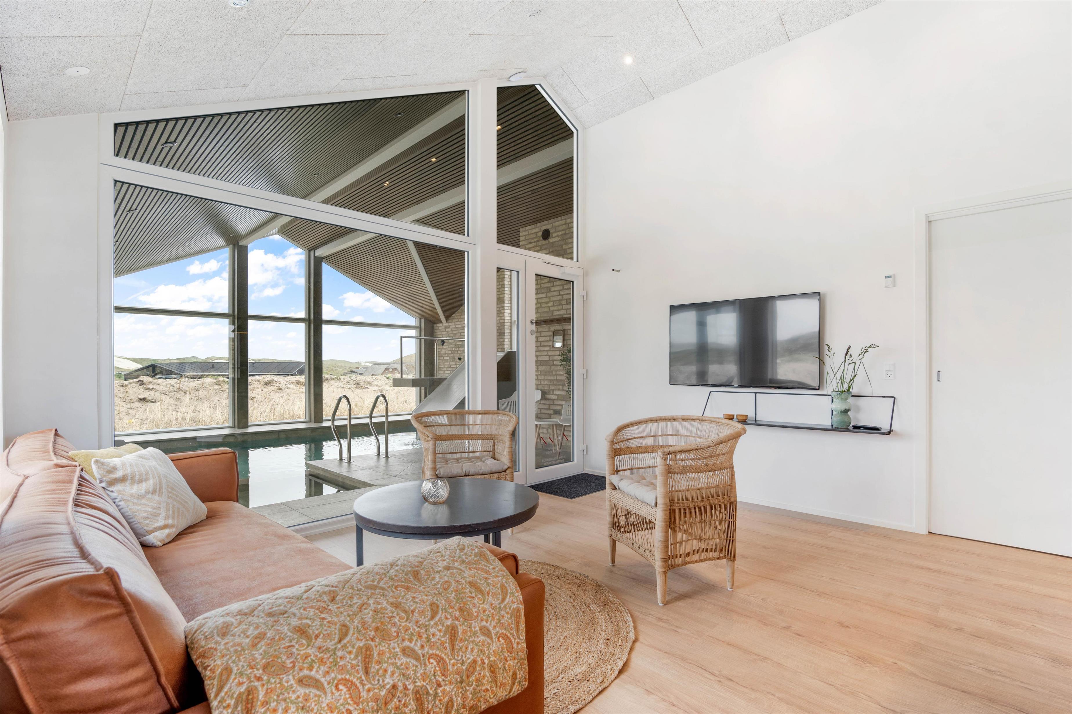 Dette feriehus er med i den absolutte topklasse af luksushuse – og det er med god grund! Her er bl.a. en stor pool, hvor børn og barnlige sjæle kan slå sig løs. Og er du mere til ro og afslapning, kan du nyde udsigten til klitterne på terrasserne - eller tage et skyl under feriehusets udendørs bruser efterfulgt af en tur i udespaen. Alt imens din el bil bliver ladet ved husets ladestander.
