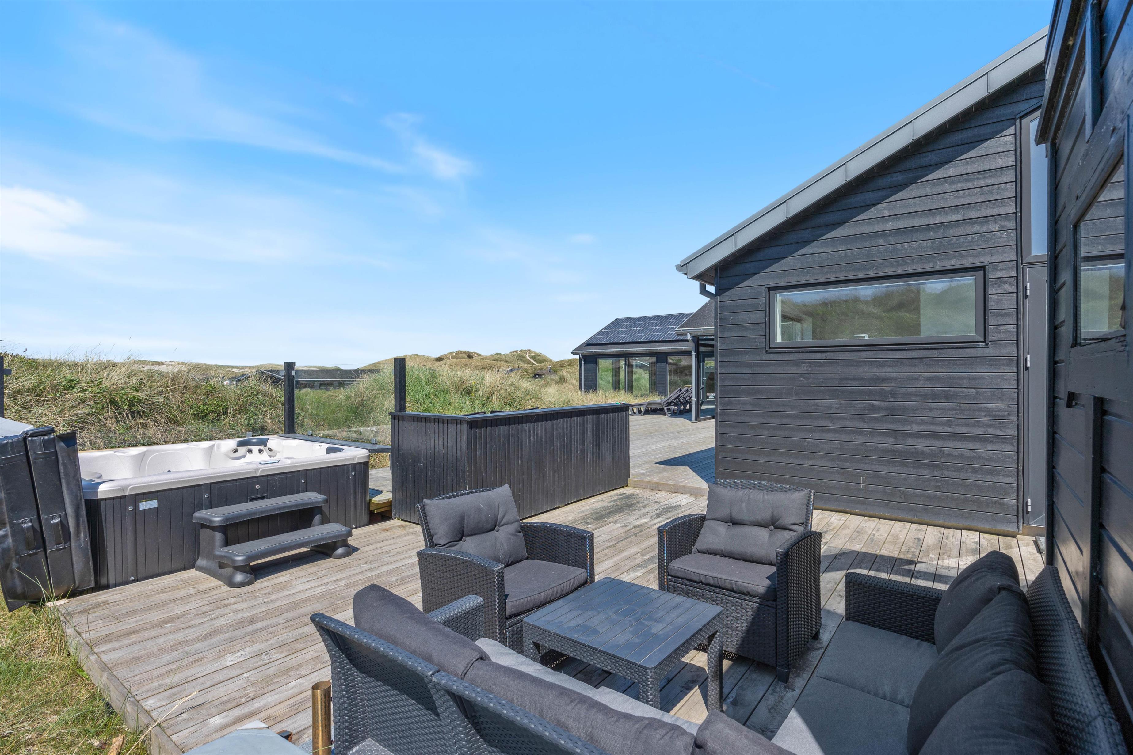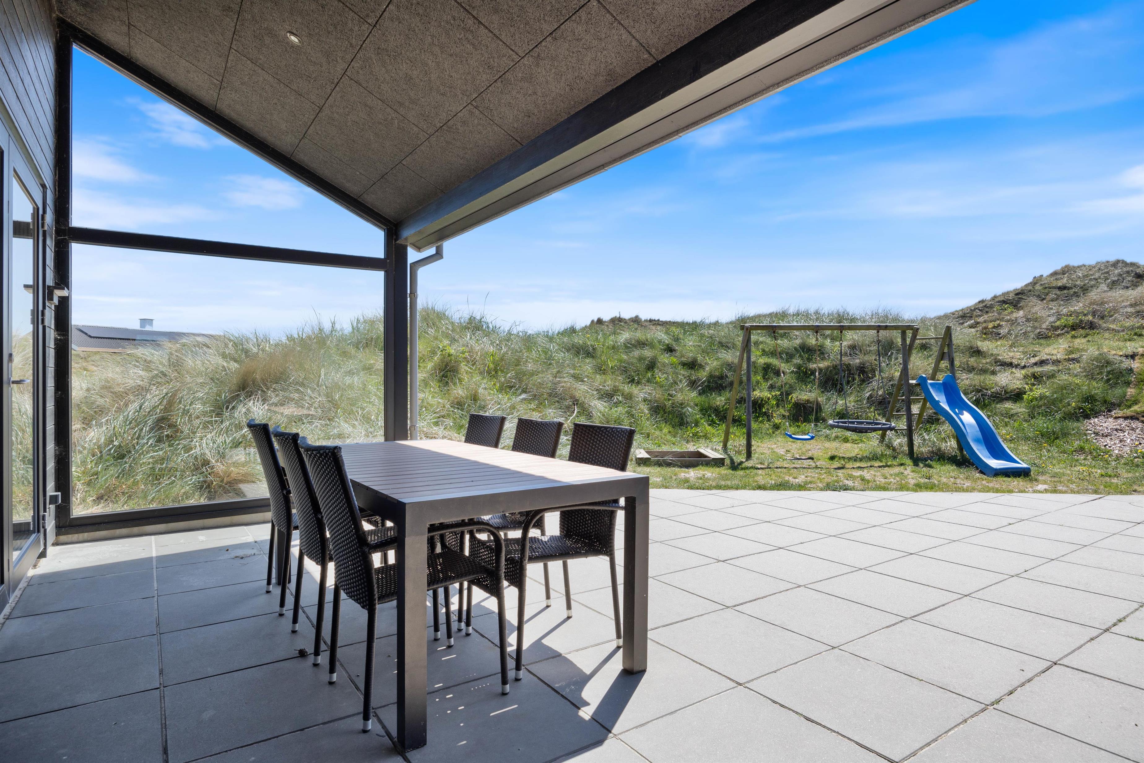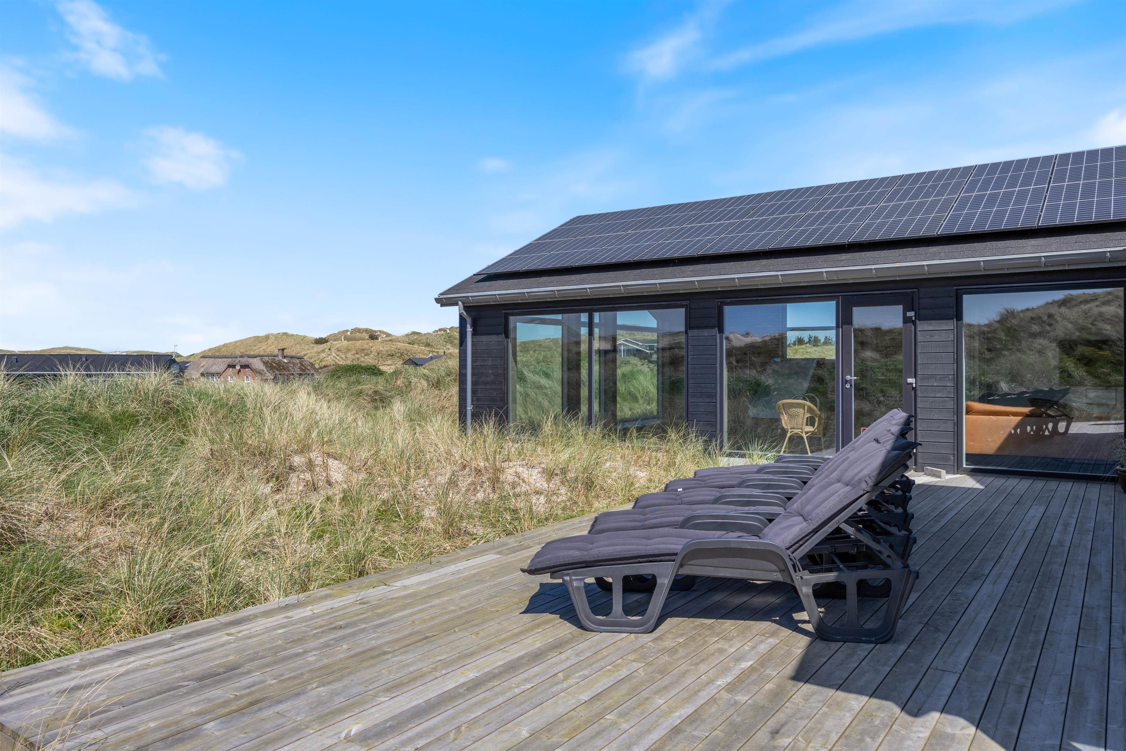 Feriehuset ligger på en flot naturgrund i kort gåafstand fra Vesterhavet og dets gode sandstrand, som indbyder til gåture og leg hele året rundt. Dermed har du også en flot udsigt til klitterne på de gode, store træterrasser, hvoraf der ligeledes er rig mulighed for at søge læ på et af de 2 overdækkede terrasser. Et flottere scenarie på de solskinsrige dage og hyggelige grillaftener findes ikke.
