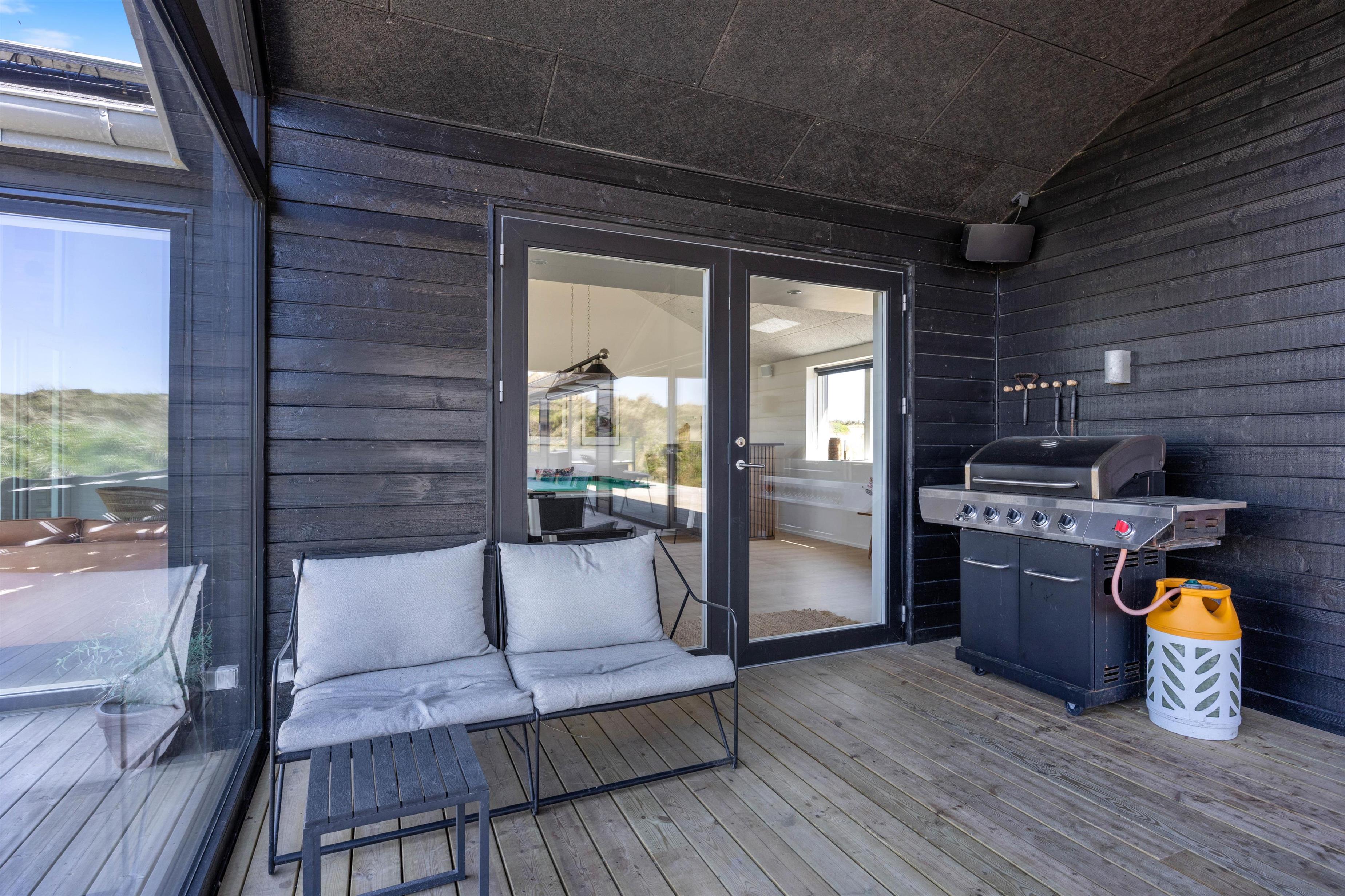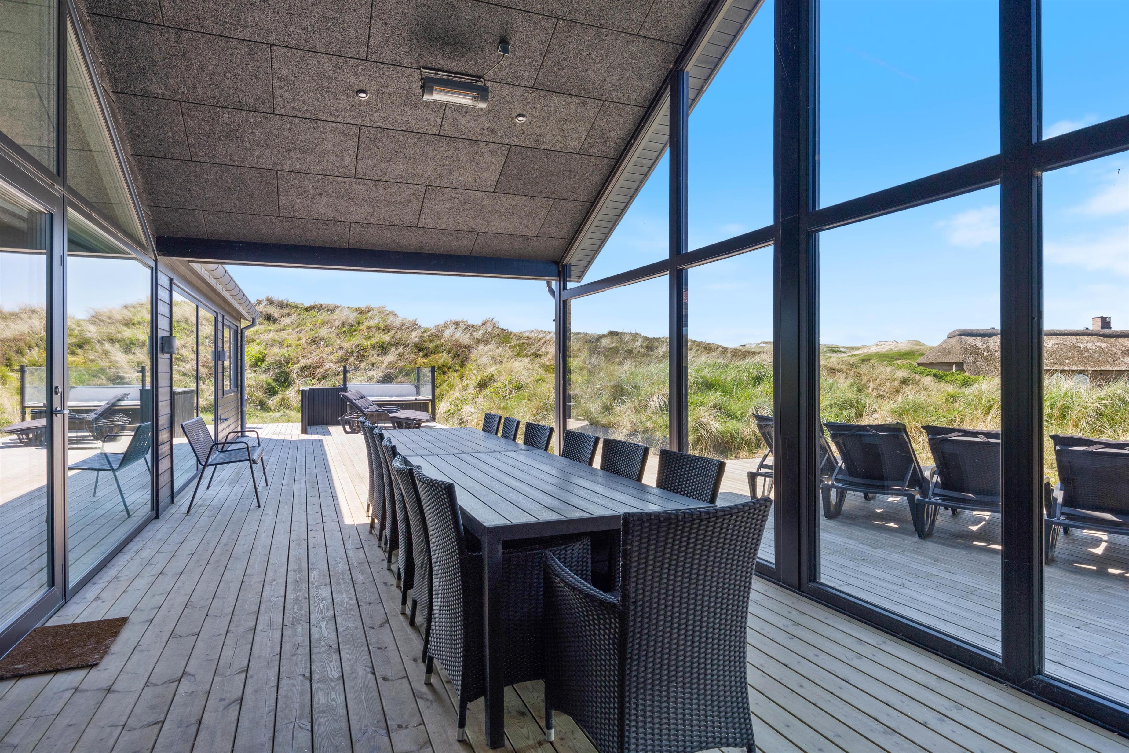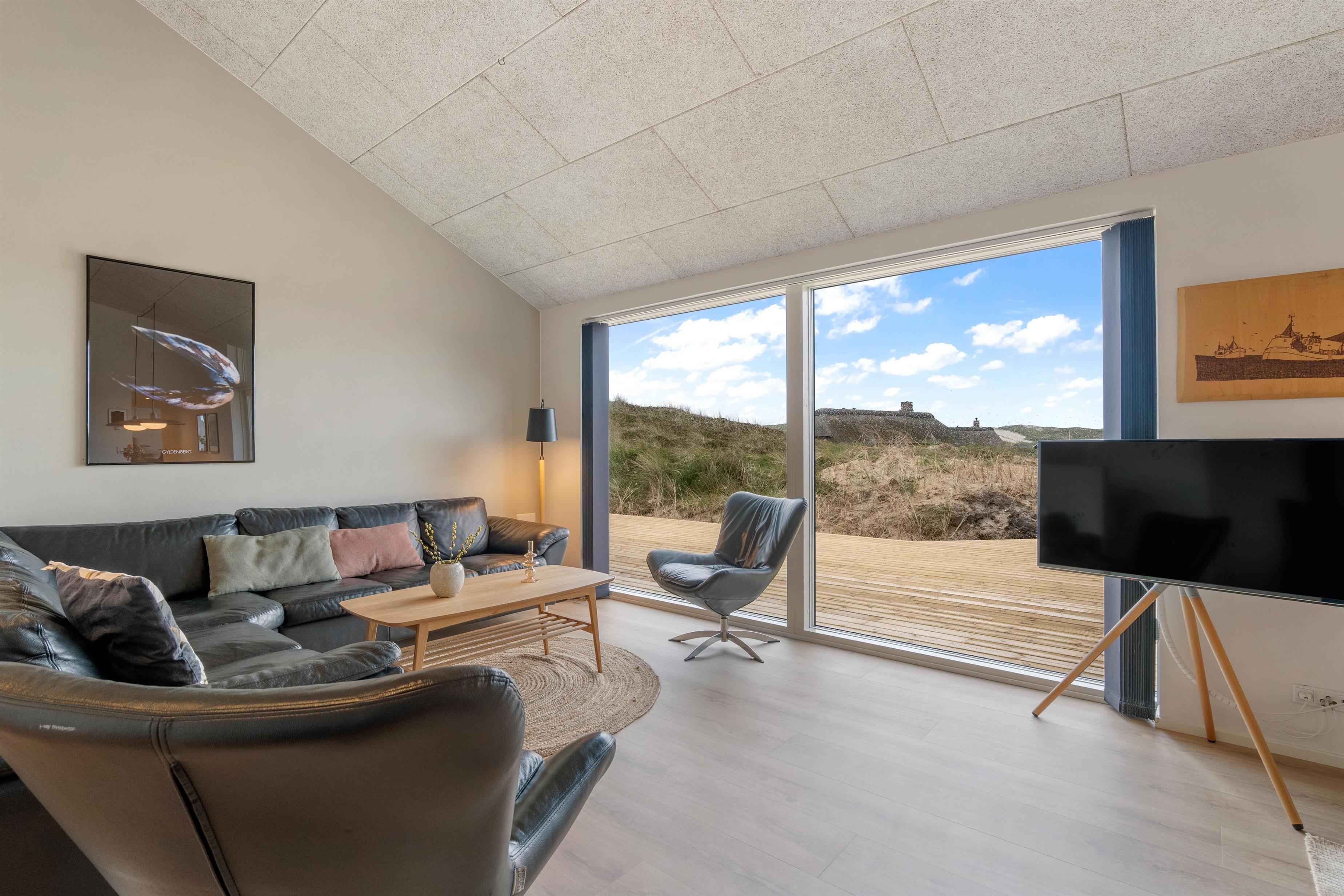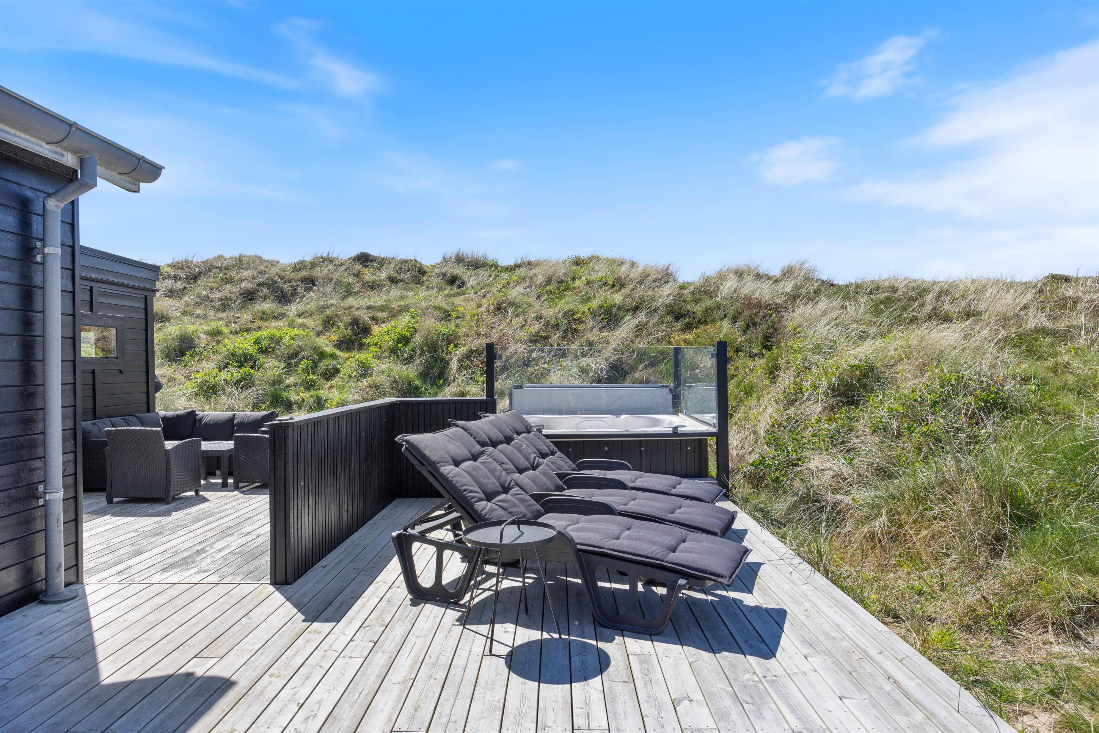 Feriehuset ligger på en flot naturgrund i kort gåafstand fra Vesterhavet og dets gode sandstrand, som indbyder til gåture og leg hele året rundt. Dermed har du også en flot udsigt til klitterne på de gode, store træterrasser, hvoraf der ligeledes er rig mulighed for at søge læ på et af de 2 overdækkede terrasser. Et flottere scenarie på de solskinsrige dage og hyggelige grillaftener findes ikke.