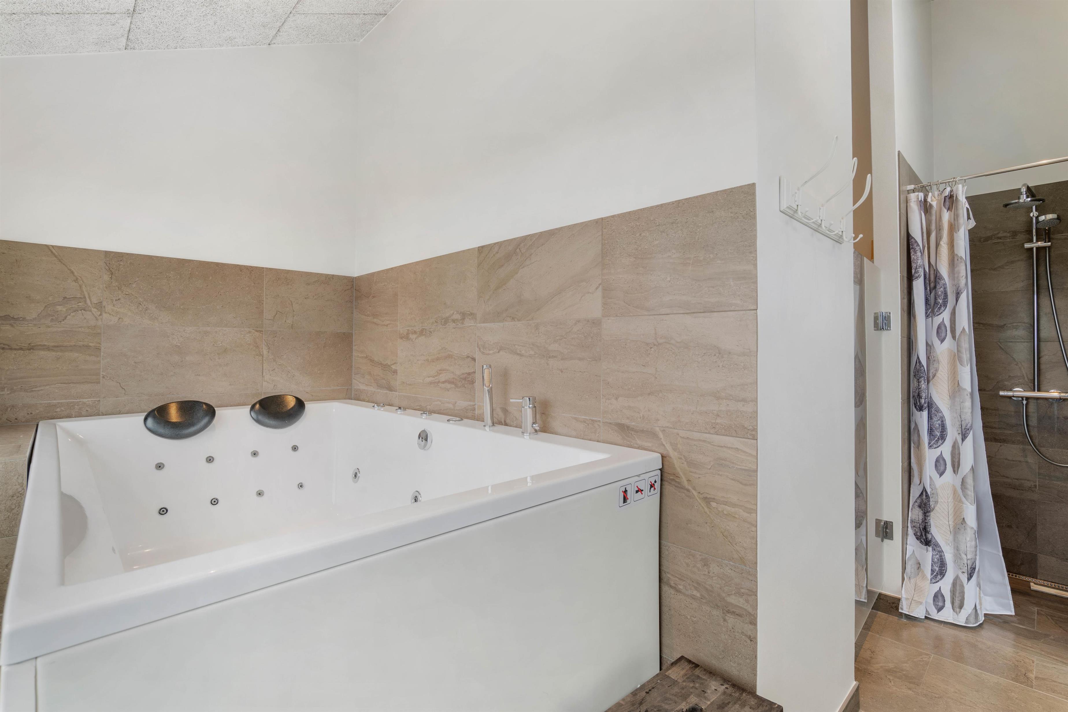 For mange feriegæster er luksus lig med wellness – og i dette feriehus er det ingen undtagelse. På det ene badeværelse indbyder spabadet til varme afslappende stunder, hvor musklerne bliver løsnet og hverdagens stress glemmes.