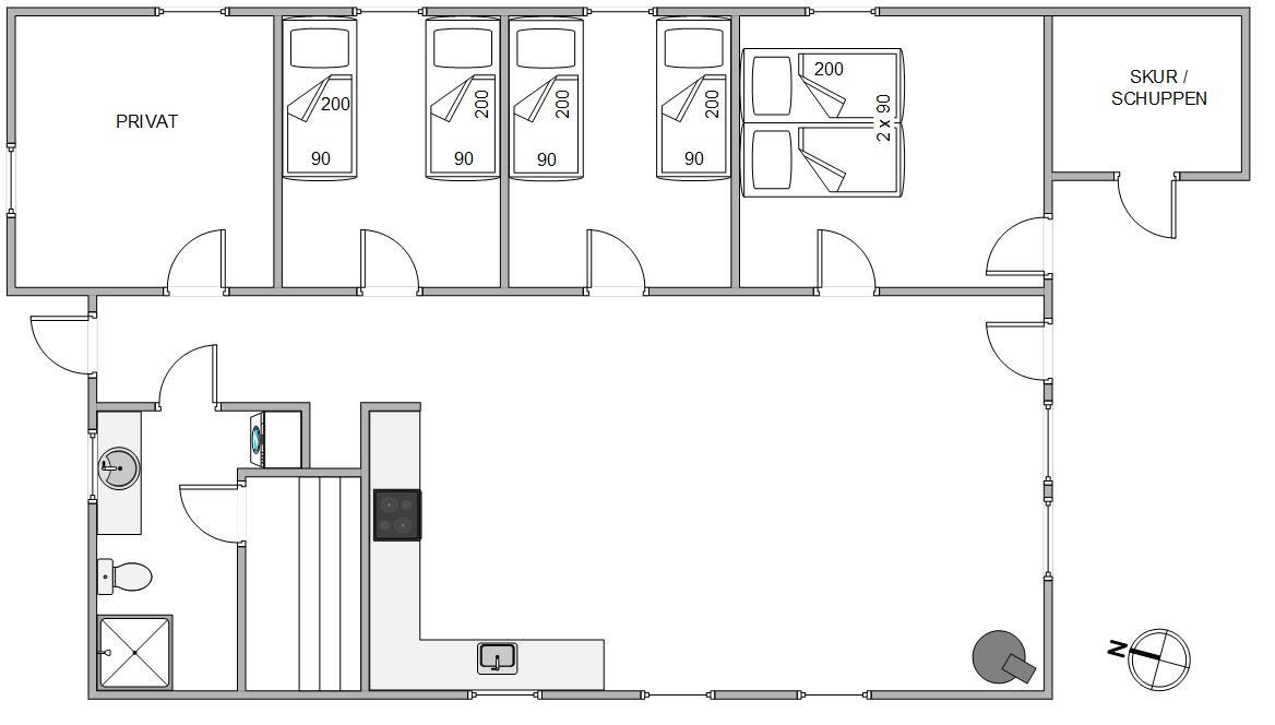 I de 3 dejlige soverum, møbleret med komfortable sovepladser i form af 1 dobbeltseng og 4 enkeltsenge, kan I indrette jer efter behov. Læg mærke til, at den friske vesterhavsluft gør noget godt for nattesøvnen.