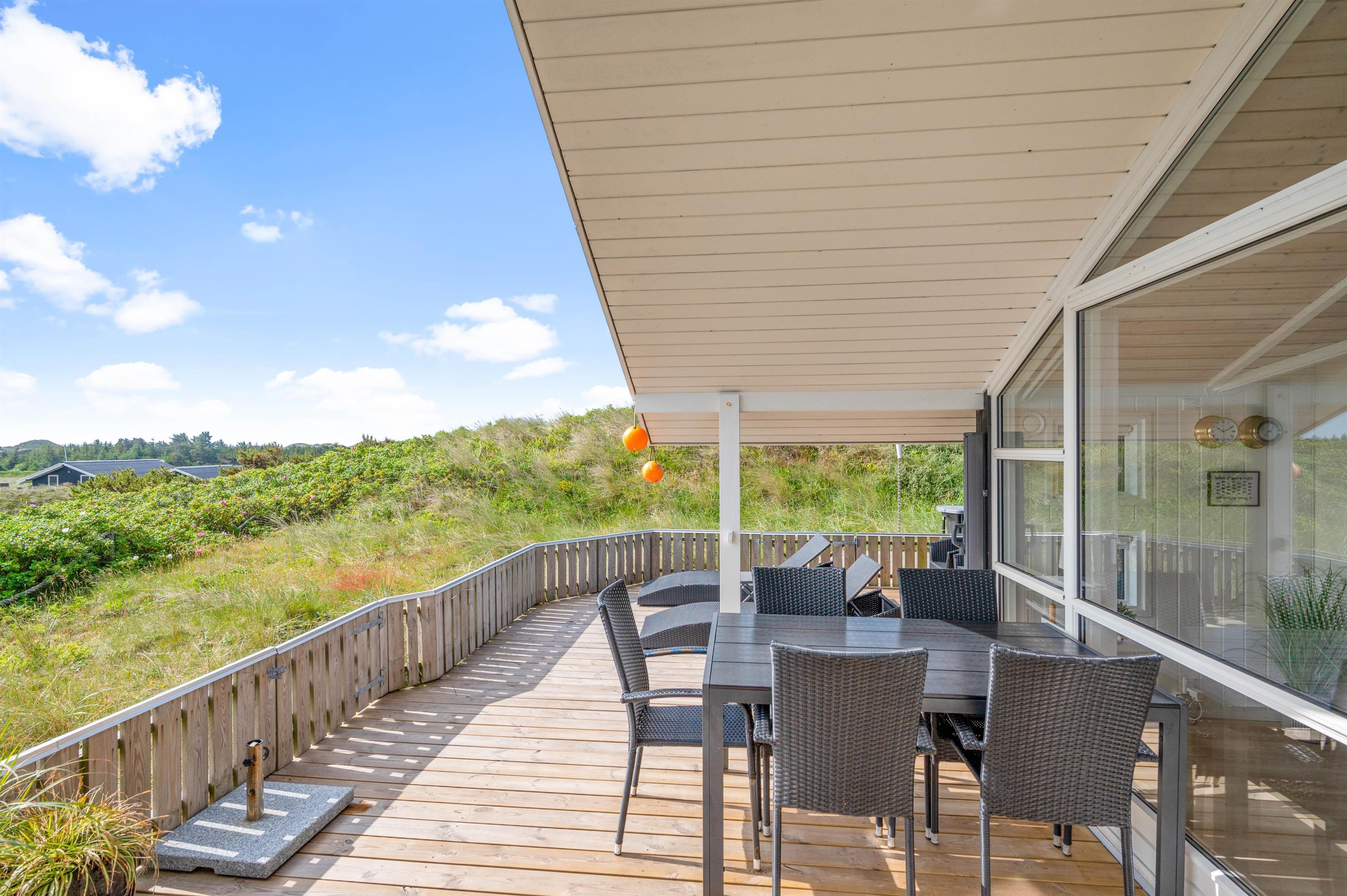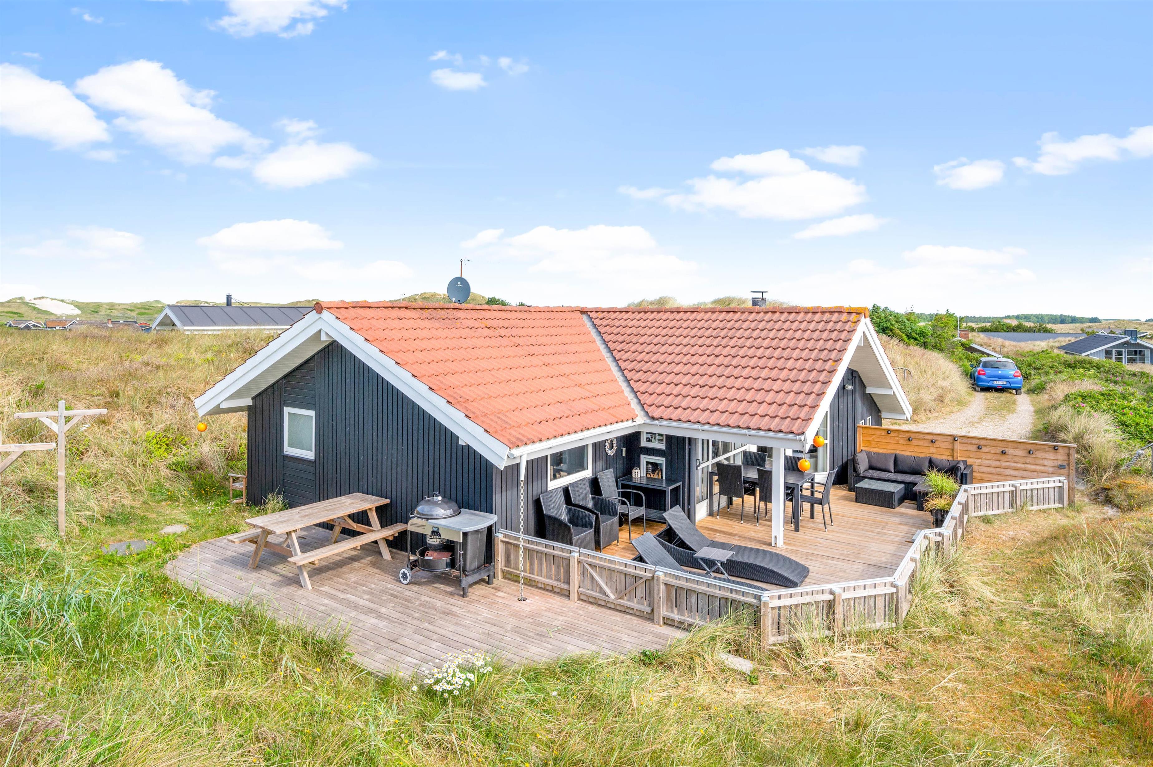 Sommerhuset ligger blot 550 meter fra Vesterhavet, som indbyder til lange gåture langs vandet. Her kan I også nyde synet af de smukke solnedgange, som kan ses fra stranden eller klitterne.