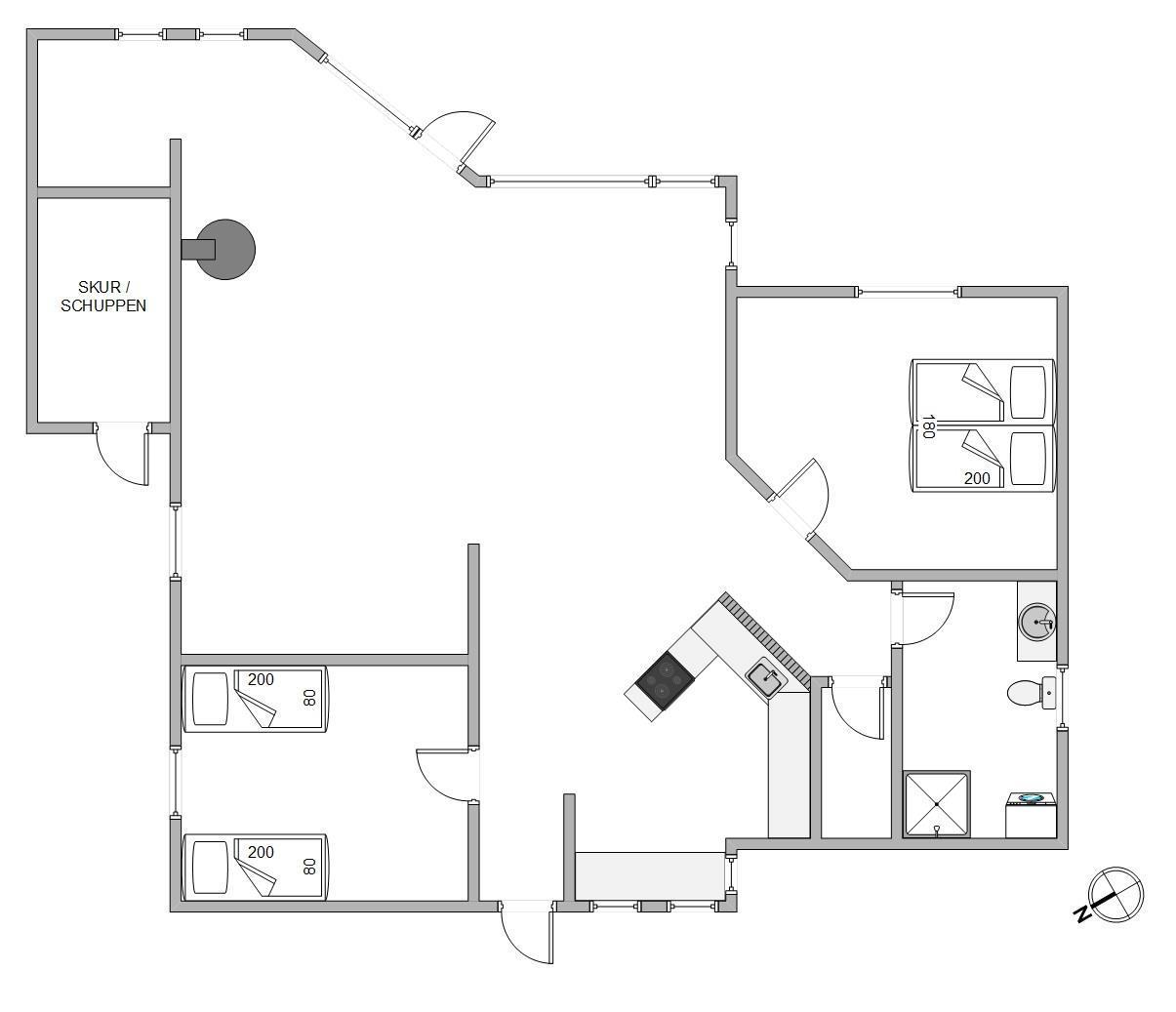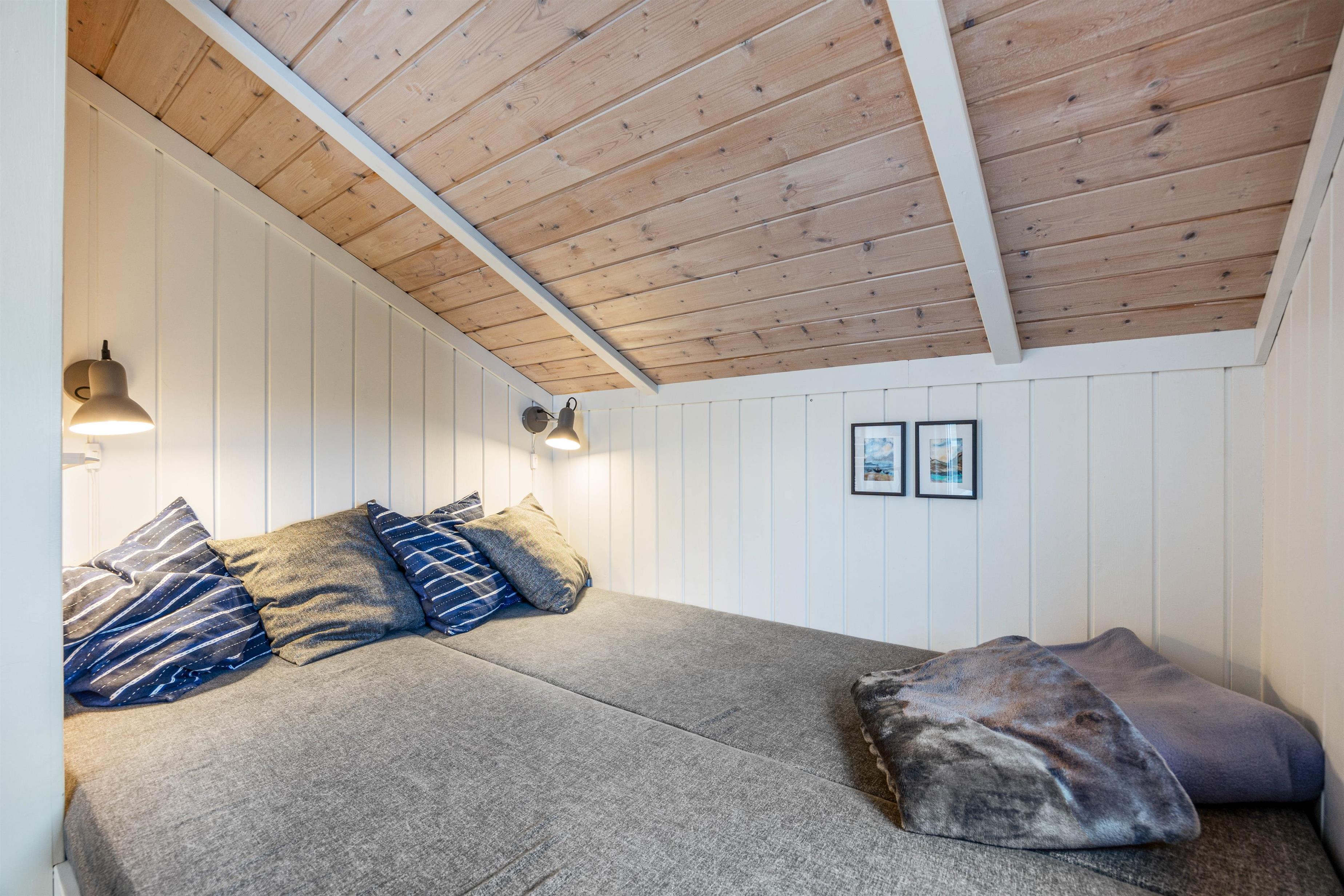 Sommerhusets fire sovepladser fordeler sig på to gode værelser. Det ene er indrettet med en dobbeltseng, mens det andet er indrettet med to enkeltsenge. På sommerhusets badeværelse er der gulvvarme, og der er desuden en vaskemaskine i feriehuset.