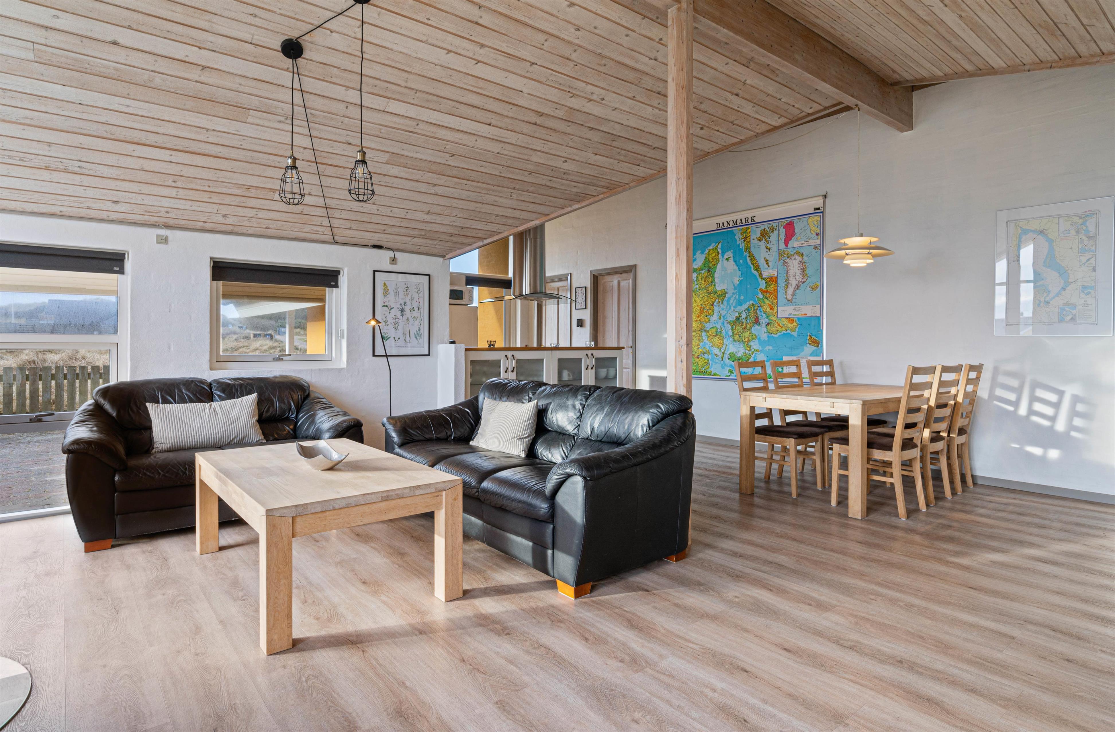 Feriehuset er lyst og rummeligt indrettet, så det fremstår indbydende til den afslappende ferie med dem, du holder allermest af. I hjertet af feriehuset har du den dejlige stue med brændeovn, spiseafdelingen og det åbne køkken, som tilsammen danner et naturligt samlingspunkt for hele familien.