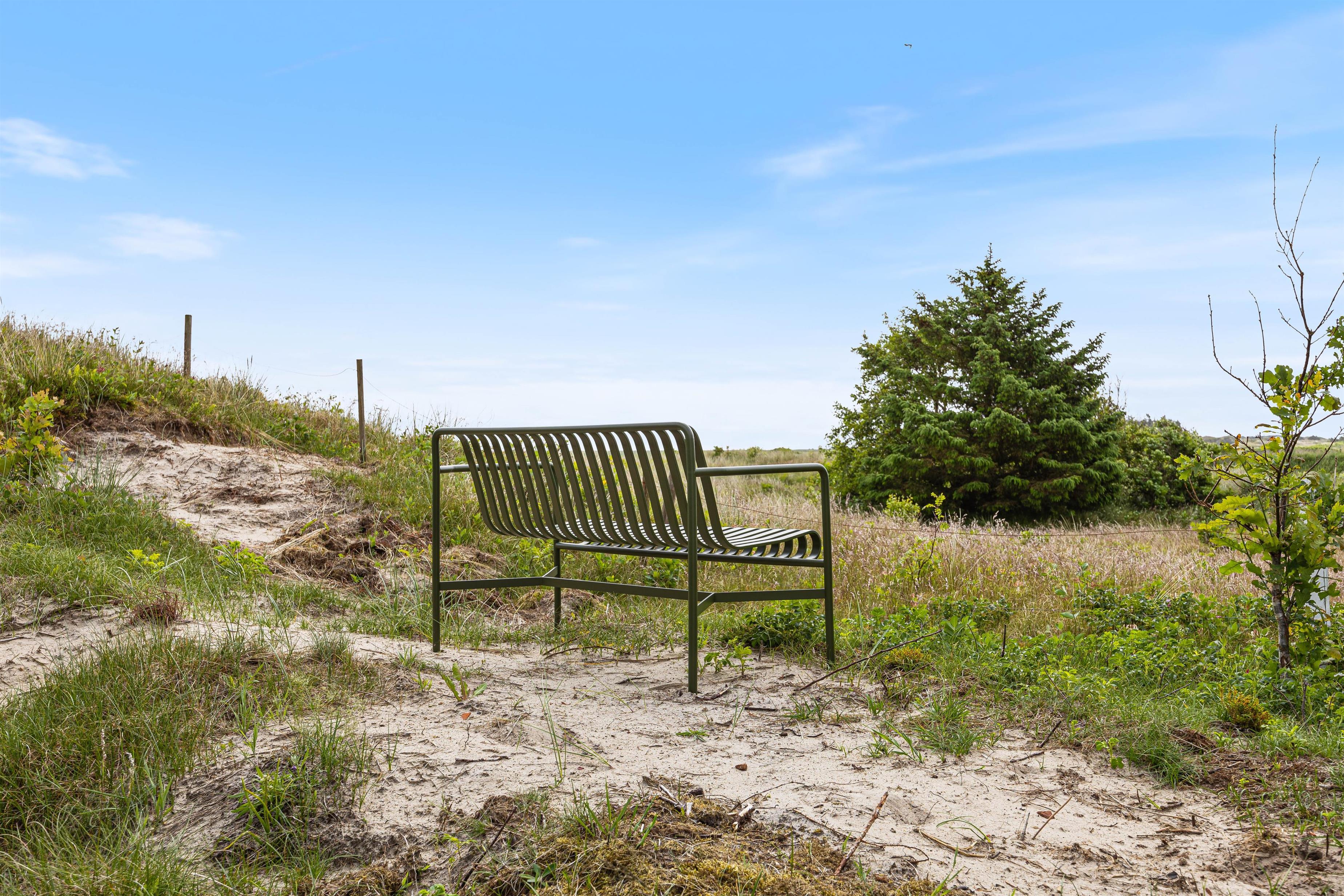 Feriehuset har en skøn beliggenhed, ganske ugeneret blandt grantræer, buske og en høj klitbanke. Der er flere skønne terrasser rundt om huset, og masser af siddekroge, så alle gæster kan finde en plads i solen og nyde den friske havluft i fred og ro.