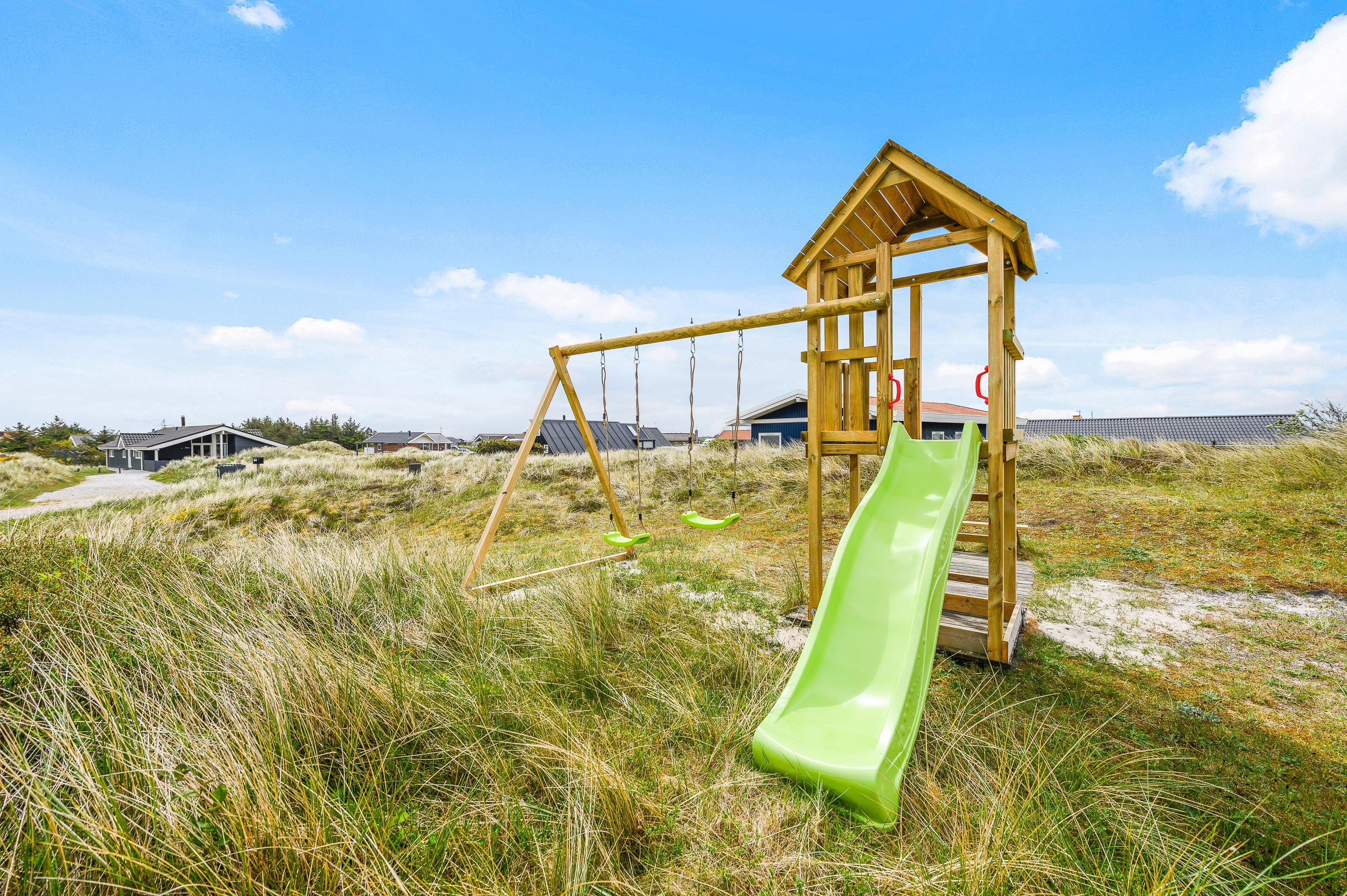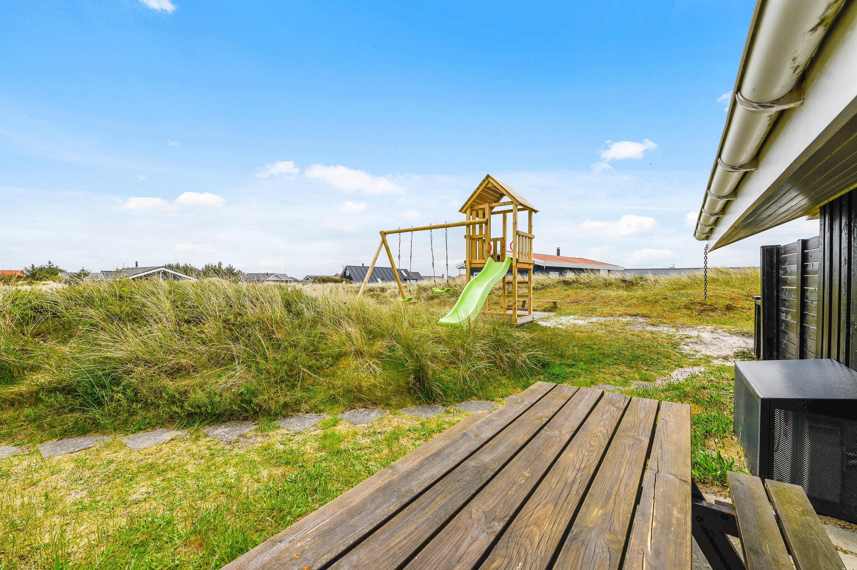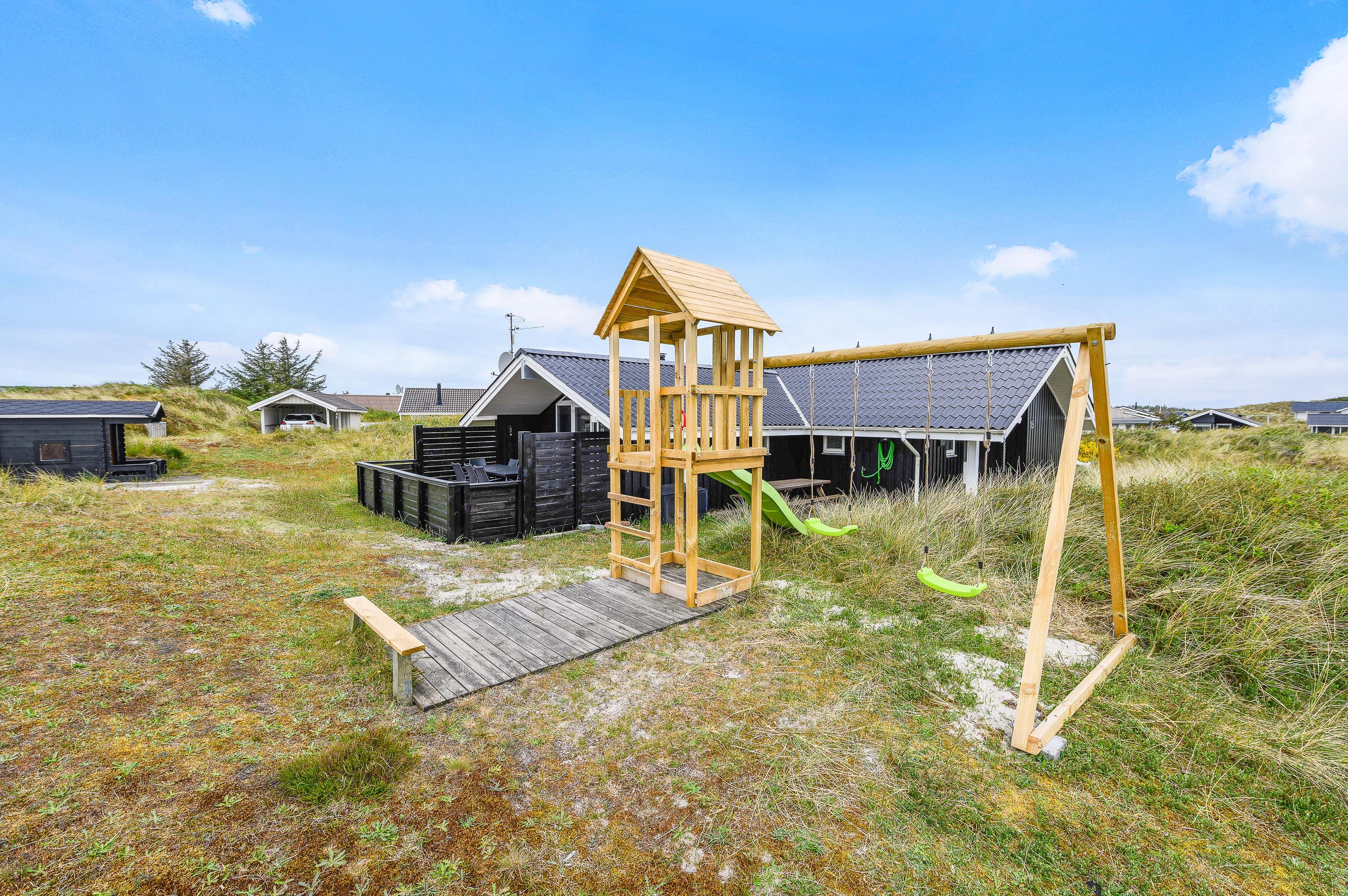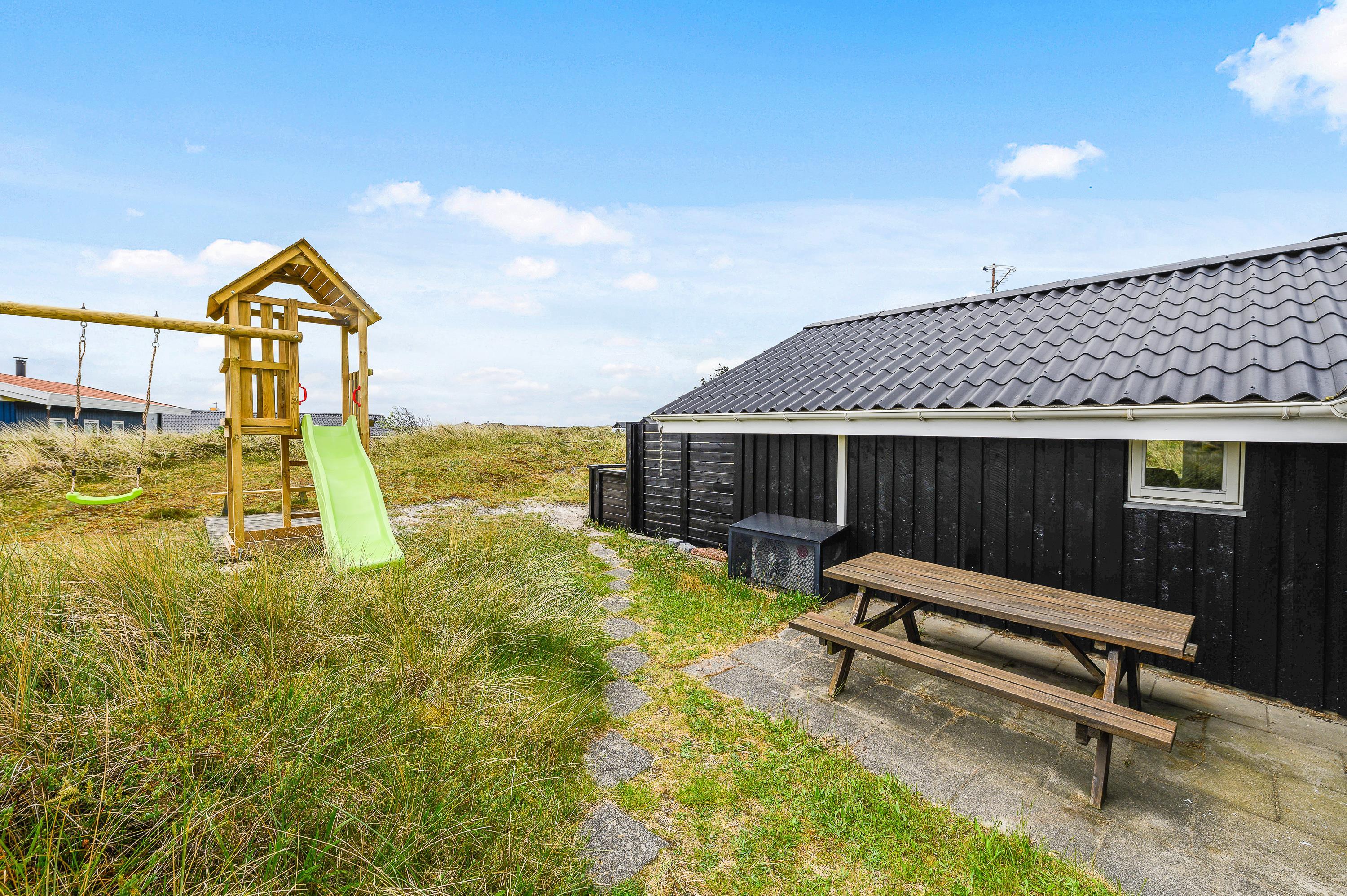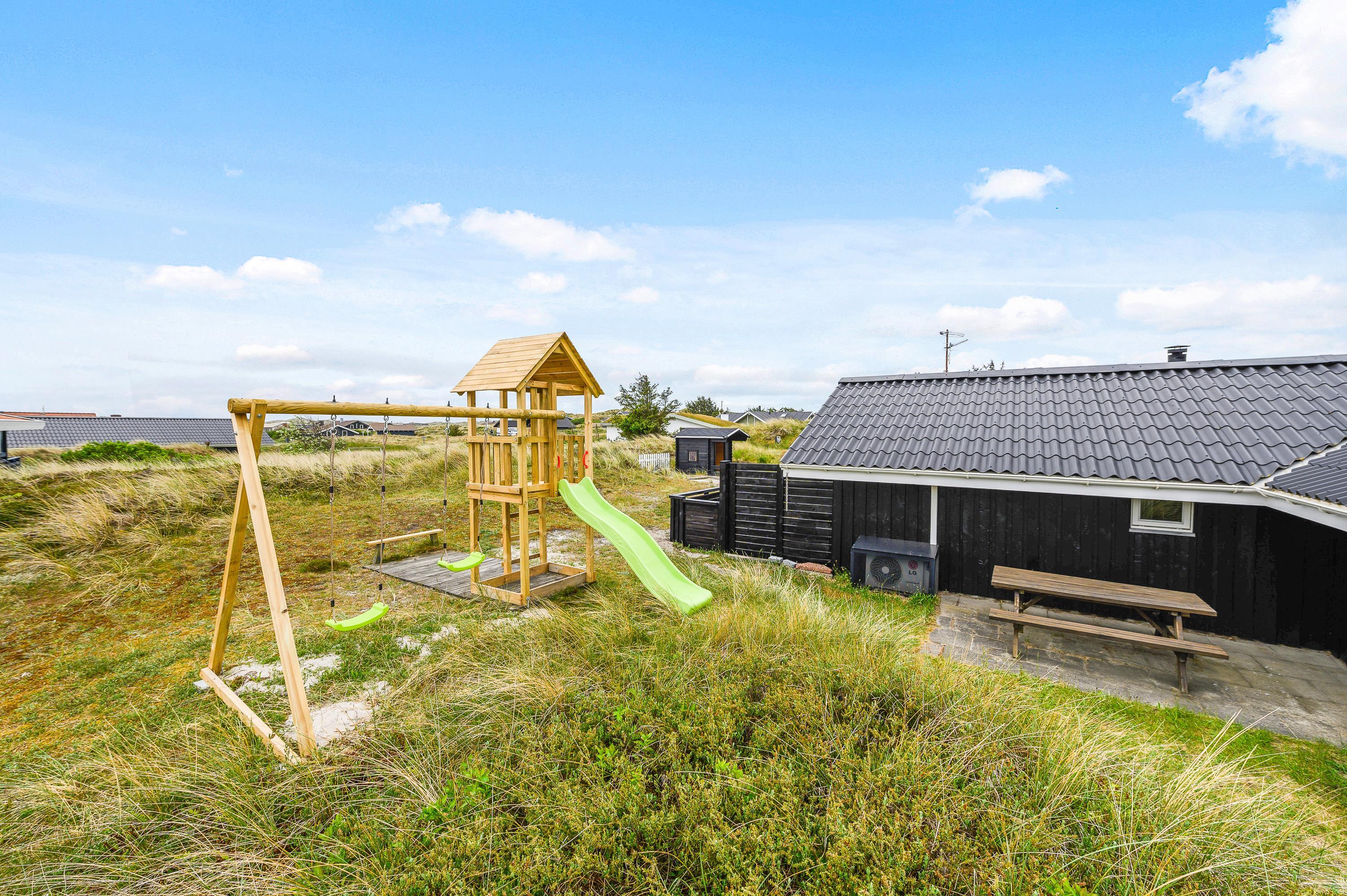 På grunden er der desuden opstillet både gynger, sandkasse og et fint legehus, som familiens mindste sikkert vil sætte stor pris på.
