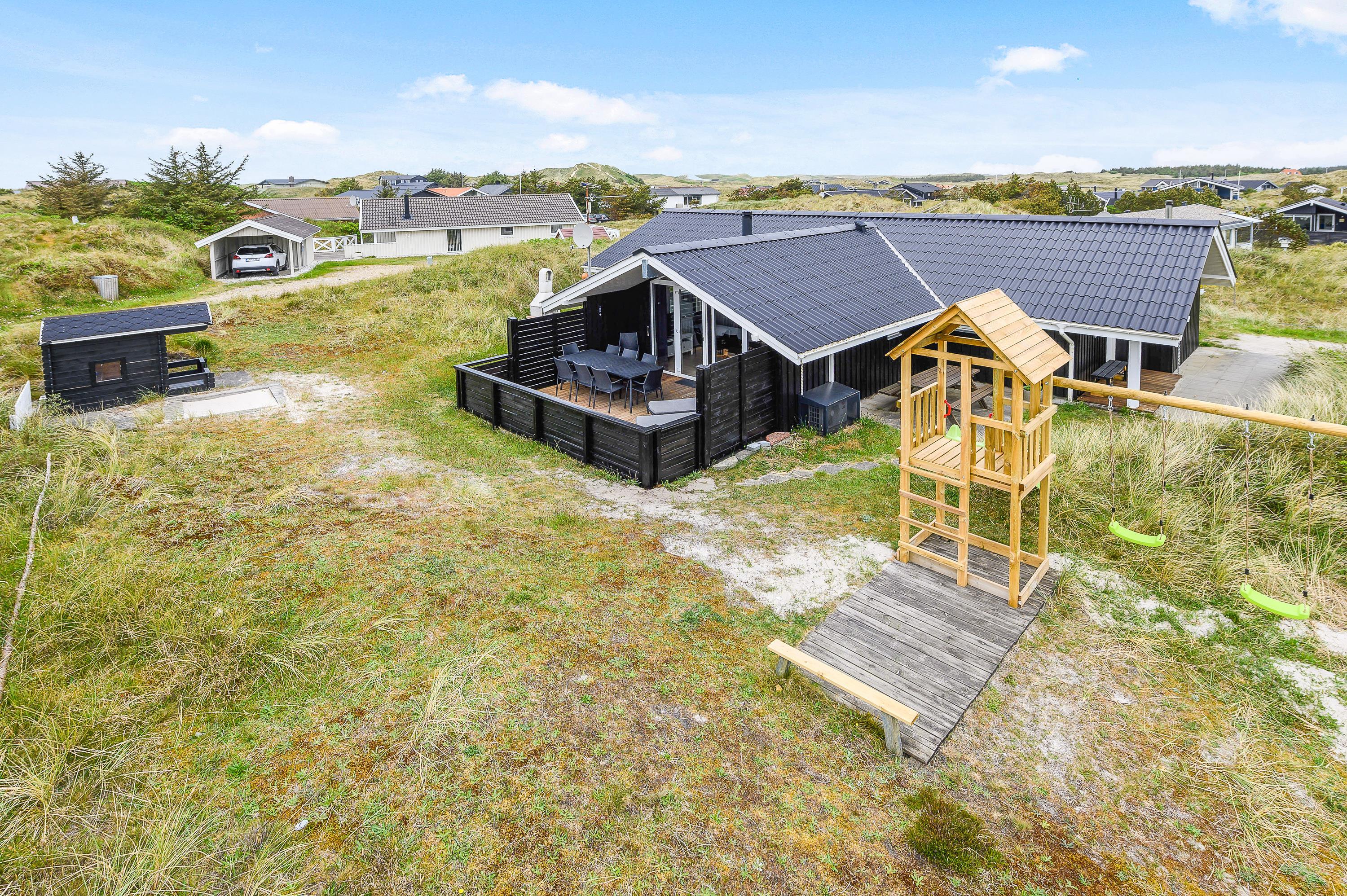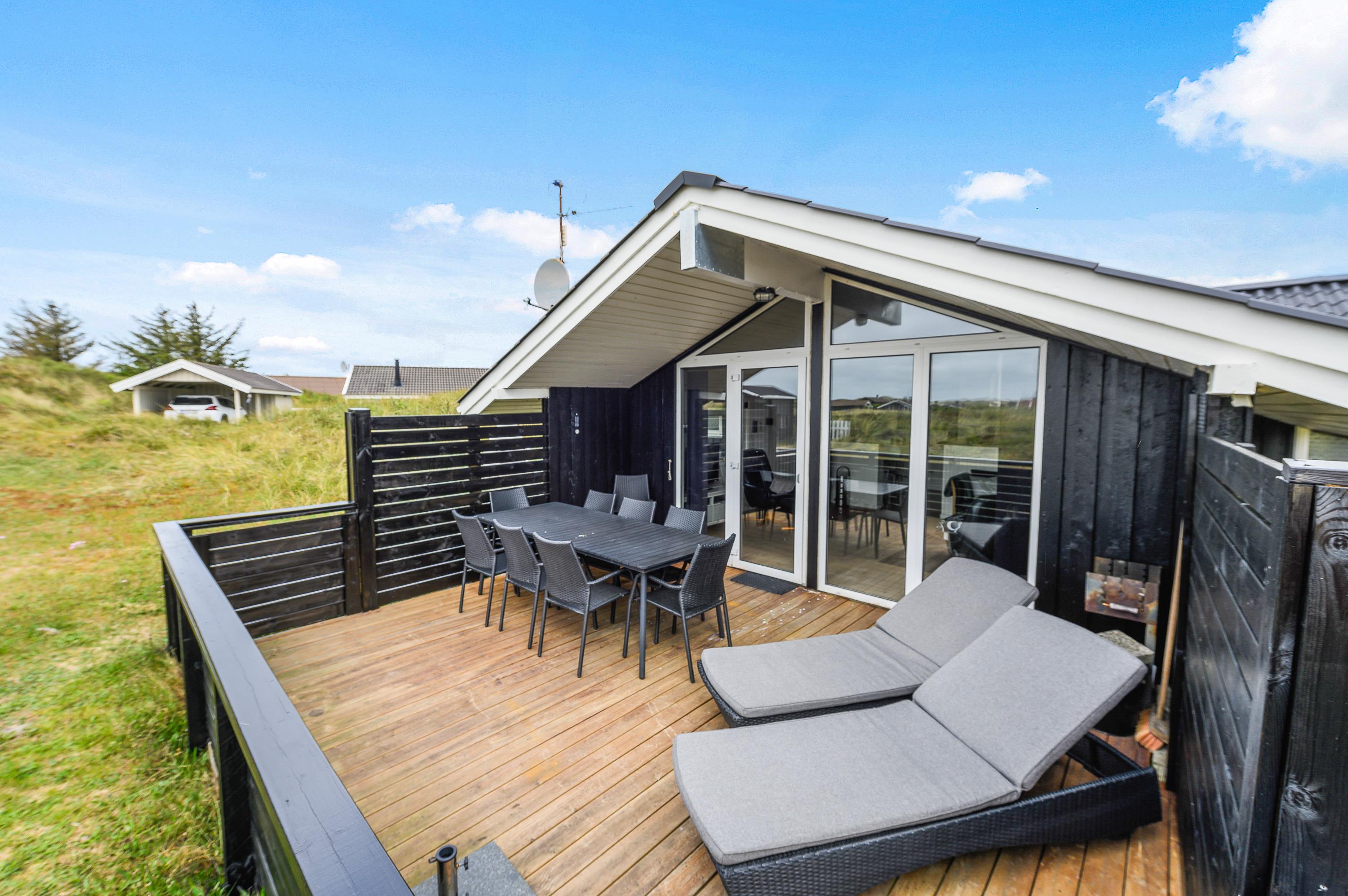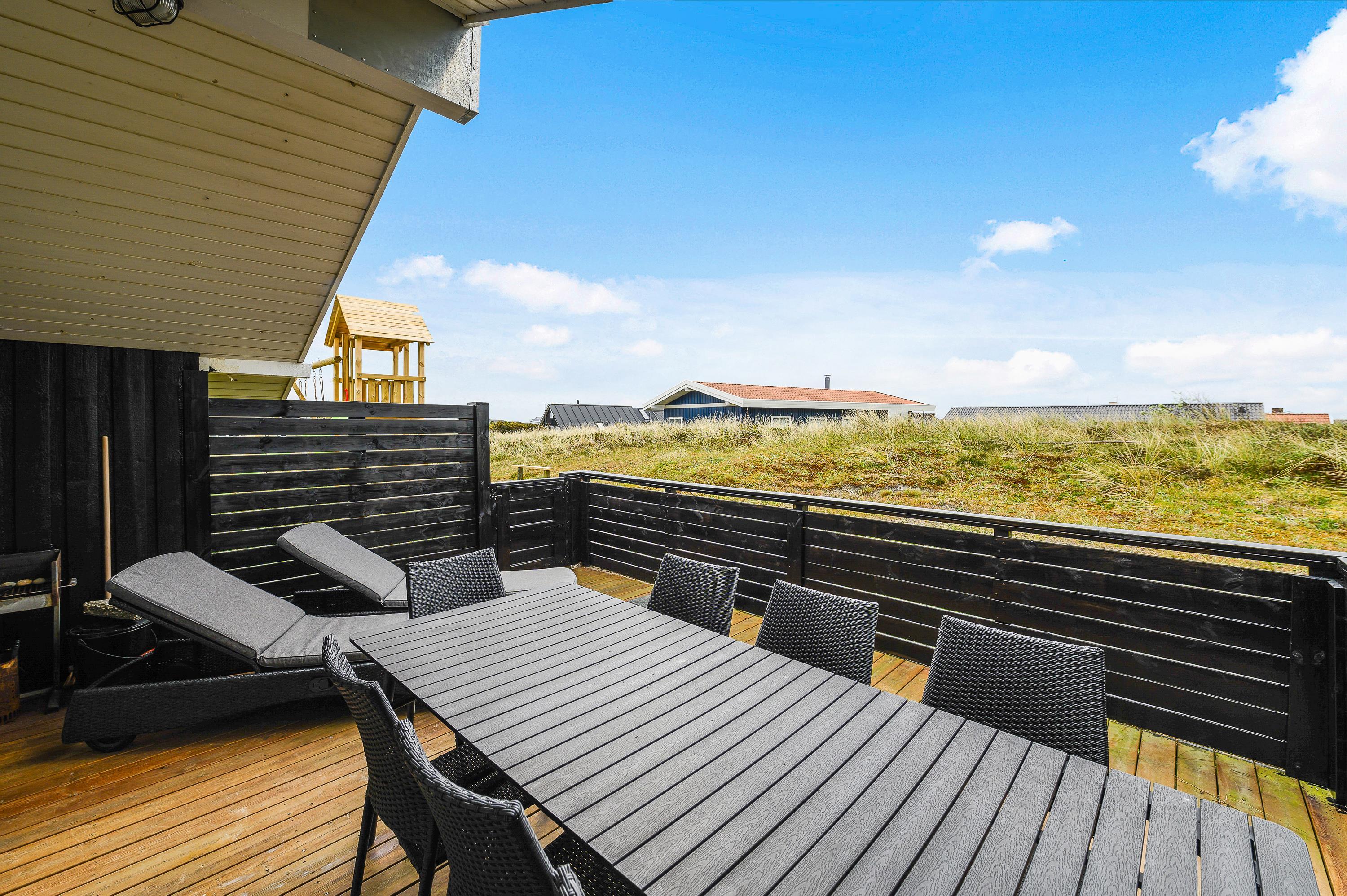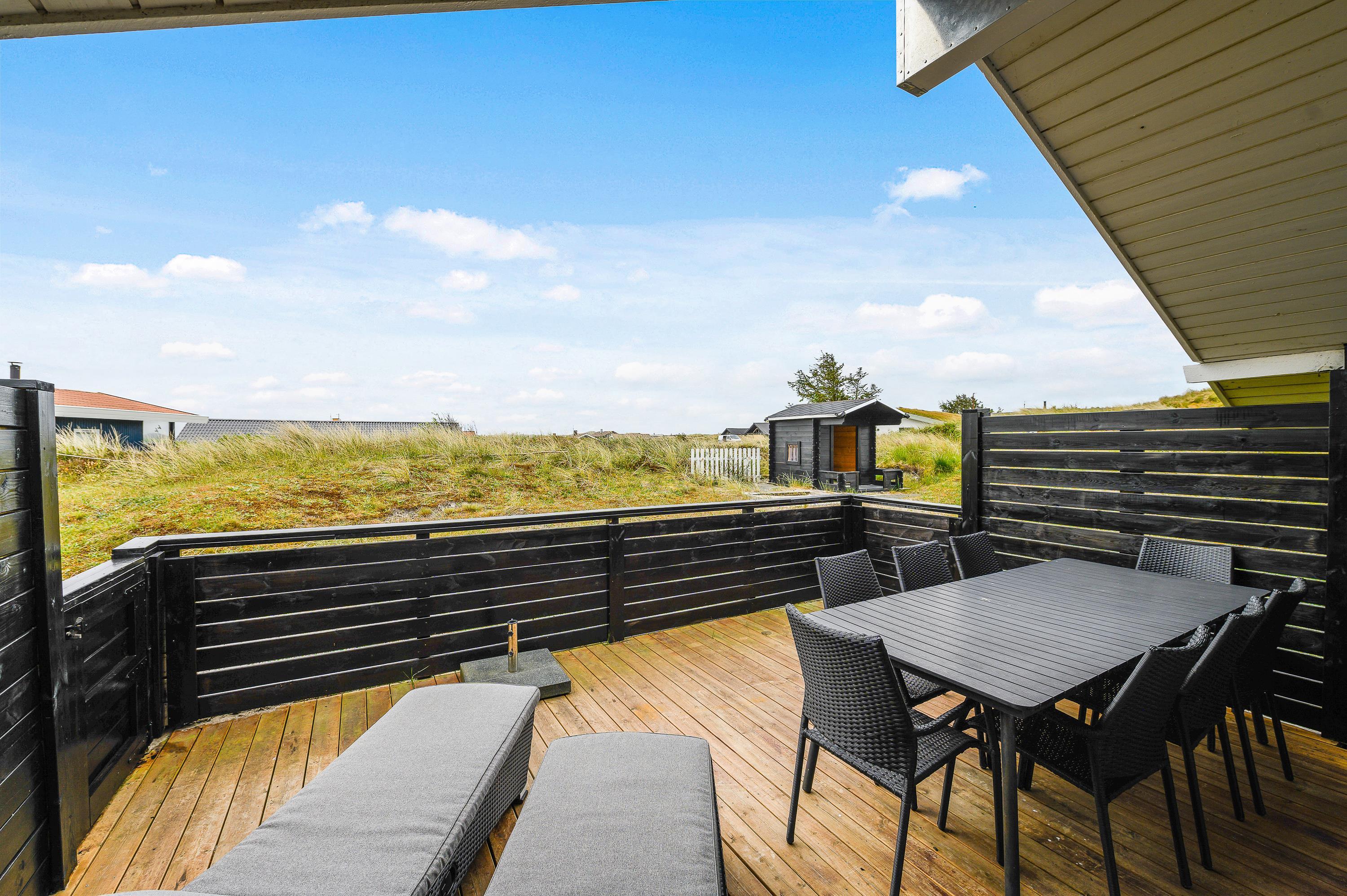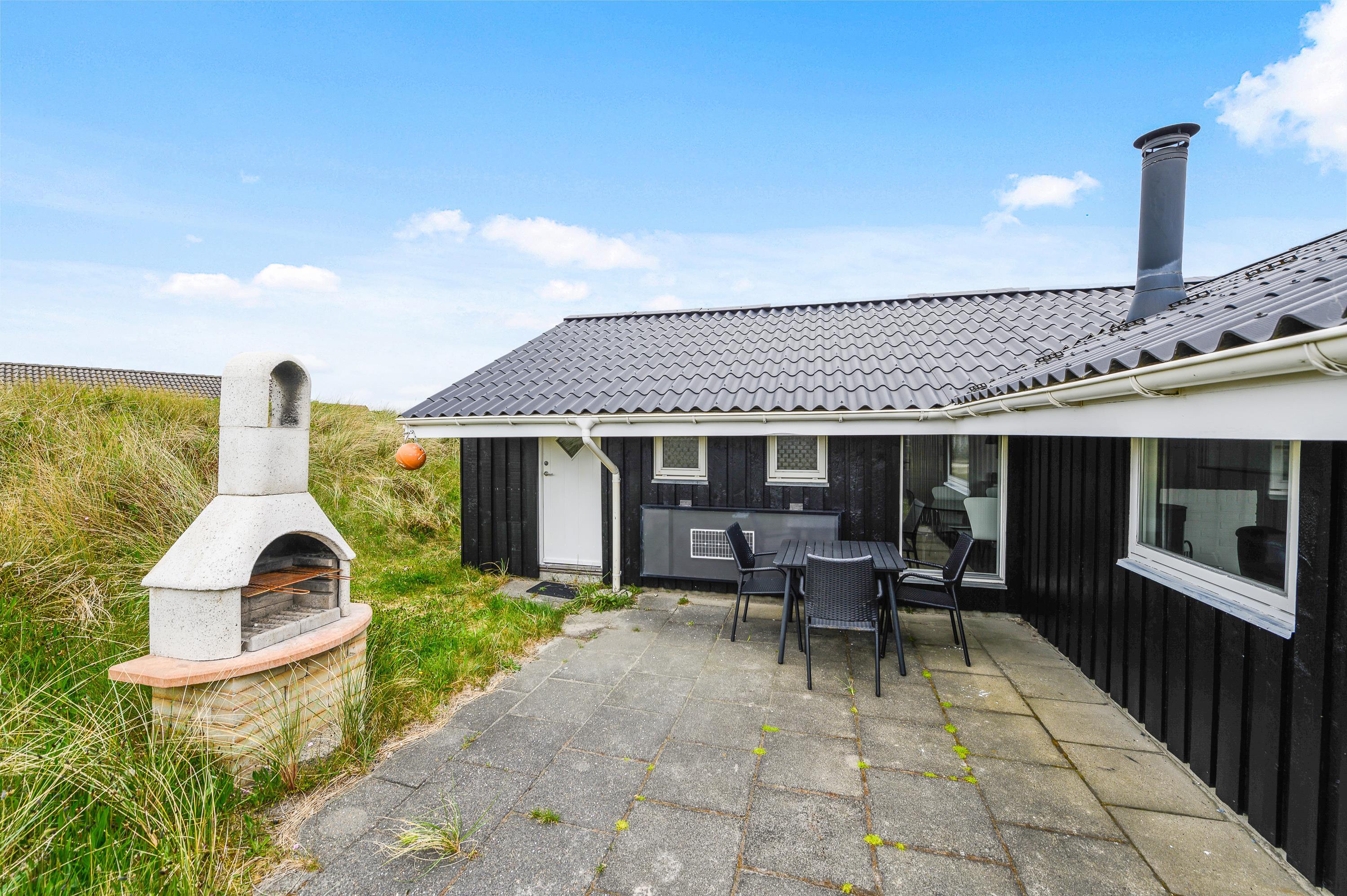 Rundt om feriehuset har du flere gode terrasser, så der stort set altid er mulighed for at finde en plads i læ. Den ene terrasse er godt afskærmet og overdækket, så du har den perfekte plads til de hyggelige grillaftener.