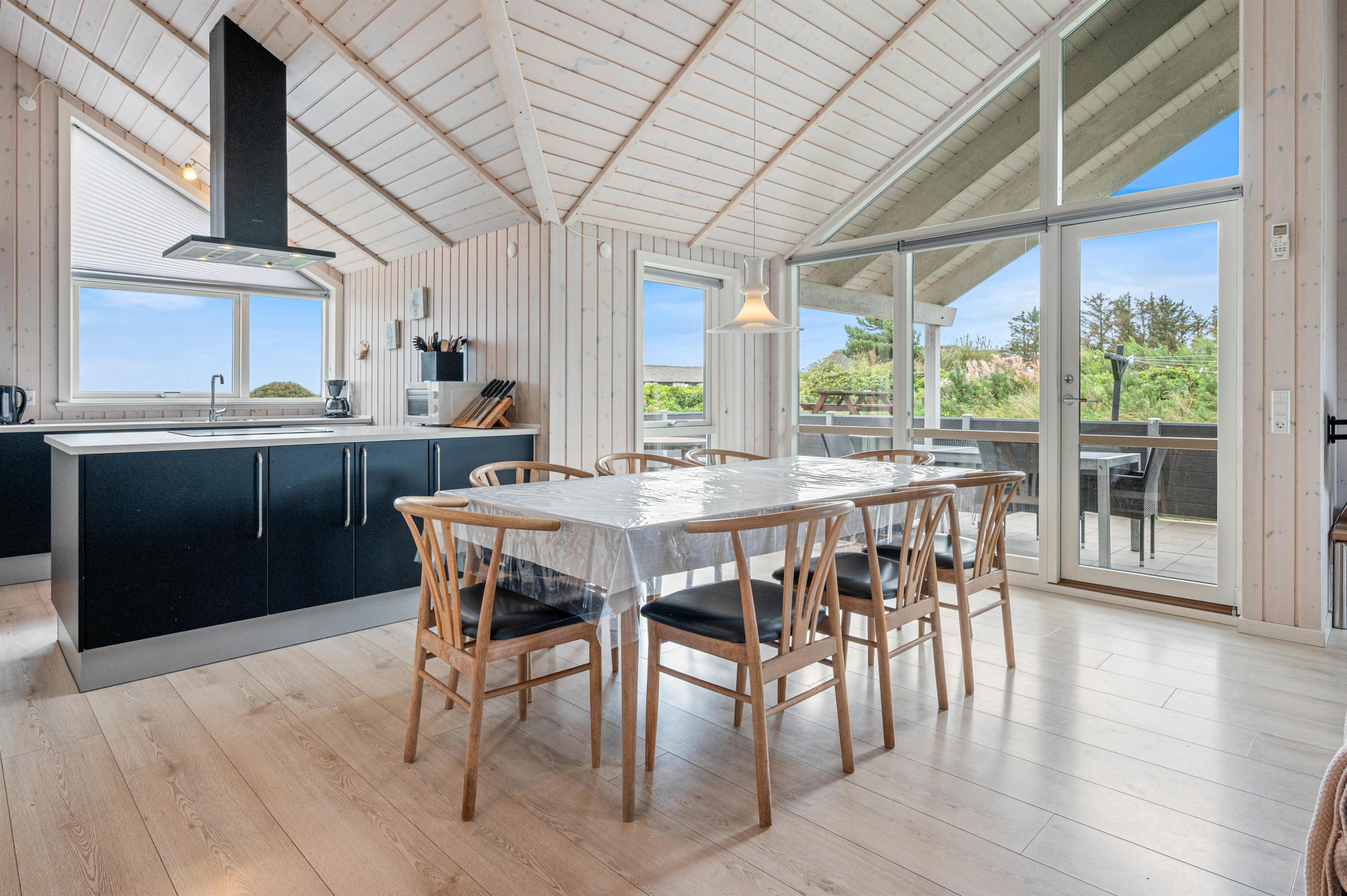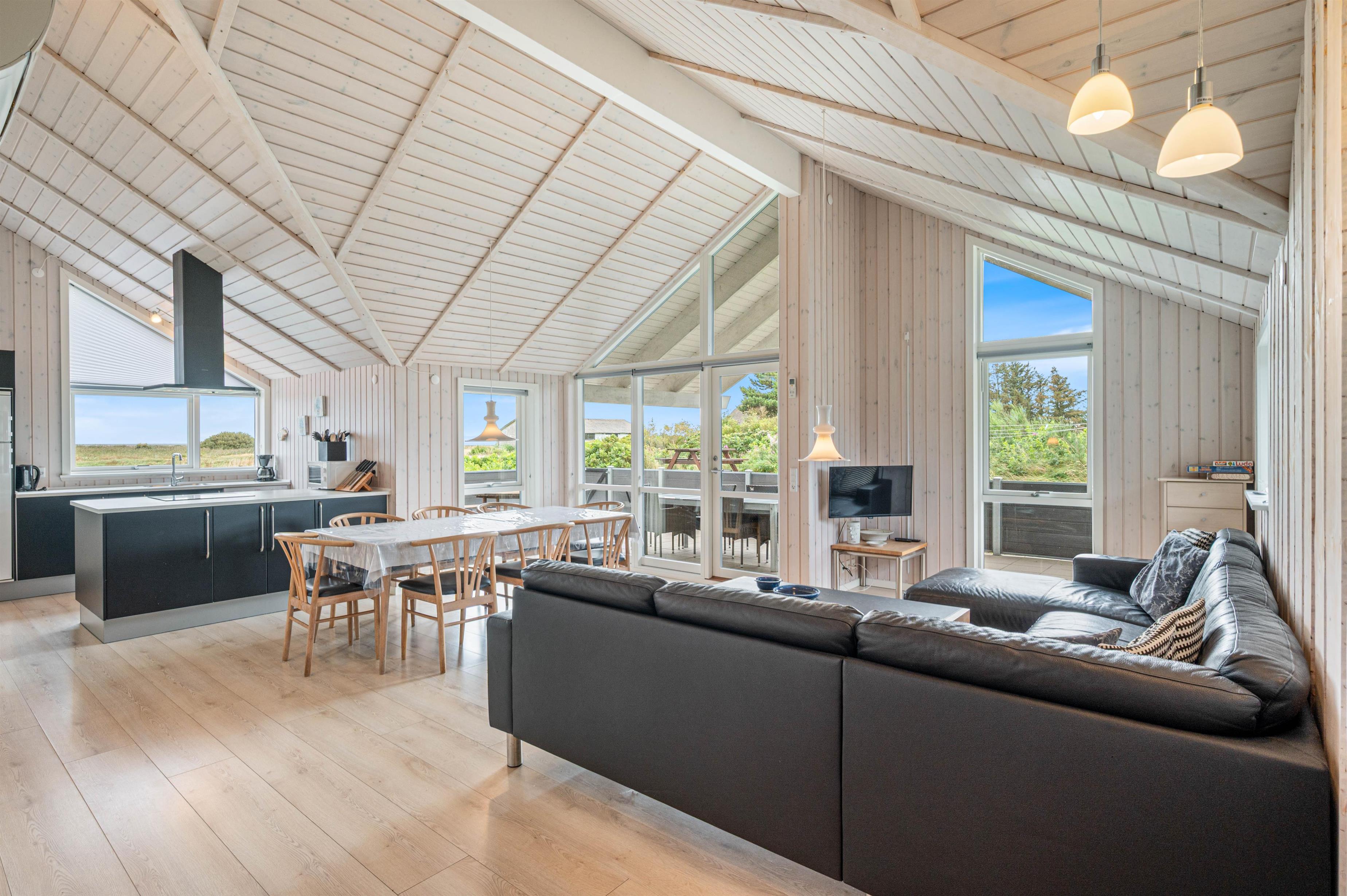 Det velindrettede indre byder på alt, hvad I har brug for, for at holde en afslappende ferie i det grønne. Der er både opvaskemaskine, vaskemaskine og tørretumbler, så der hurtigt kan komme styr på de praktiske opgaver, og en hurtig og stabil internetforbindelse sørger for, at I kan streame serier og surfe Facebook hele ferien.