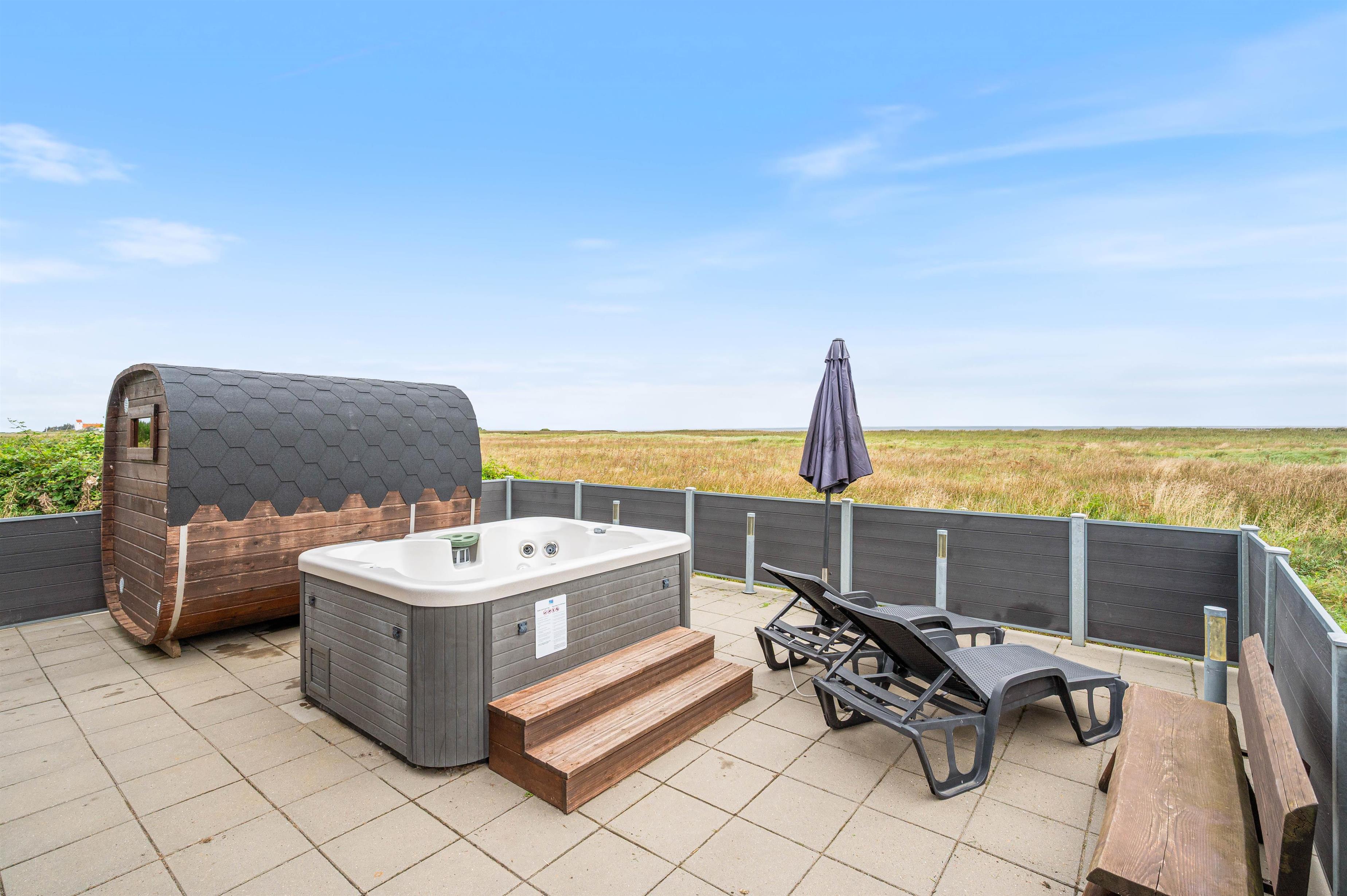 Udendørs spa, sauna og panoramaudsigt fra terrassen