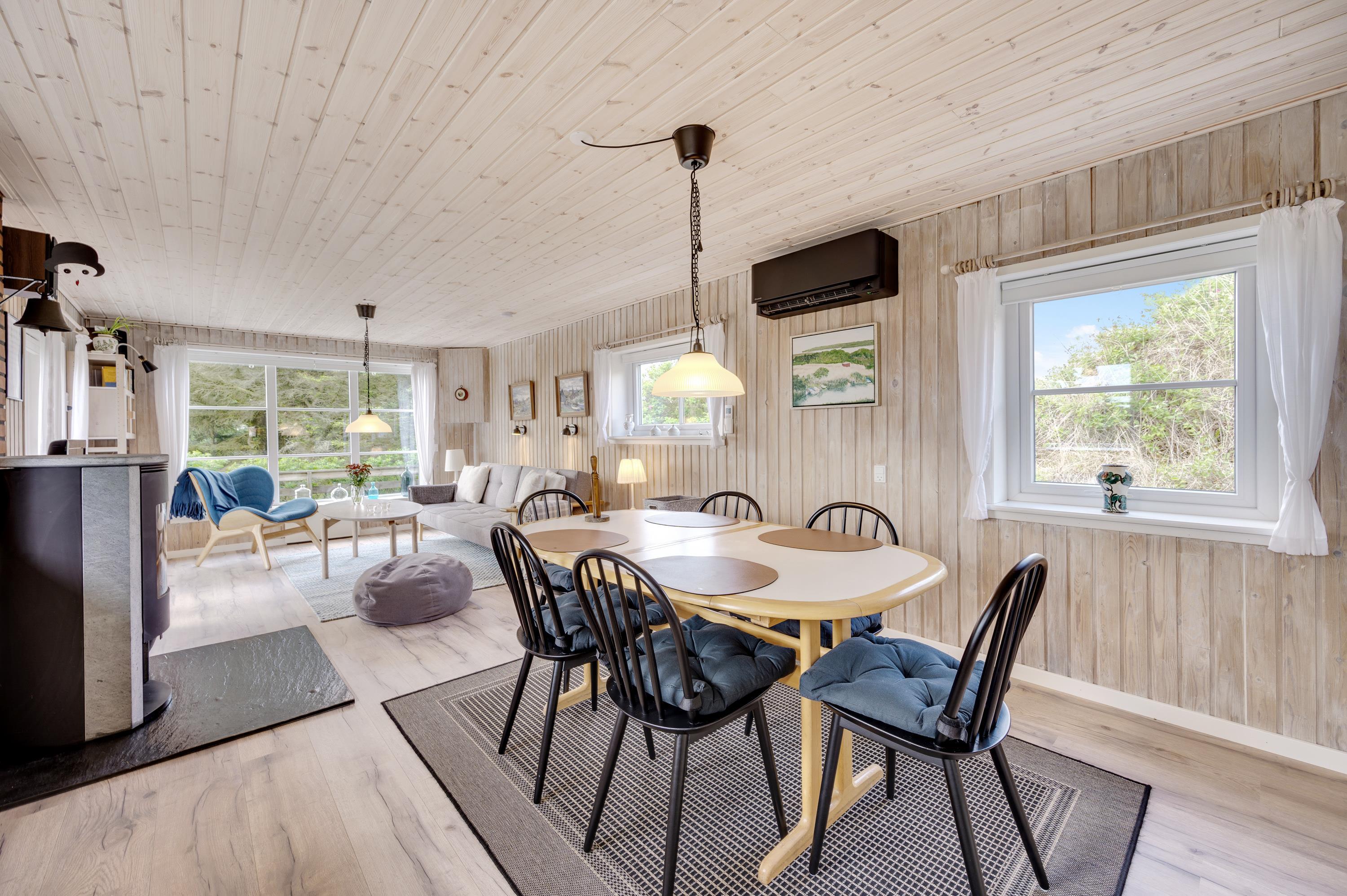 Dagen igennem kan I nyde livet på terrassen, mens de små gynger eller leger i sandkassen. Sidst på dagen kan I tilberede en lækker grillmiddag og nyde den på terrassen, mens man ser himlen farves orangerød over klitterne mod vest.