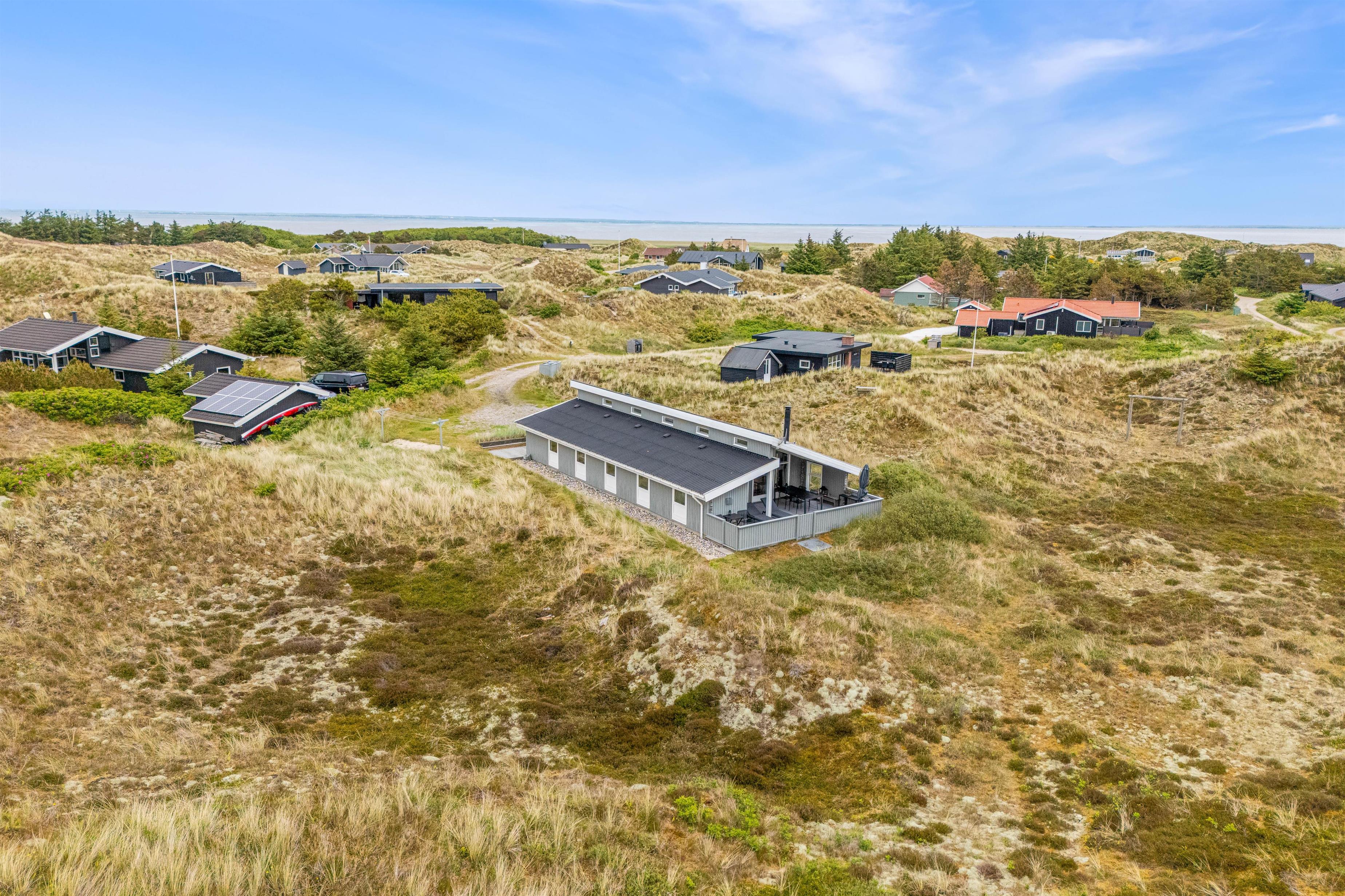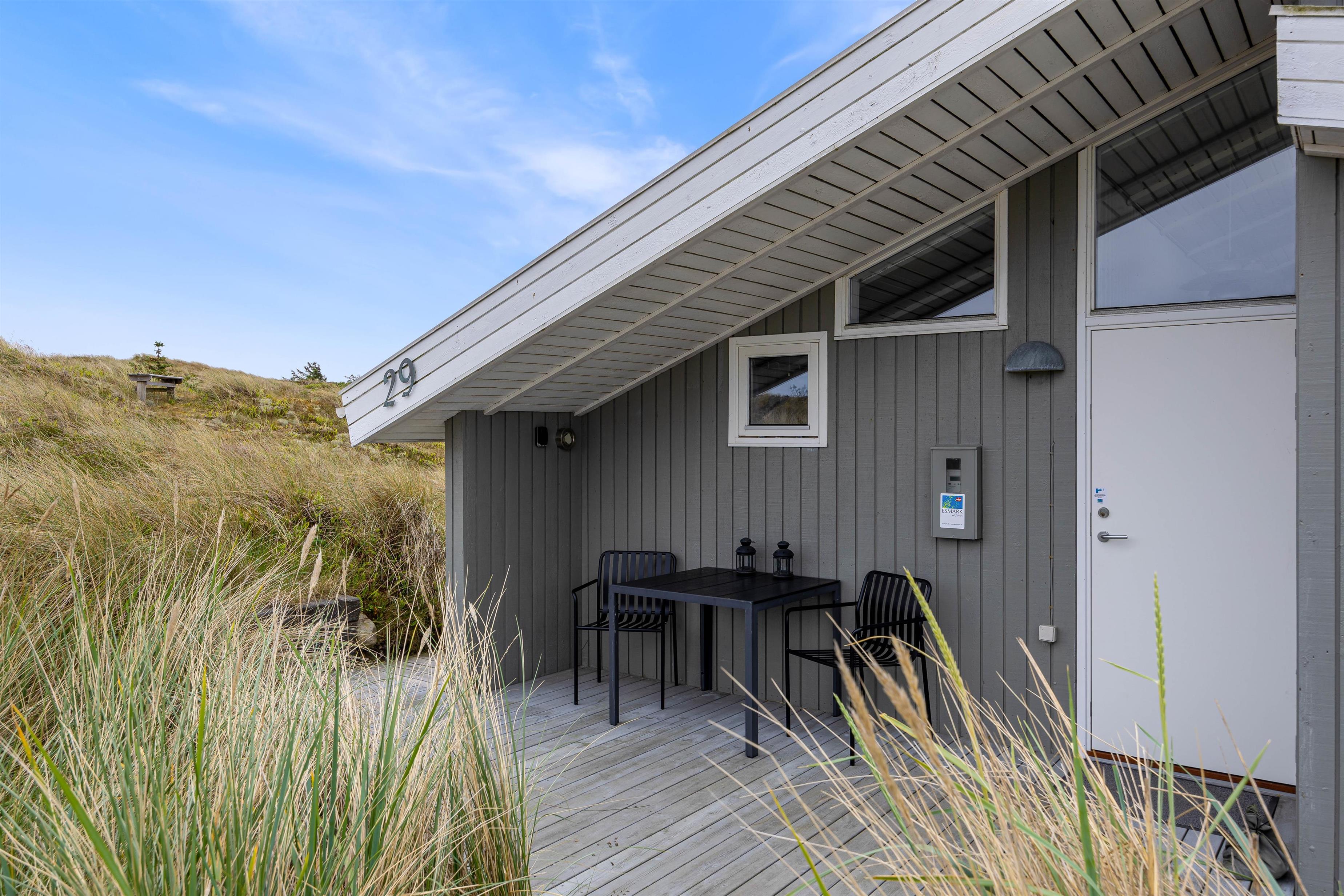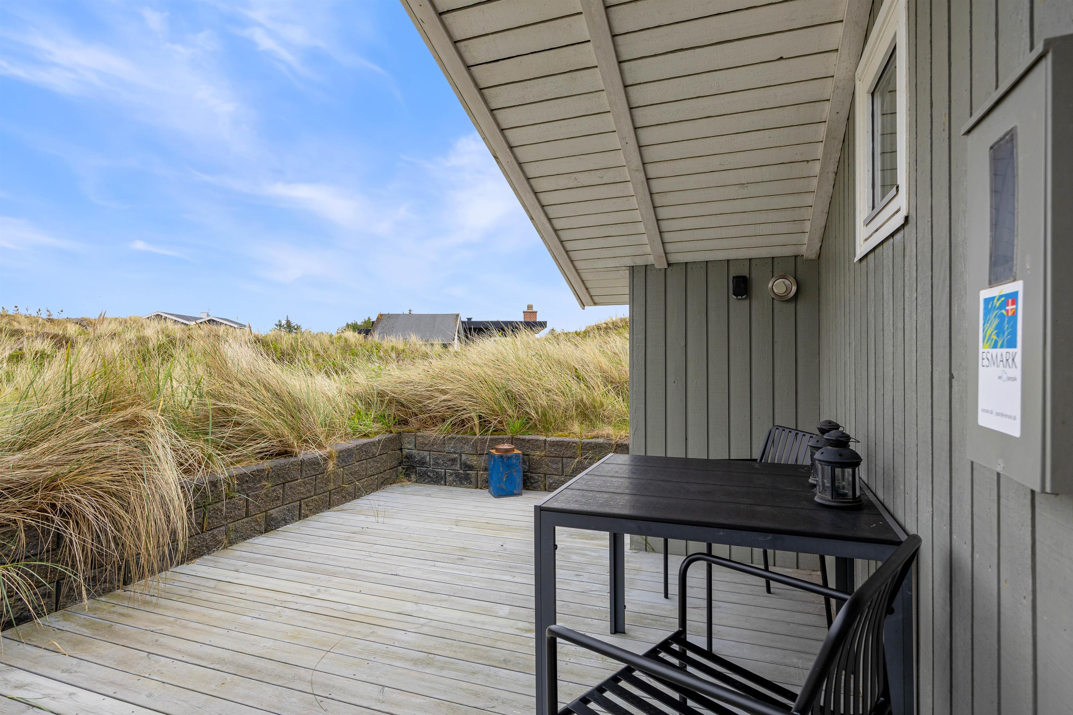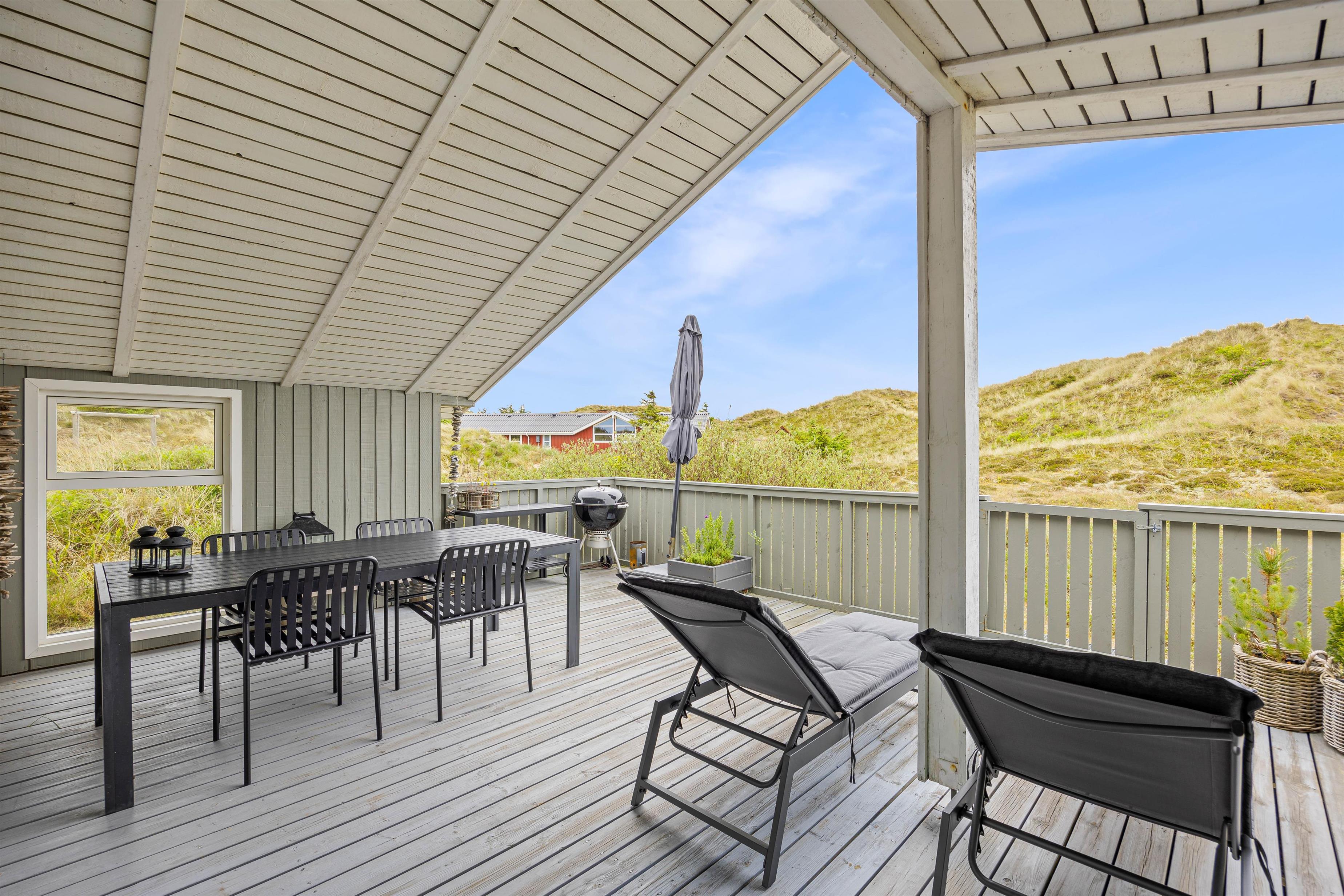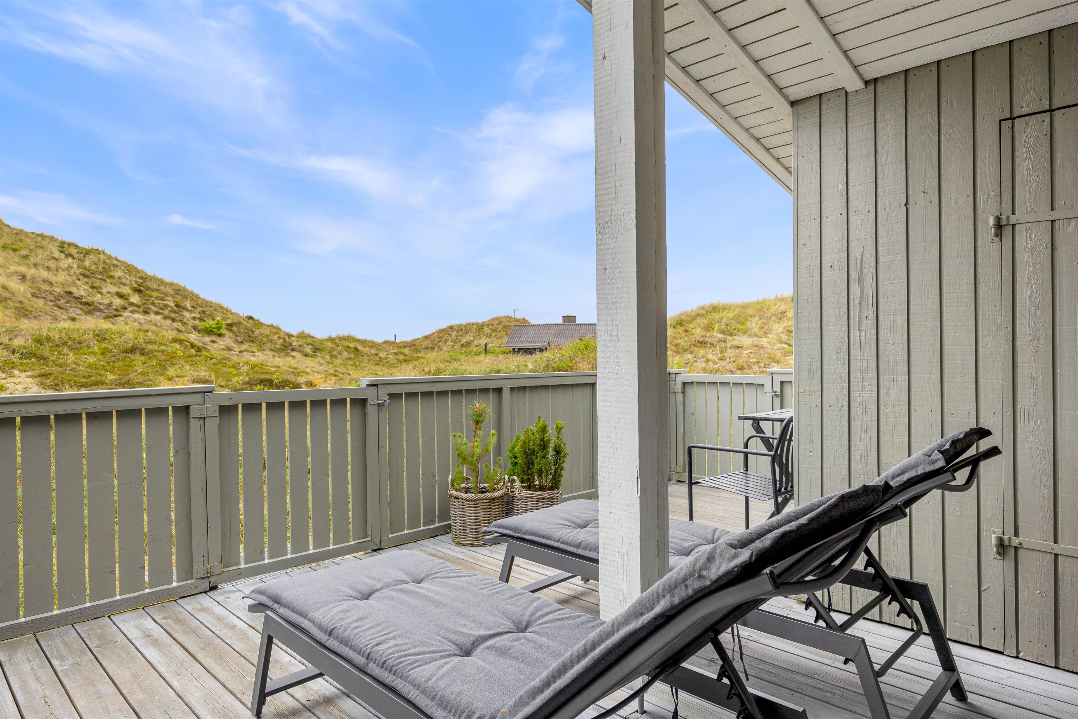 På den lukkede terrasse kan I tilbringe hyggelige timer, og efter en gåtur i den storslåede natur på Holmsland Klit kan I blive godt gennemvarme i feriehusets sauna.