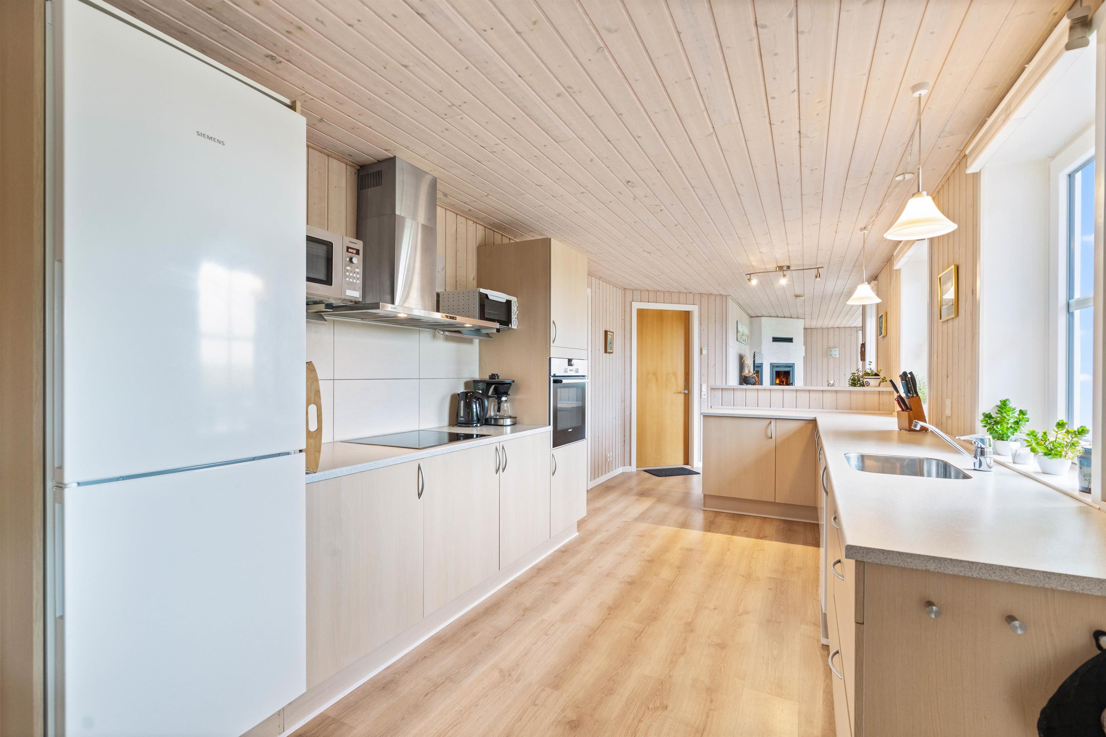 Feriehuset danner de perfekte rammer om en dejlig ferie med familien, hvor I bare skal koncentrere Jer om hinanden og slappe af. Der er et dejligt køkken med masser af skabs- og bordplads, og dermed indbyder det til hyggelig madlavning i fællesskab. I stuen kan hele familien samles til hyggelige stunder, mens brændeovnen knitrer og spreder varme.