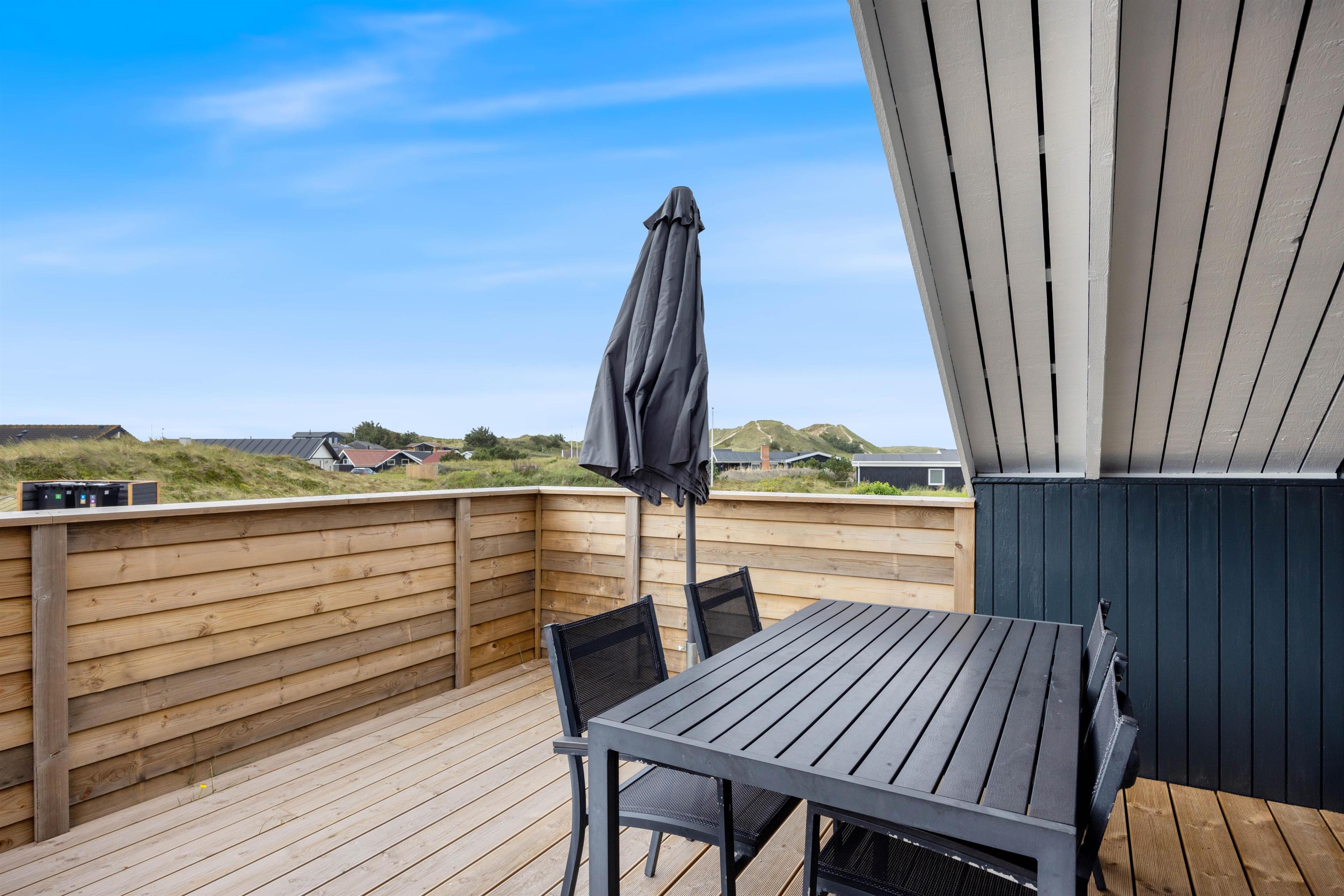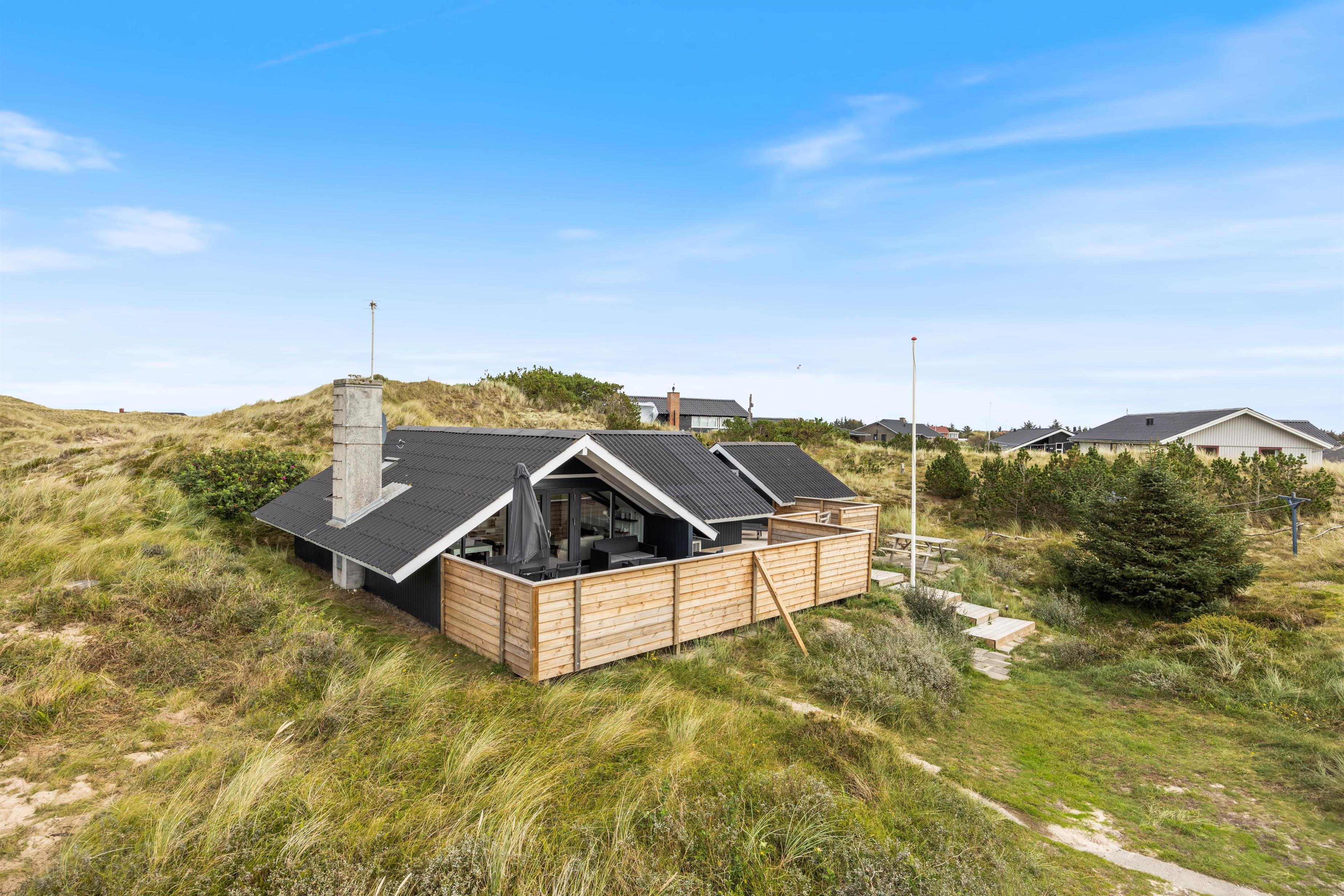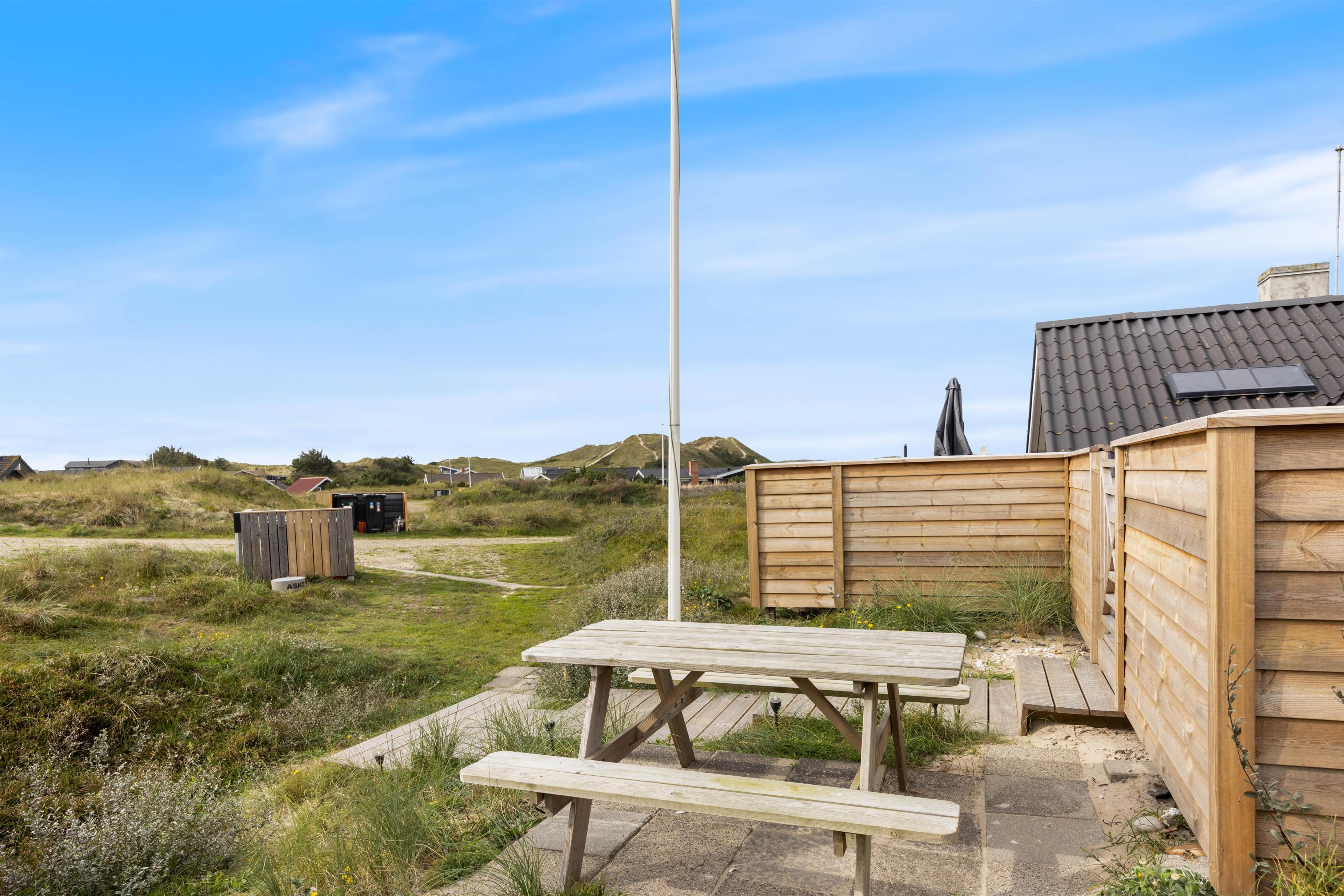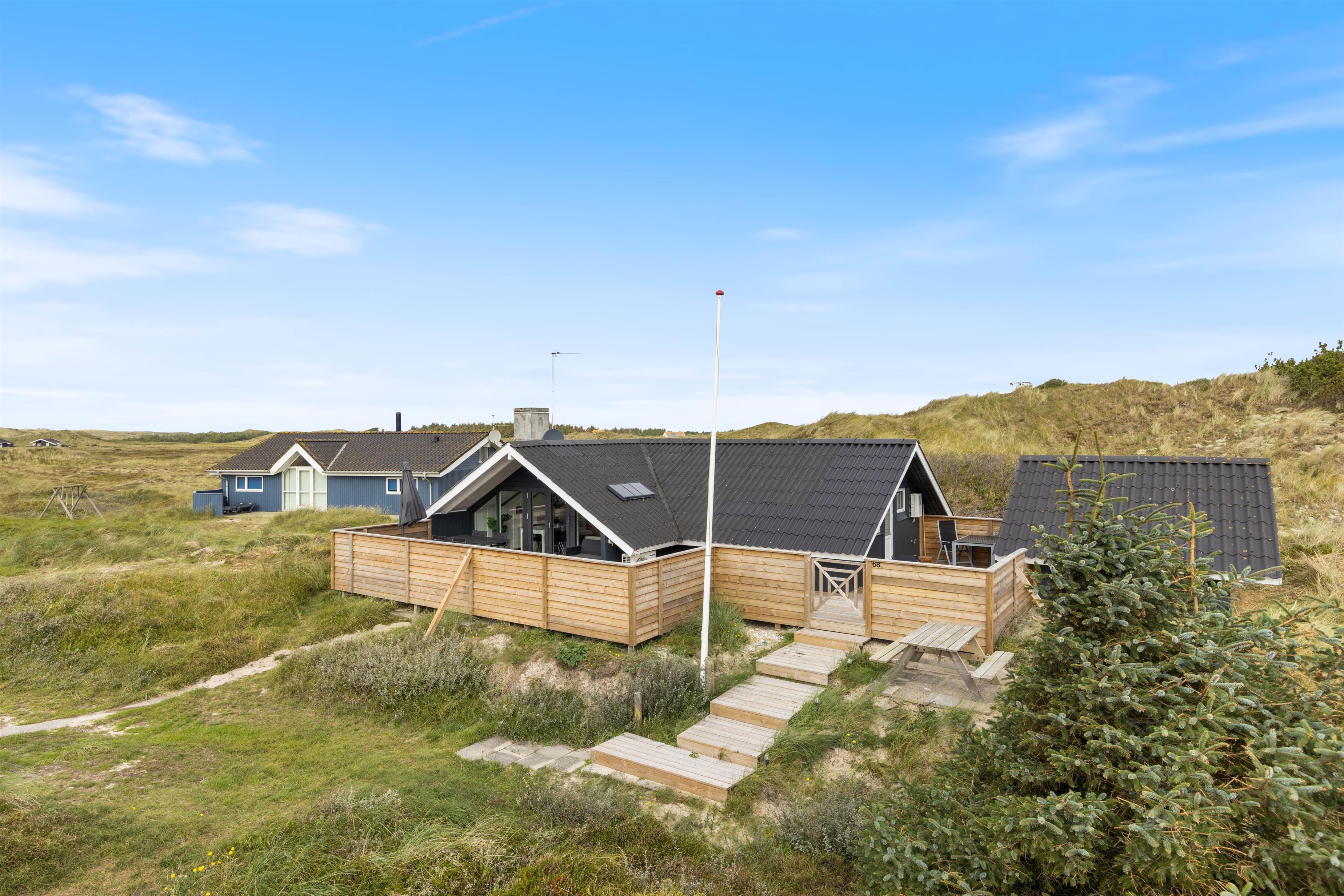 Bo midt i klitlandskabet og nyd solens stråler på den store lukkede terrasse rundt om sommerhuset. Den lukkede er perfekt for også familiens firebenet ven, som kan gå frit rundt. Den sydvestvendte terrasse er delvist overdækket, så I vil altid kunne finde en læ-krog, hvor I kan nyde frokosten eller grill-middagen. Ultimativ hygge må da være en grill-aften på terrassen med solnedgangen og Vesterhavets brusen i baggrunden.