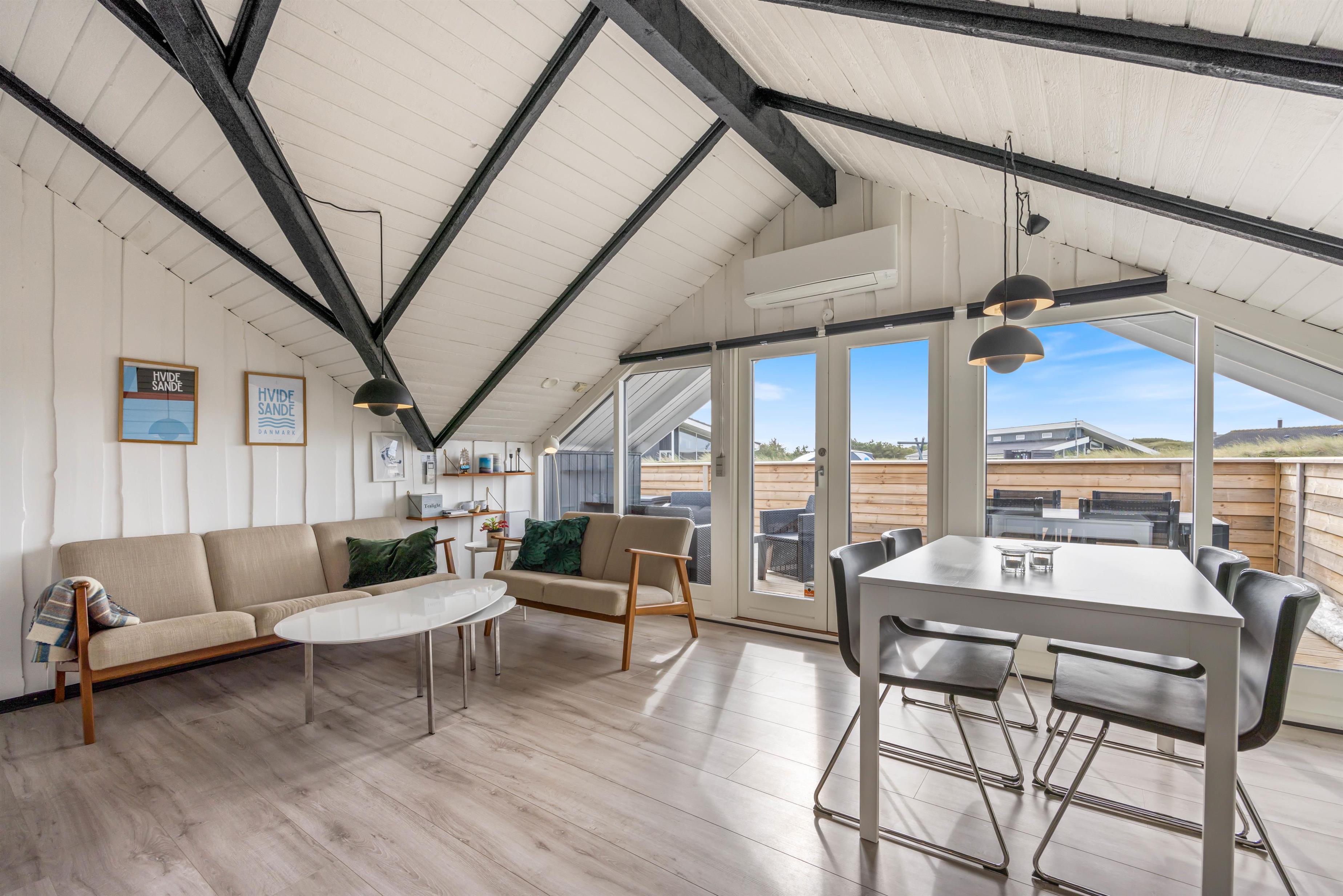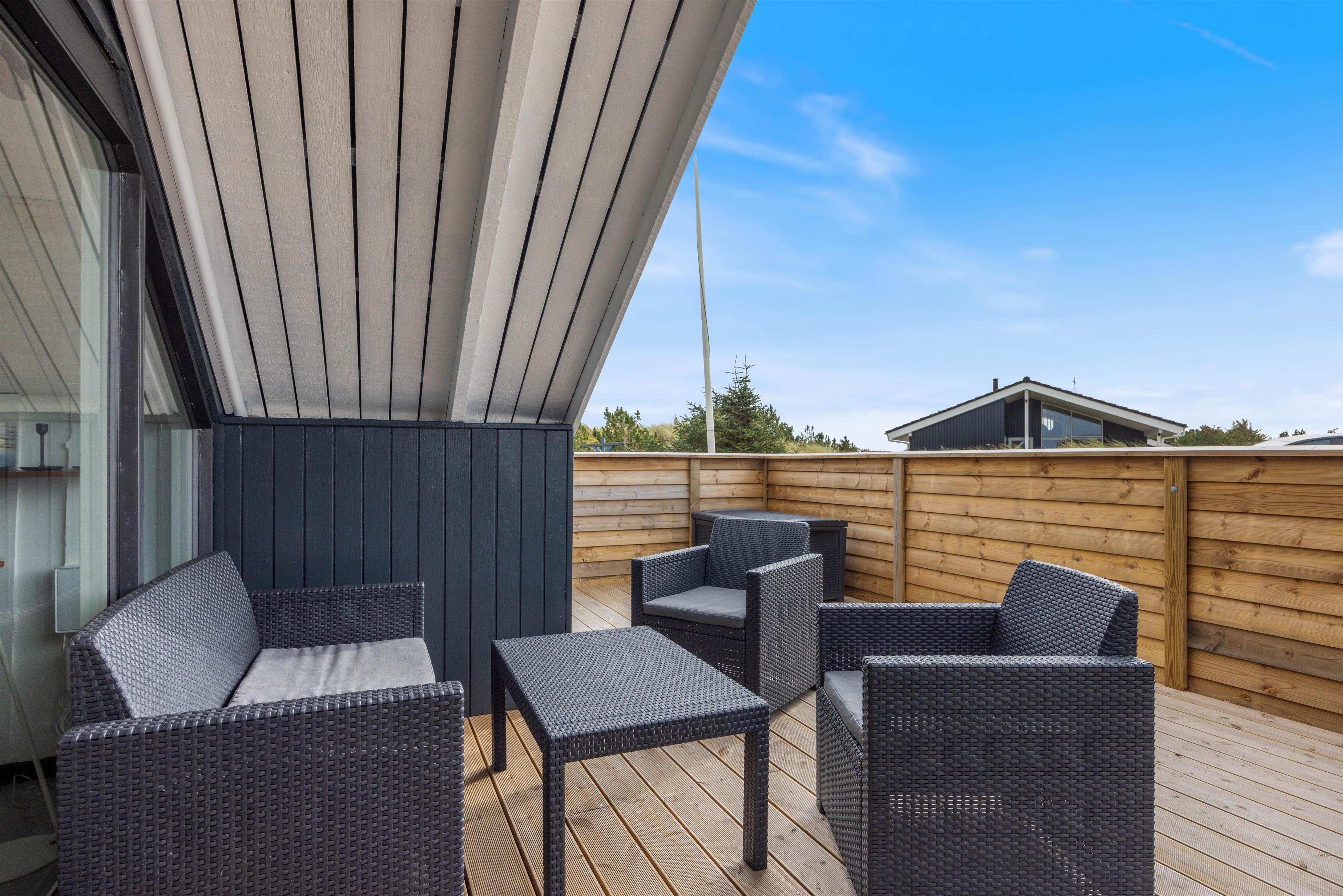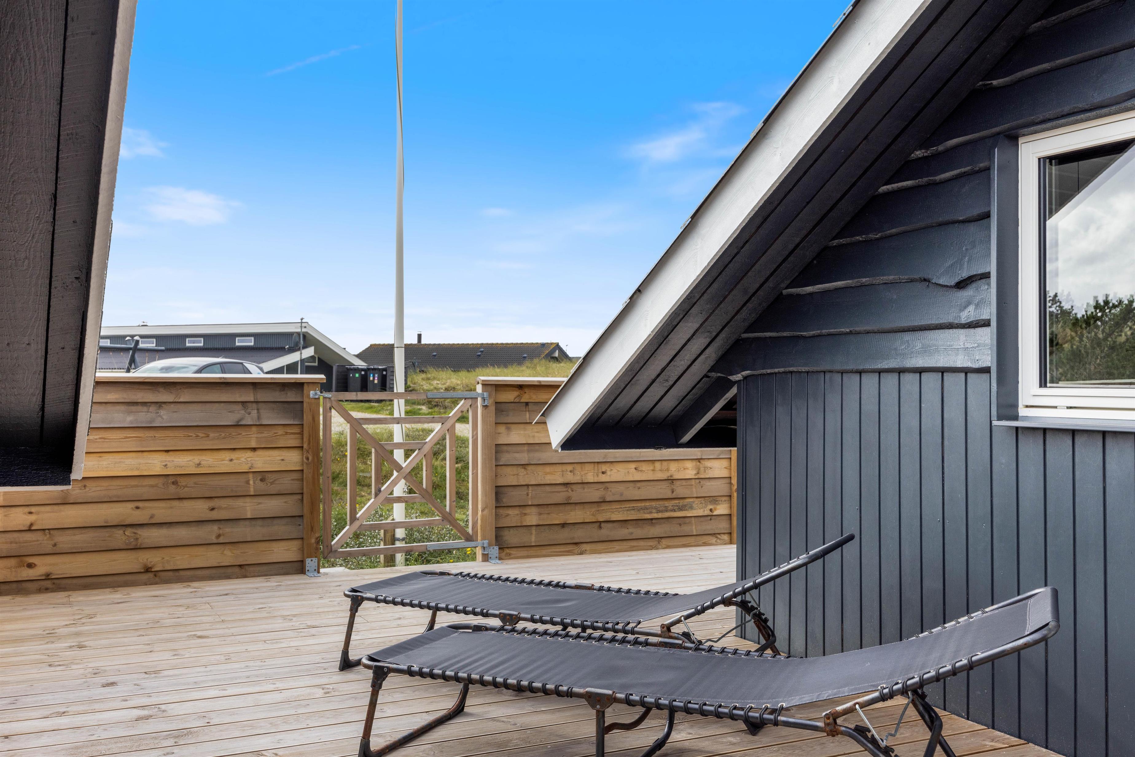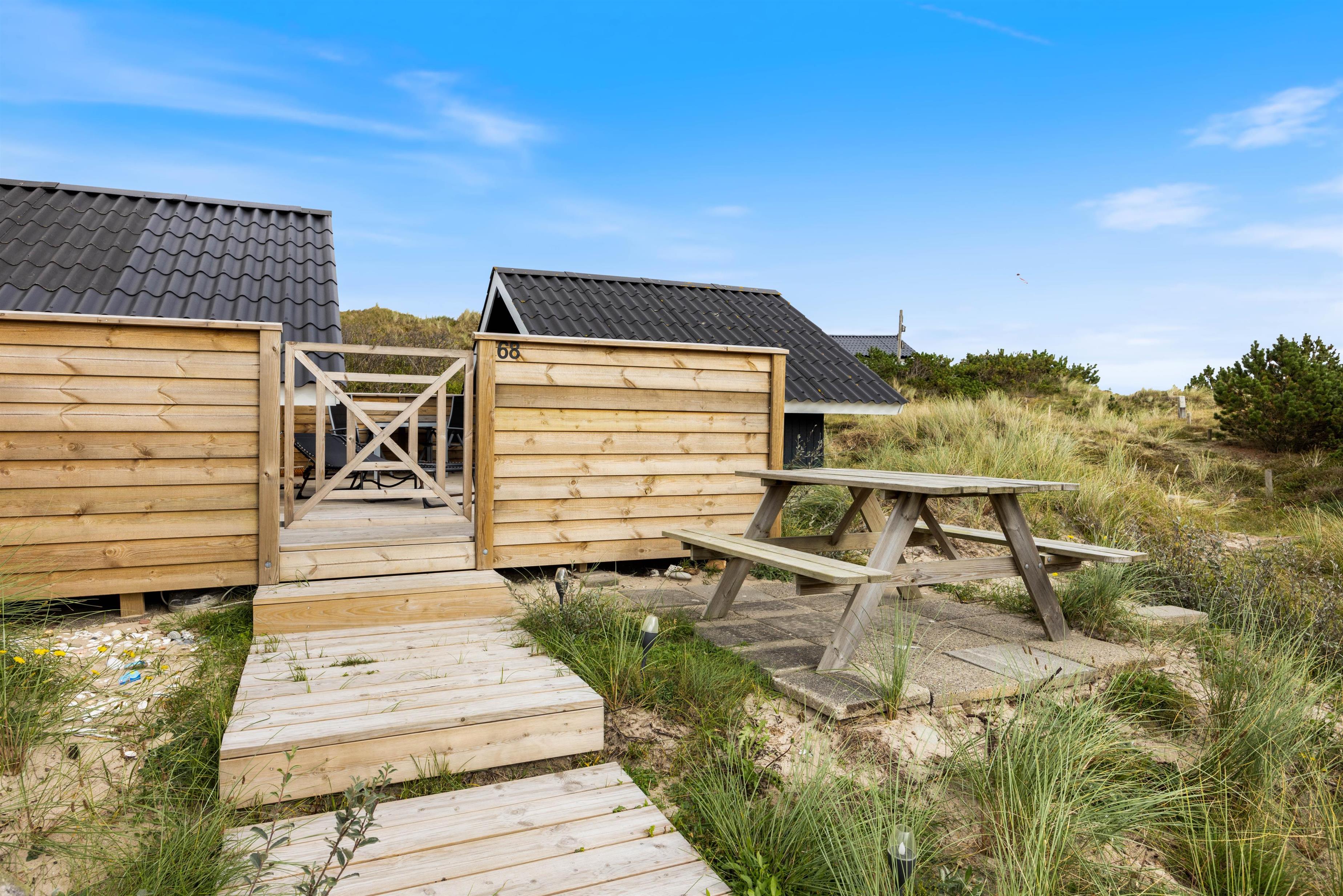 Bo midt i klitlandskabet og nyd solens stråler på den store lukkede terrasse rundt om sommerhuset. Den lukkede er perfekt for også familiens firebenet ven, som kan gå frit rundt. Den sydvestvendte terrasse er delvist overdækket, så I vil altid kunne finde en læ-krog, hvor I kan nyde frokosten eller grill-middagen. Ultimativ hygge må da være en grill-aften på terrassen med solnedgangen og Vesterhavets brusen i baggrunden.