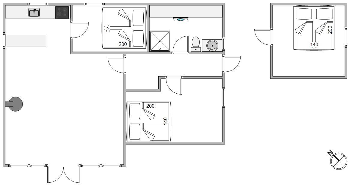 Sommerhuset er til 4 personer, fordelt på 2 værelser, hvoraf begge er med en dobbeltseng. Derudover er der et anneks med en dobbeltseng, hvis familiens teenagere hellere vil sove der.